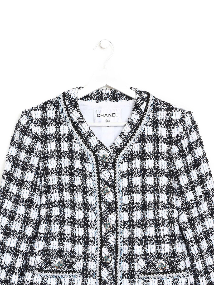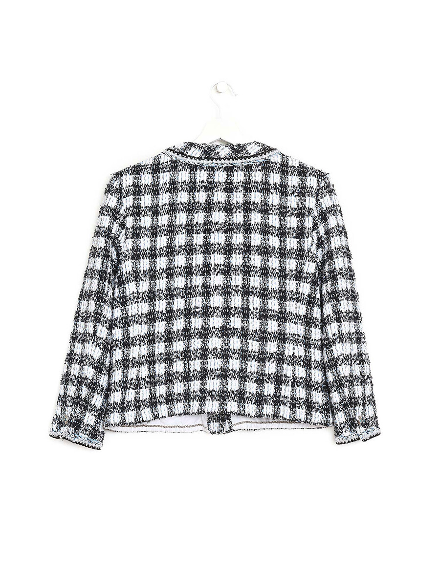 Blazer en tweed avec motif à carreaux noir et blanc. Fermeture à boutons et poches plaquées.