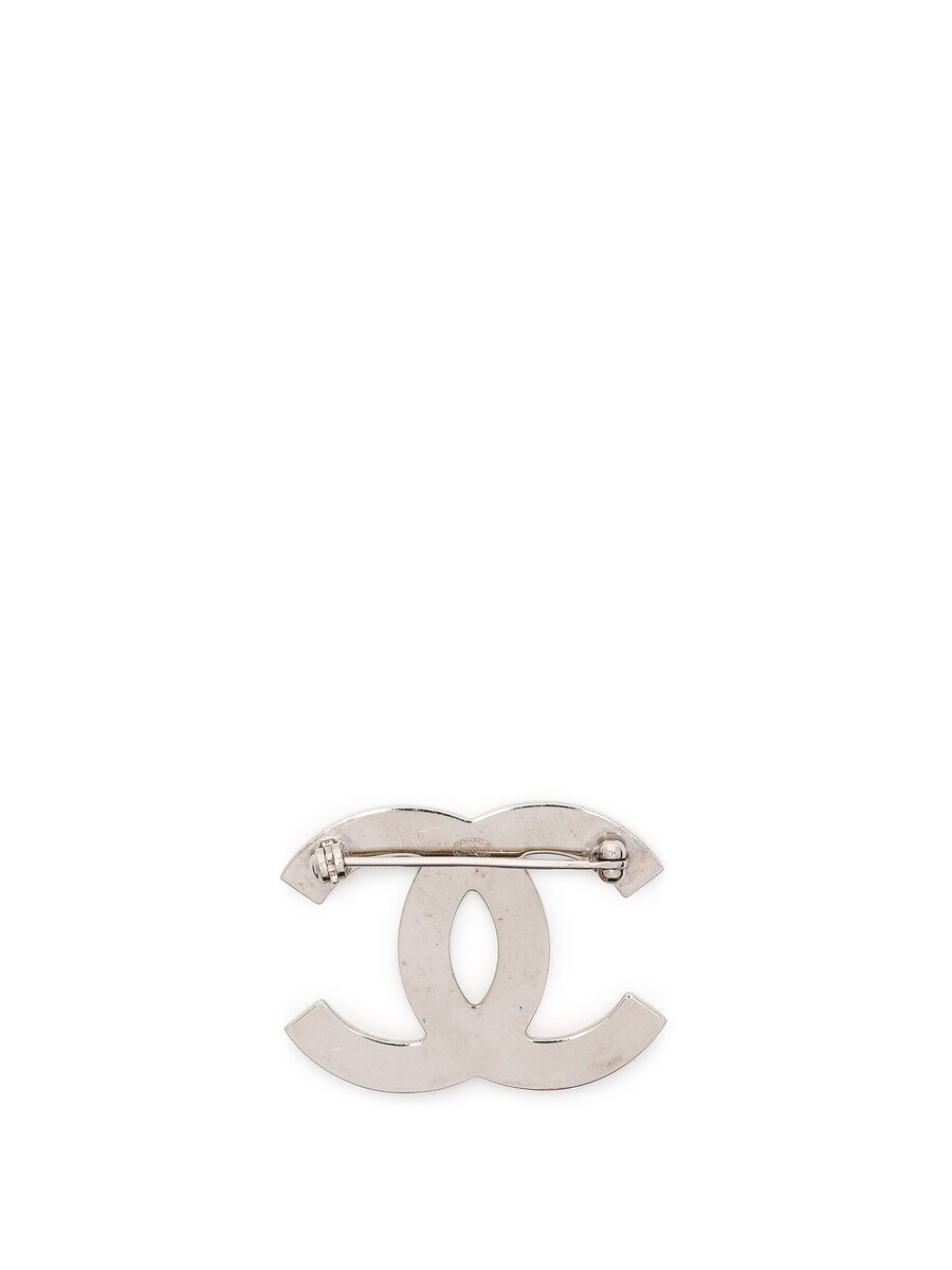 Broche métallique 'CC' avec motif du drapeau de l'Angleterre en rouge et bleu.