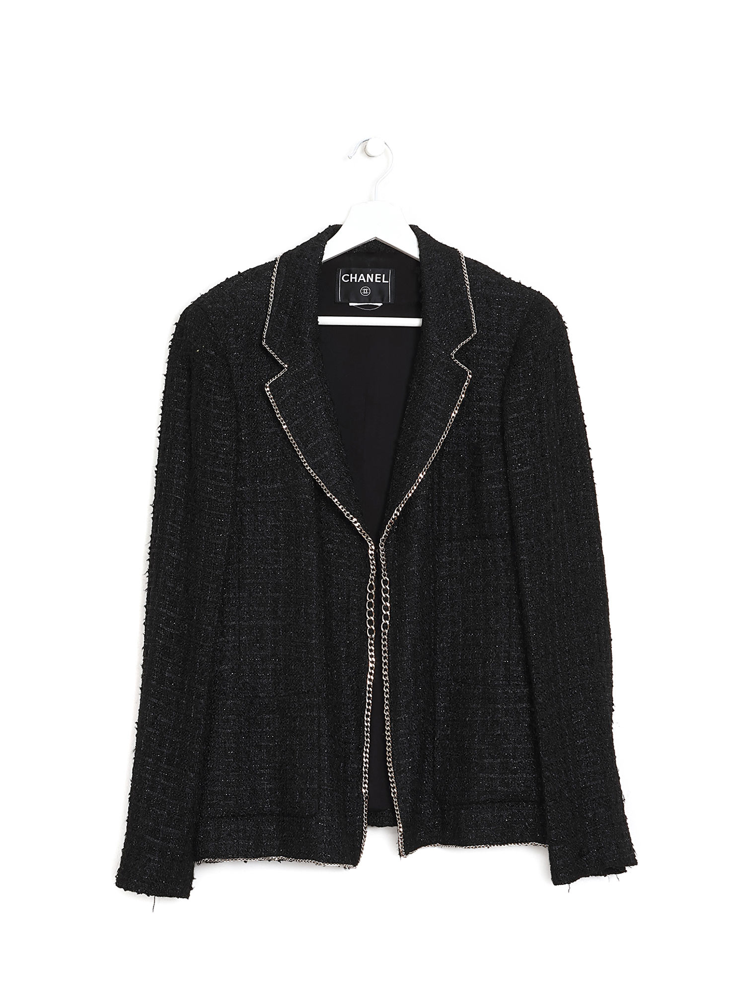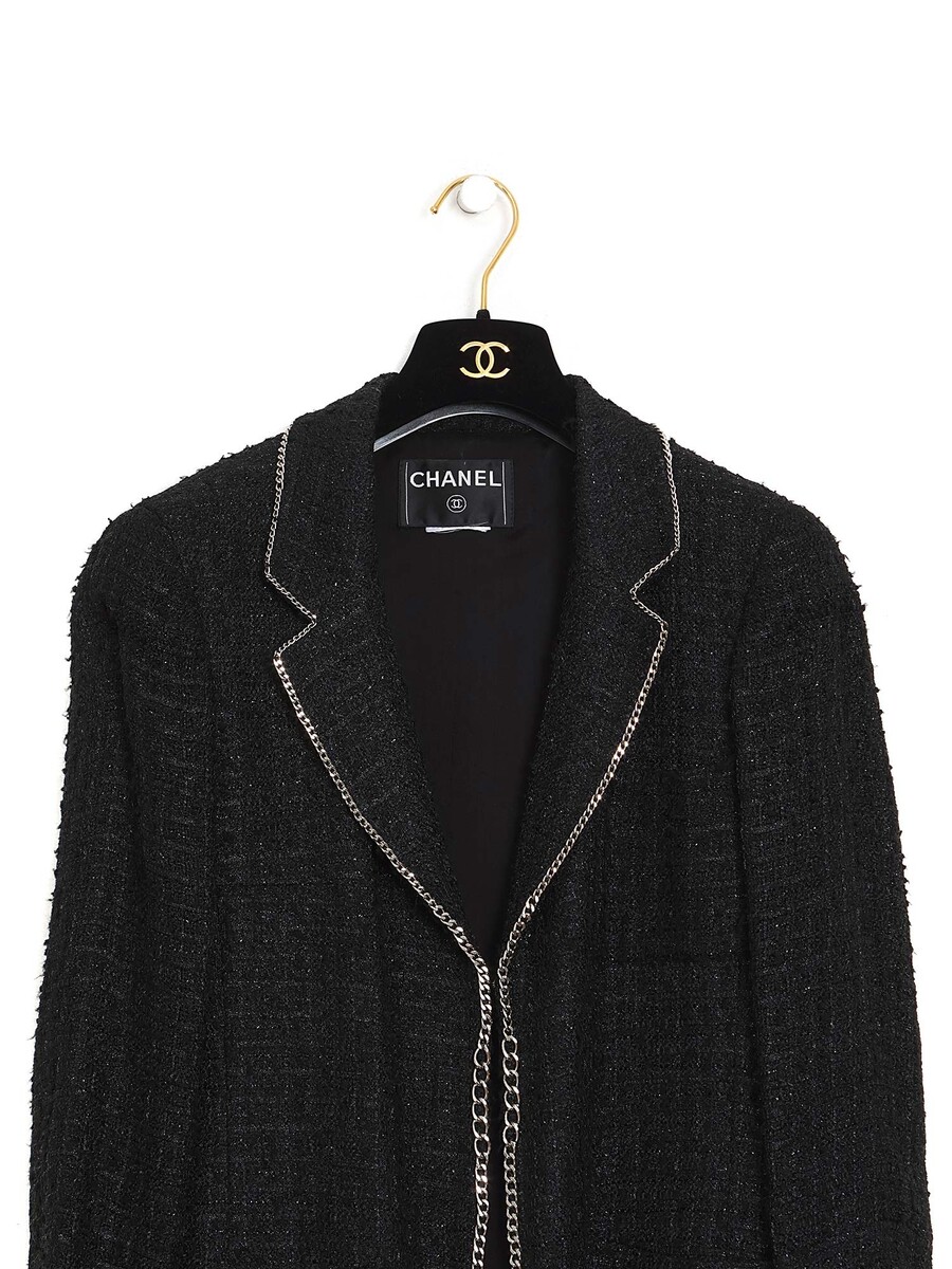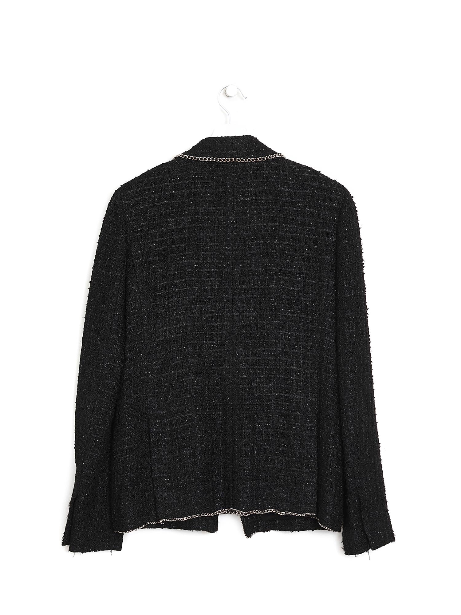 Veste à manches longues en tweed avec détail de bordure à chaînes. Col à revers.