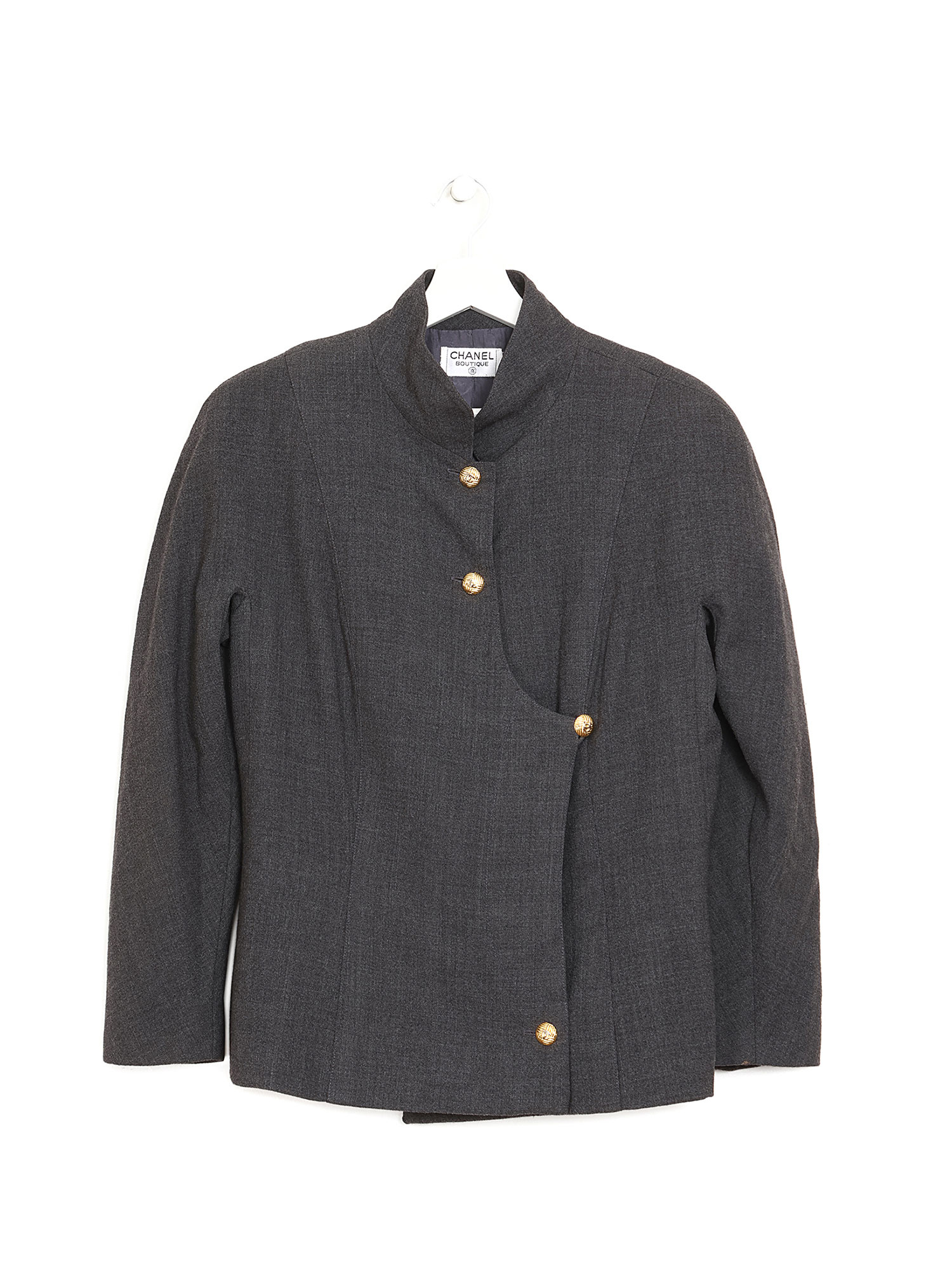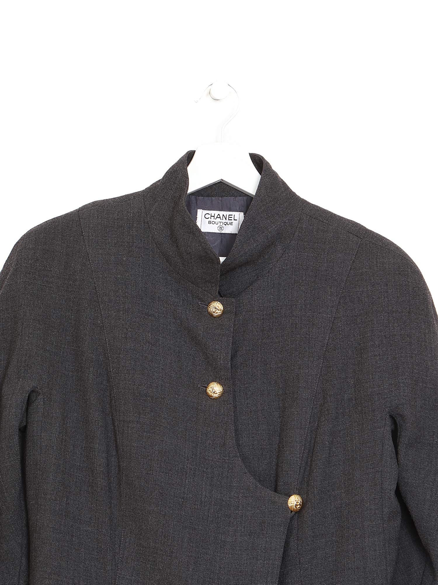 Veston vintage à col droit avec boutons décoratifs dorés. Fermeture par boutons à l'avant.