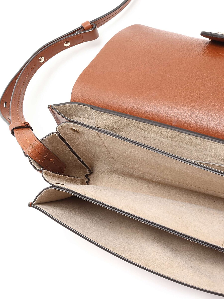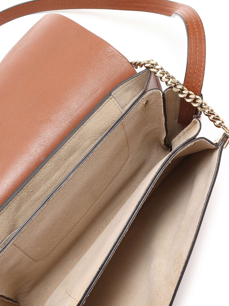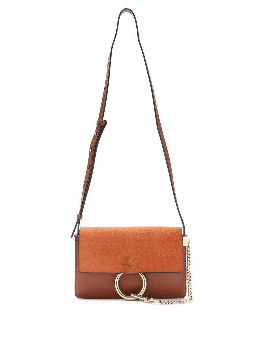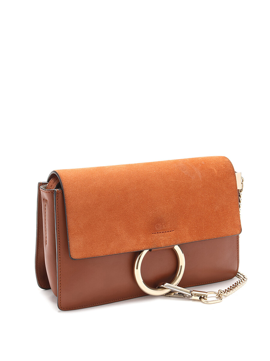 Petit sac à l'épaule Faye en cuir et suède brun par Chloé. Détail d’anneau à l’avant et fermoir magnétique. Ferrures en métal doré. Sangle en cuir ajustable. Livré avec cartes d'authenticité.