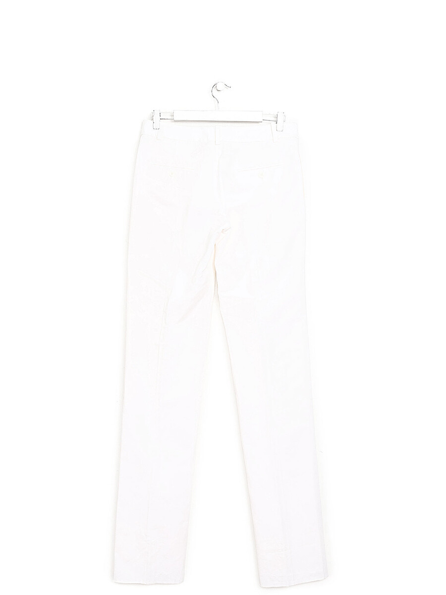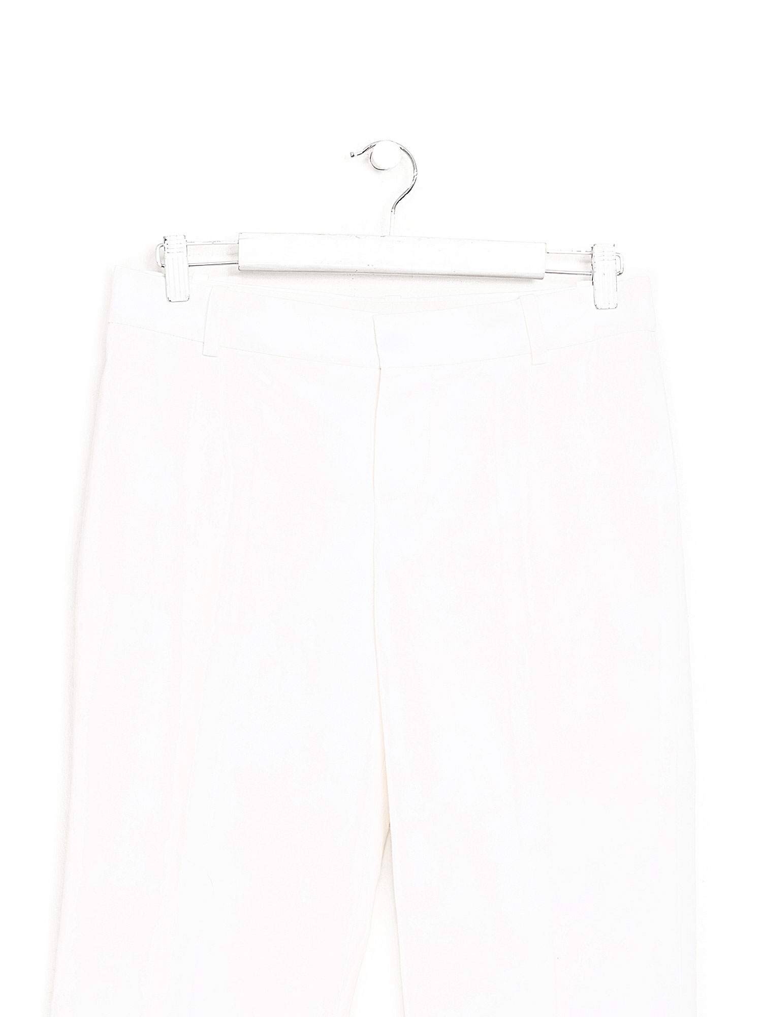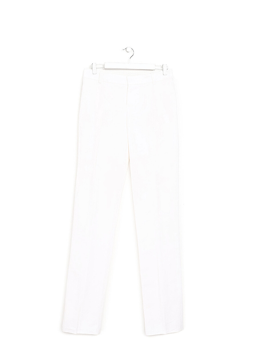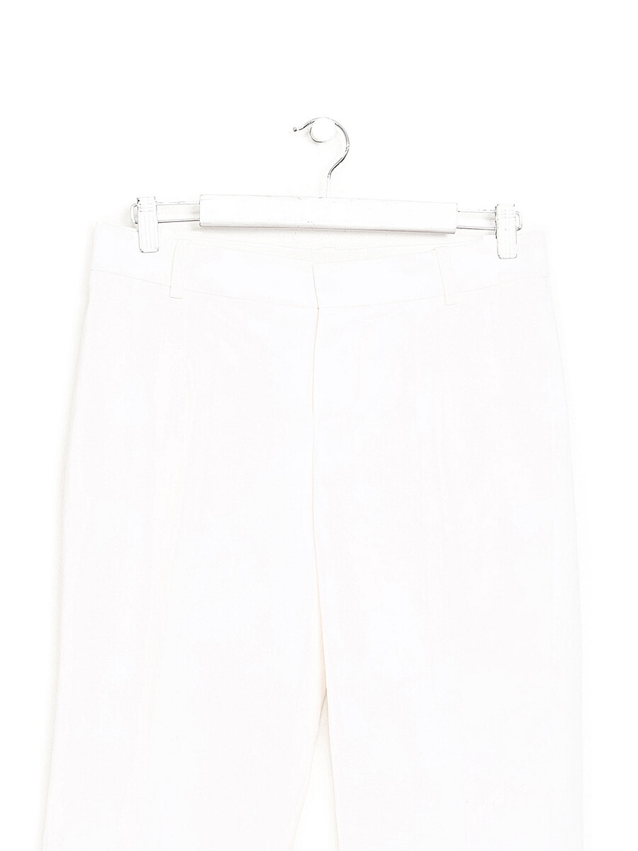 Pantalon à jambe droite en lin blanc cassé. Poches latérales. Plis à la jambe.