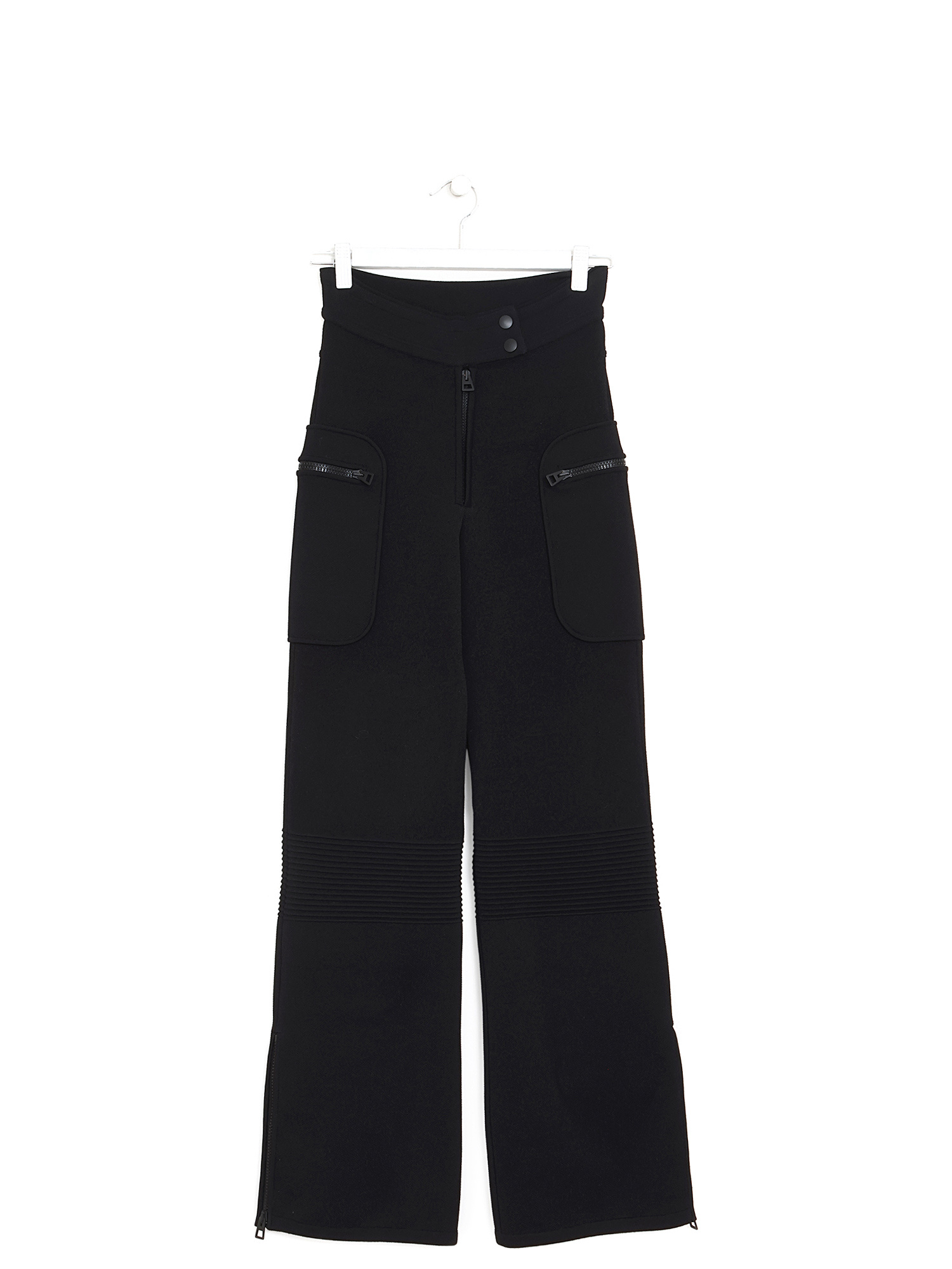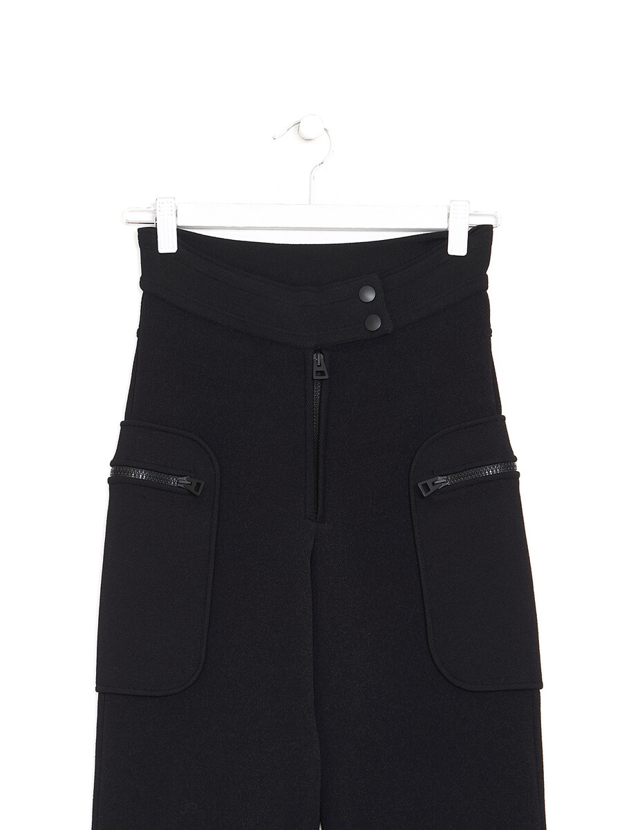 Pantalon avec fermeture à glissière sur le devant et patte de boutonnage en noir. Poches à glissière.