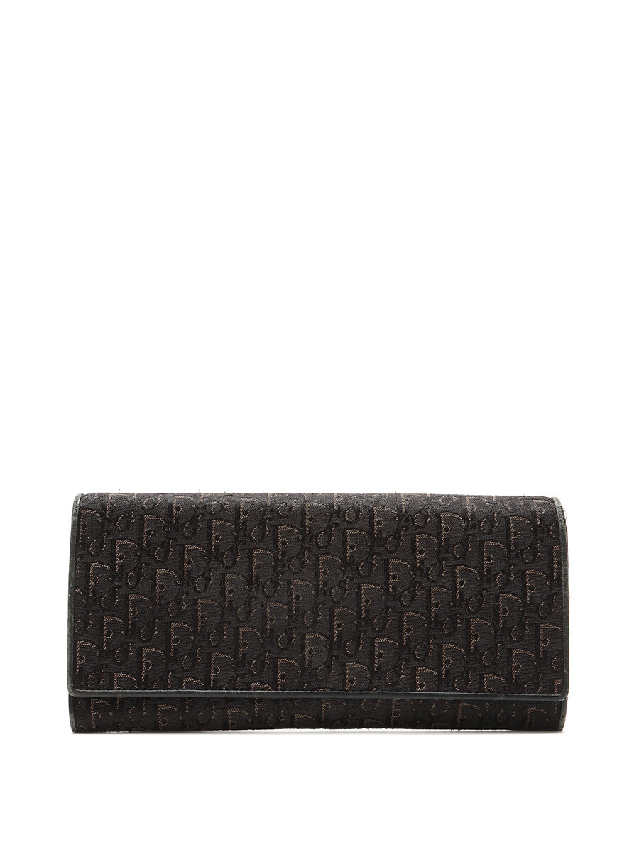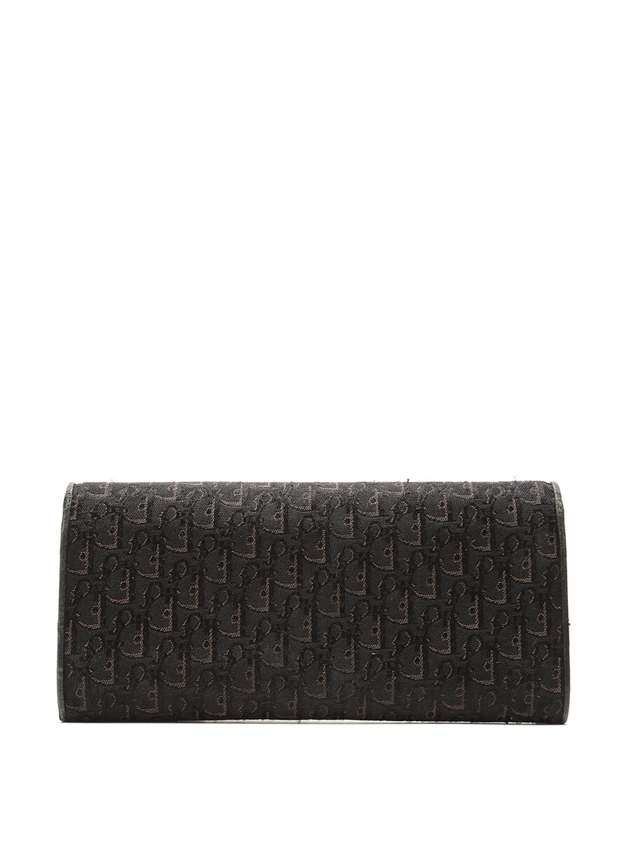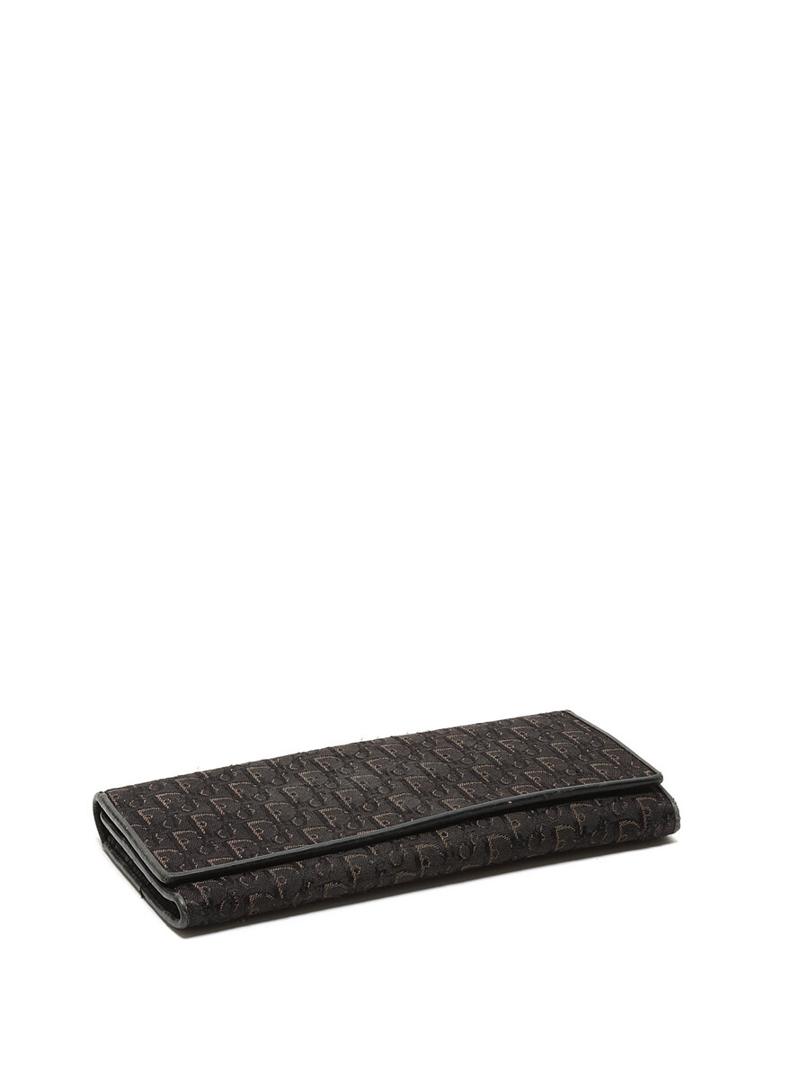 Portefeuille en canevas Dior Oblique emblématique avec détails en cuir et motif monogramme en noir. Fermeture à pression avec ferrures argentées.