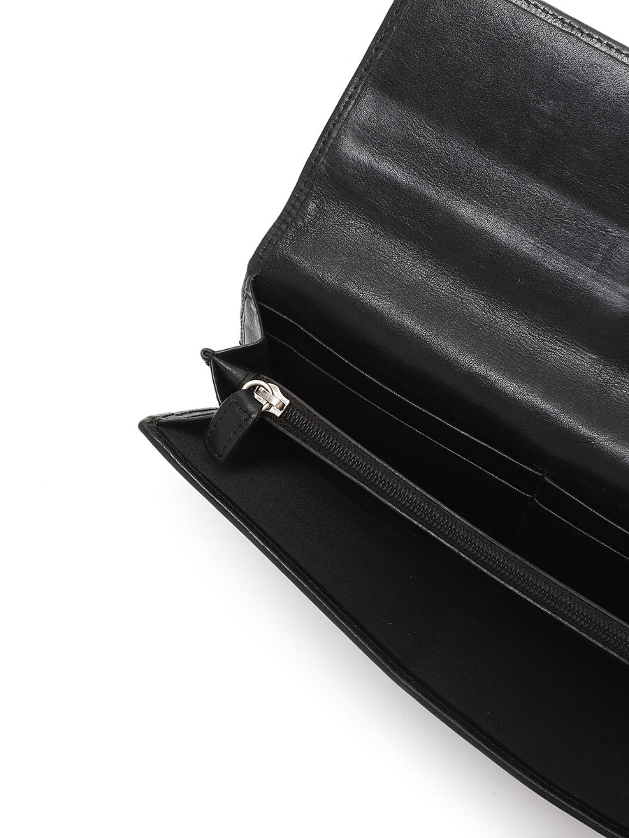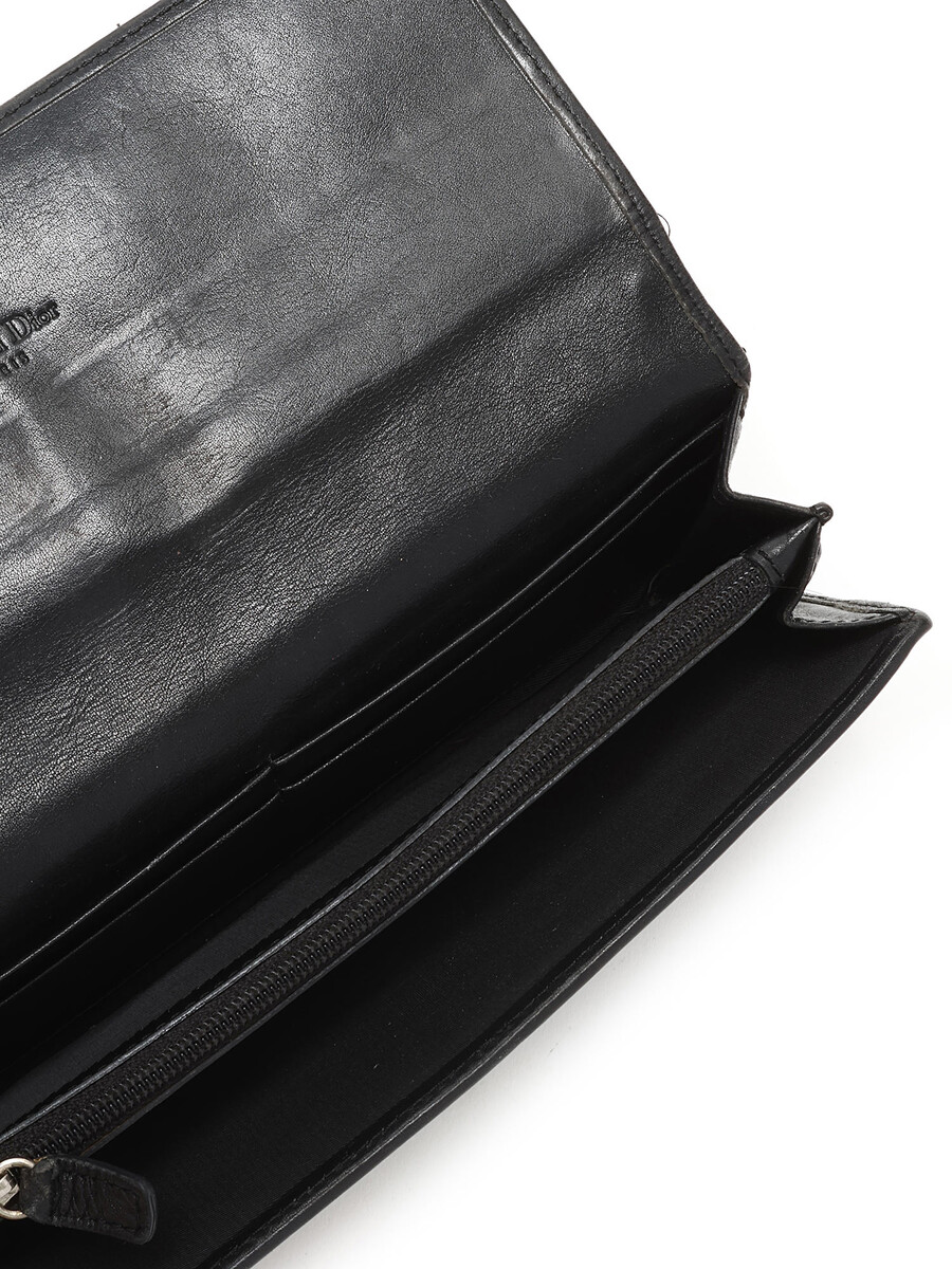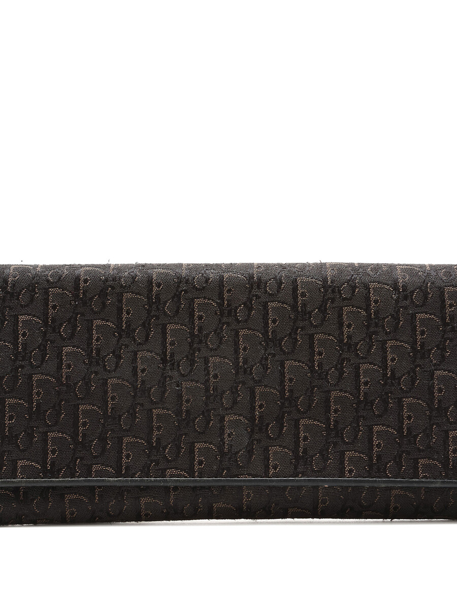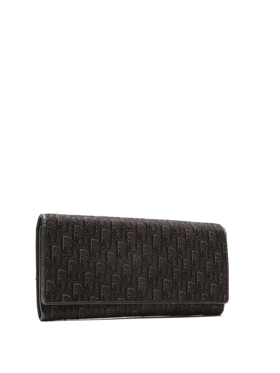 Portefeuille en canevas Dior Oblique emblématique avec détails en cuir et motif monogramme en noir. Fermeture à pression avec ferrures argentées.