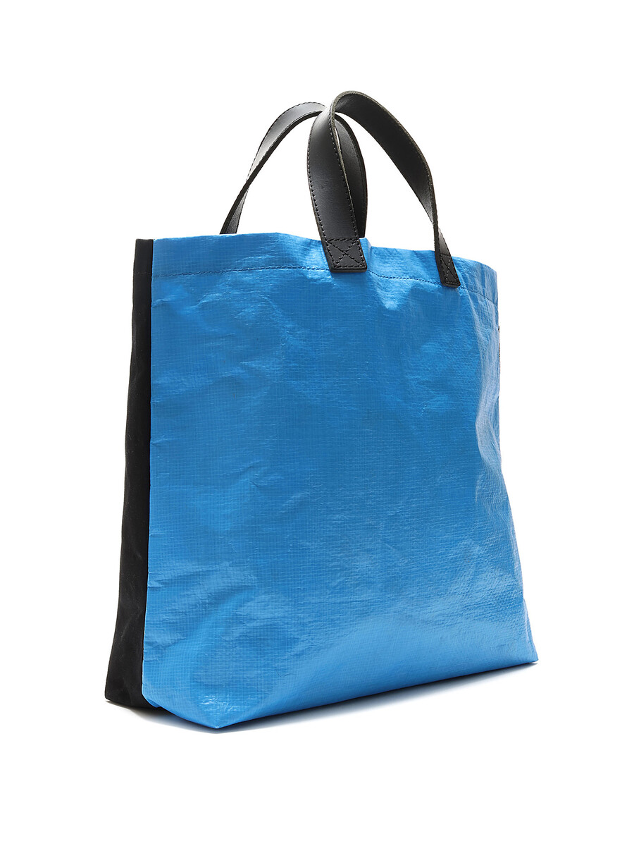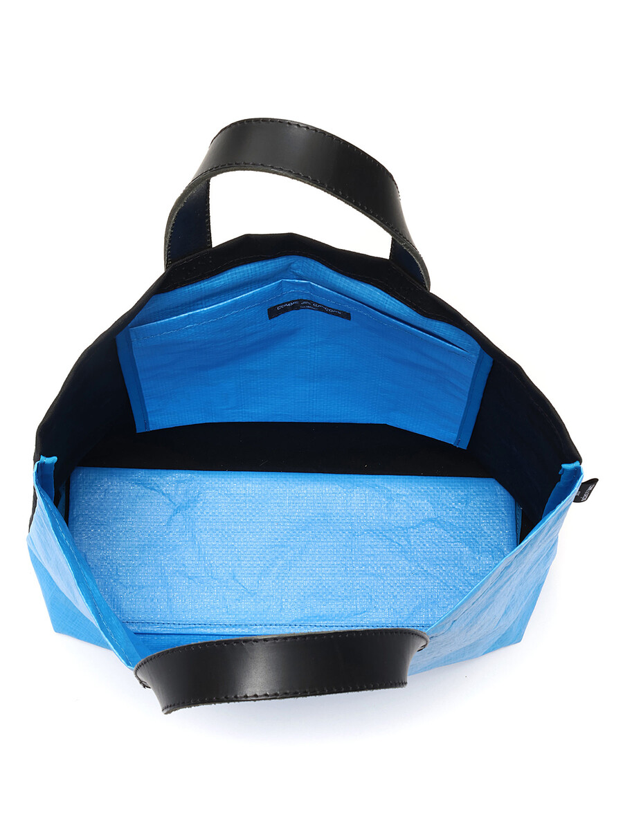 Sac fourre-tout bicolore en matière synthétique avec un design contrasté en bleu et noir. Poignées noires. Intérieur spacieux pour les essentiels quotidiens.