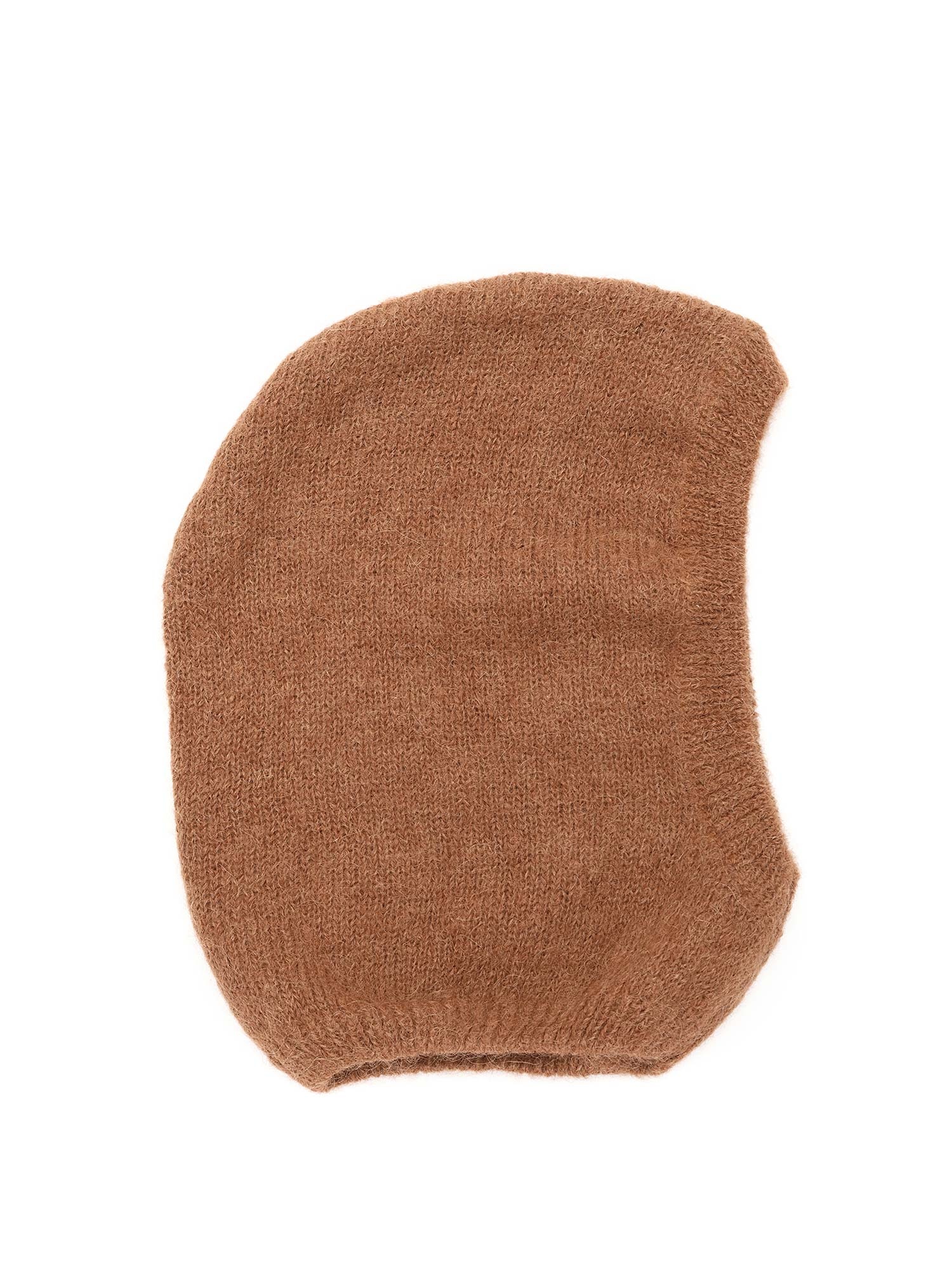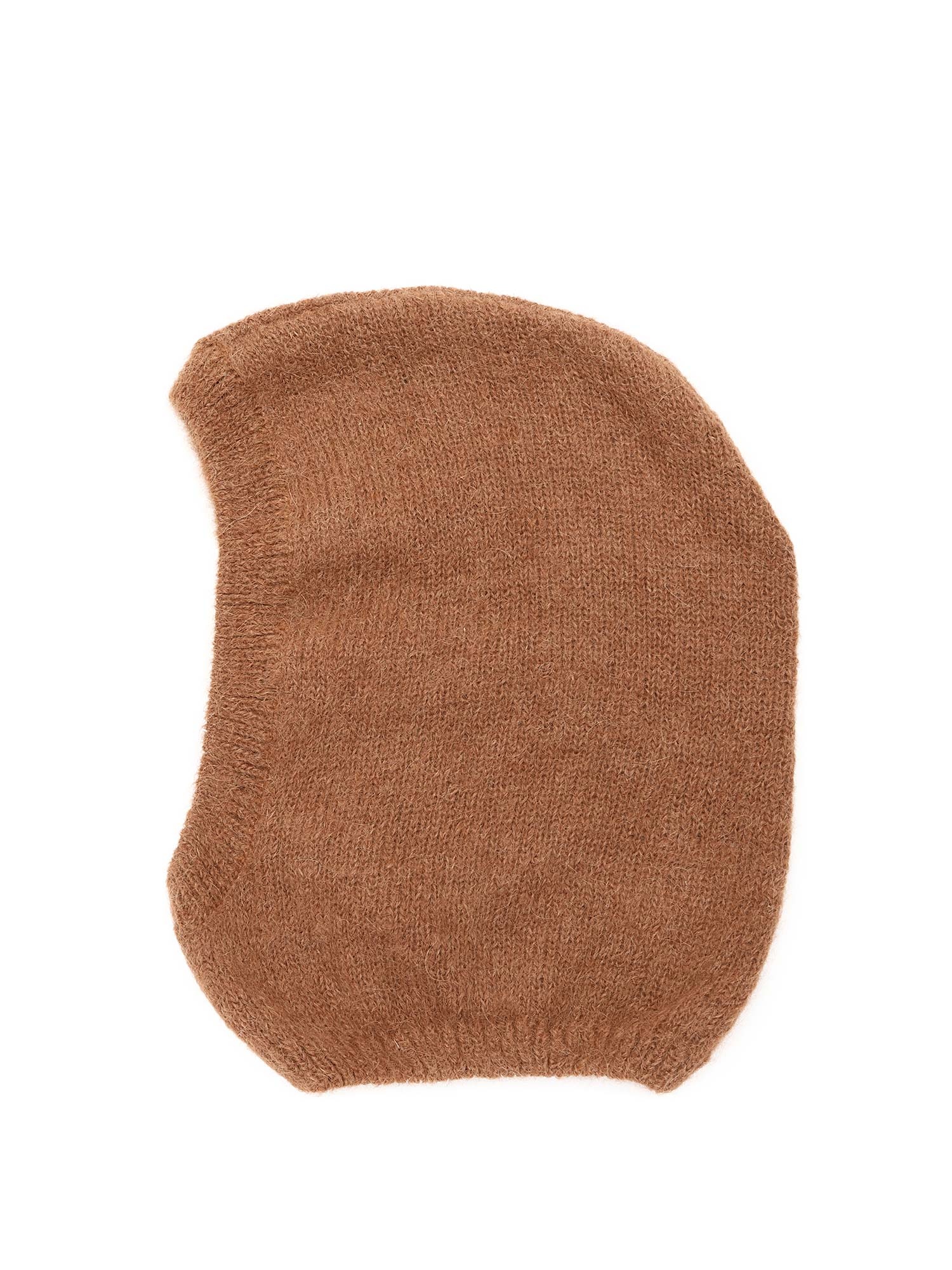 Cagoule en tricot d'alpaga brun. Texture douce. Construction sans coutures avec bords côtelés.