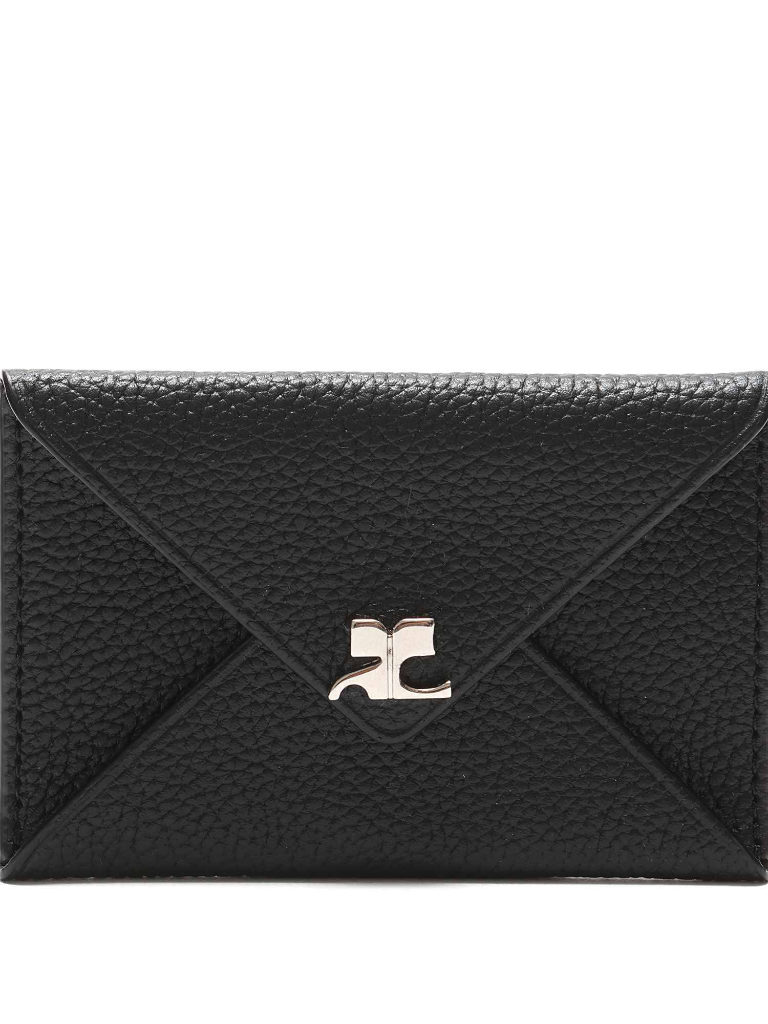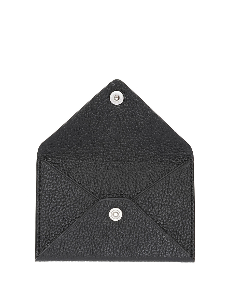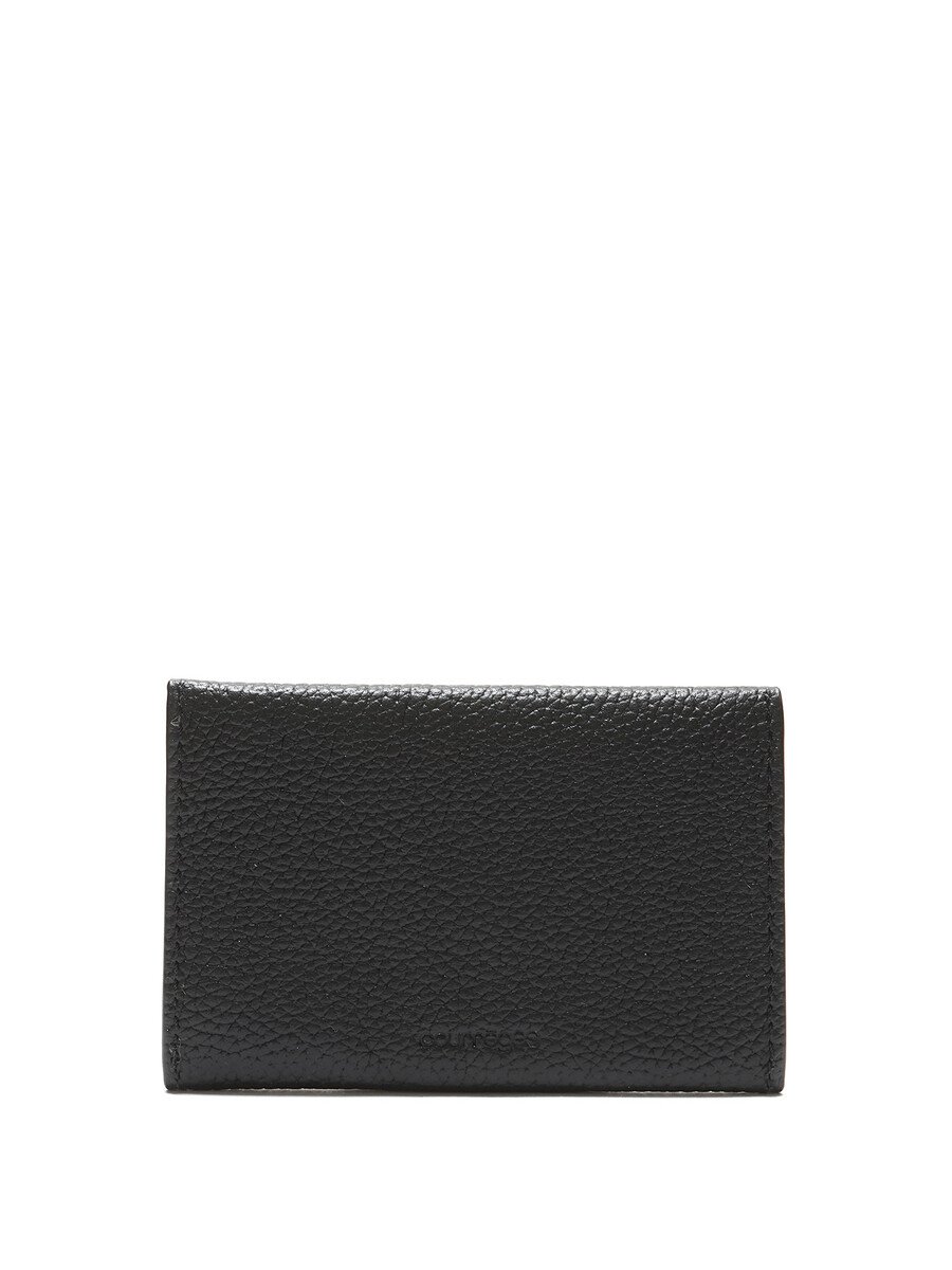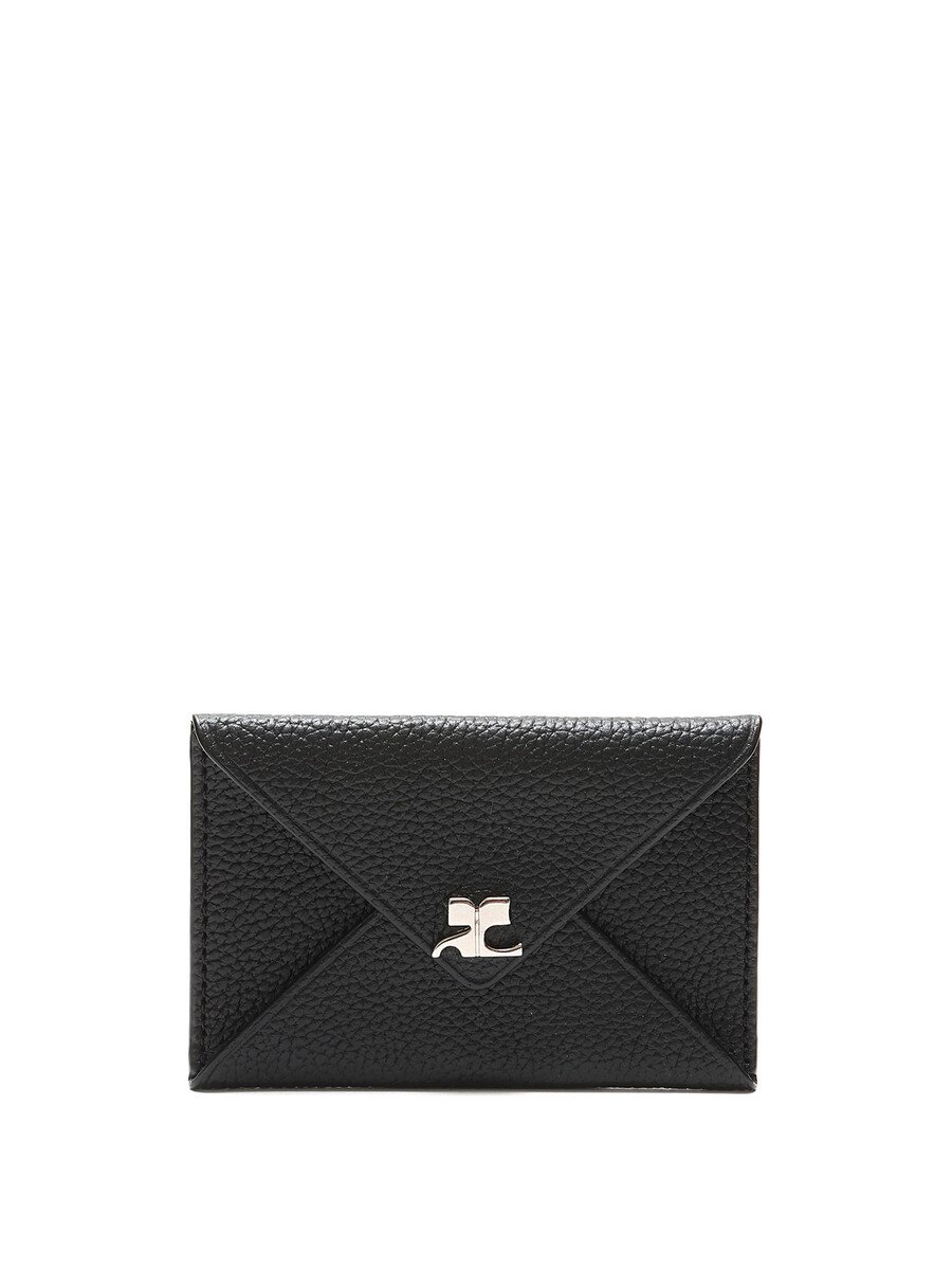 Petit portefeuille ML en cuir texturé noir. Logo embossé sur le devant. Fermeture à pression avec détail de clou argenté. Livré avec un sac de protection.