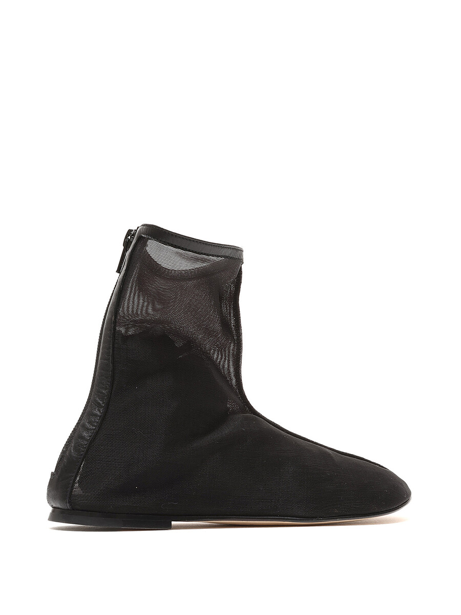 Bottes Hero. Tige en maille noire avec motif en maille. Fermeture à glissière sur le côté. Bout rond. Semelle plate en cuir.