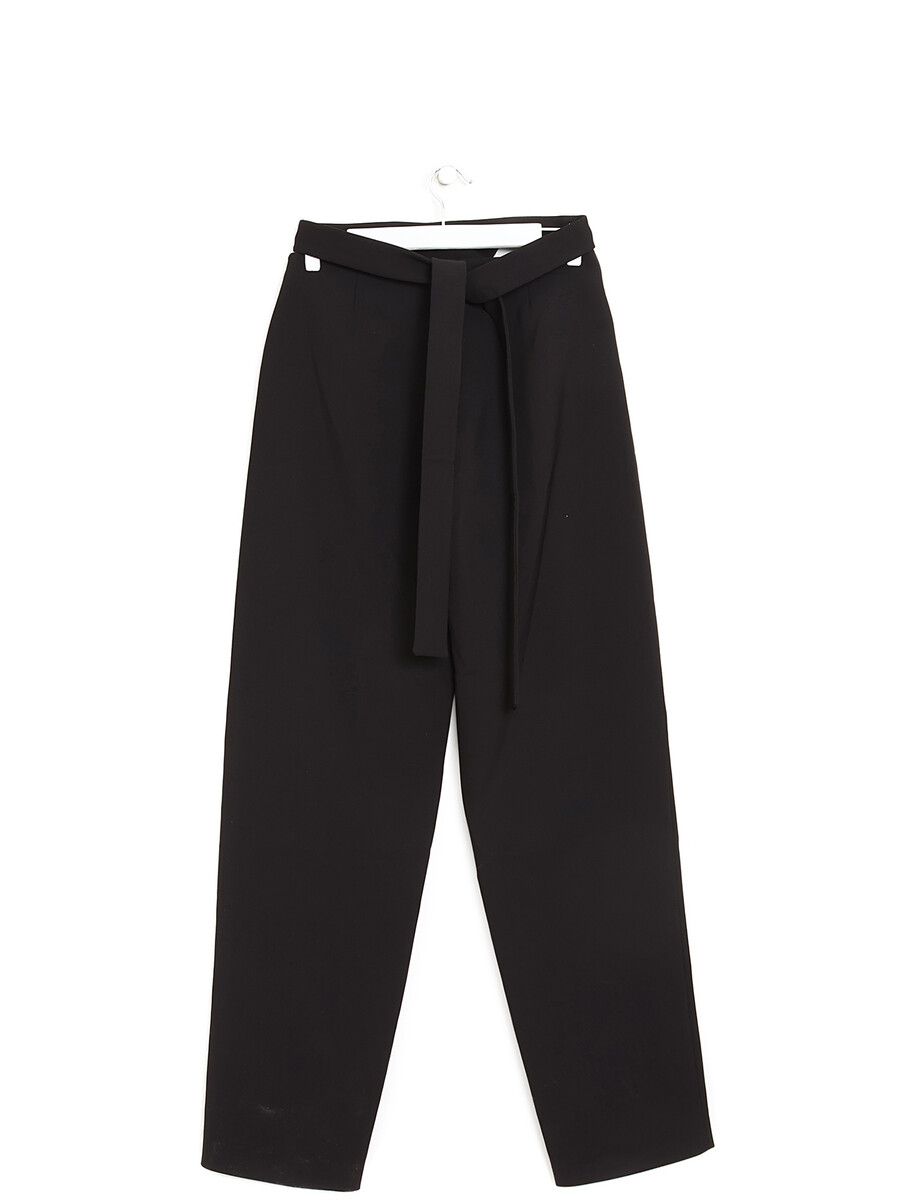 Pantalon à jambe ajustée en laine noir avec découpe à la hanche.