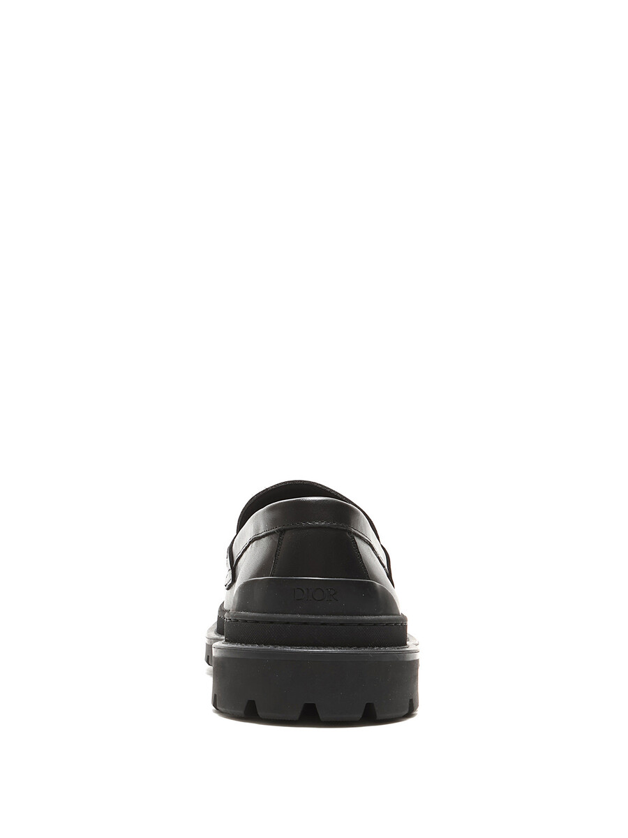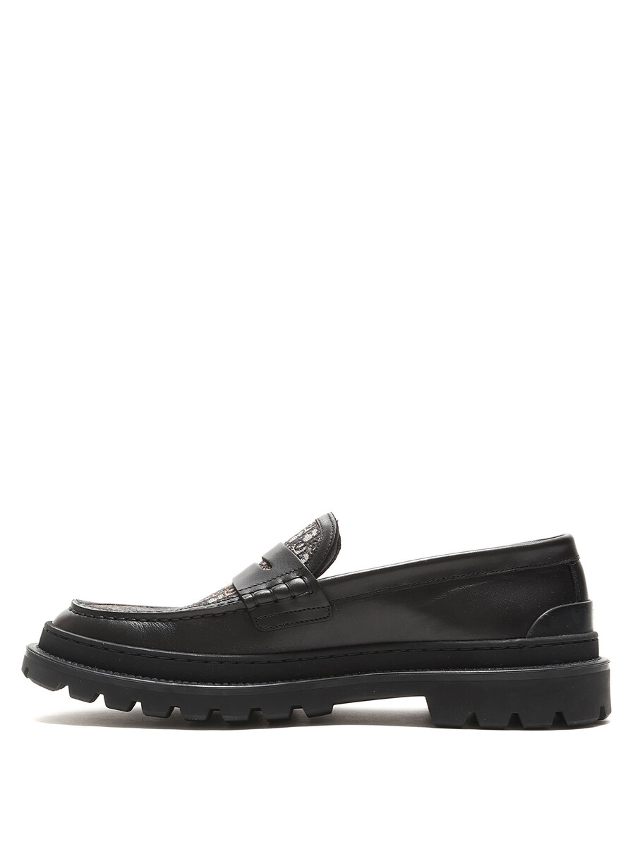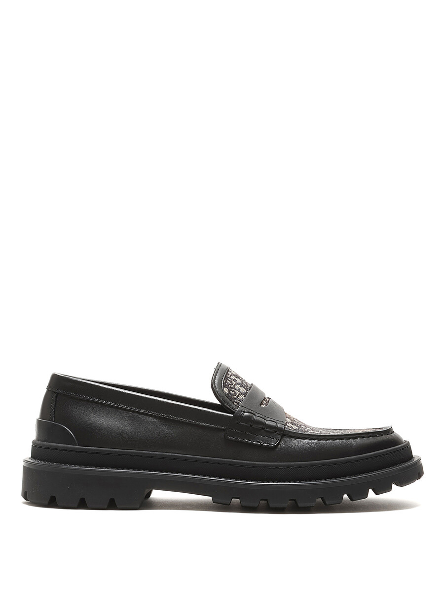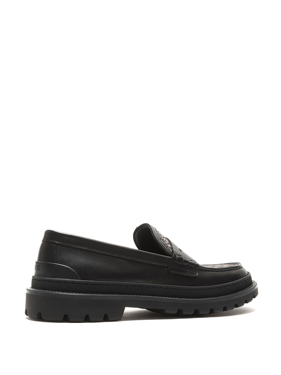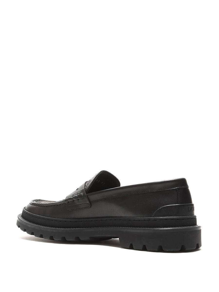Mocassins en cuir à enfiler avec motif logo monogramme en noir. Bout rond. Semelle crantée en caoutchouc.