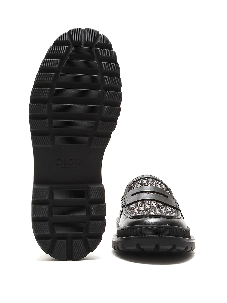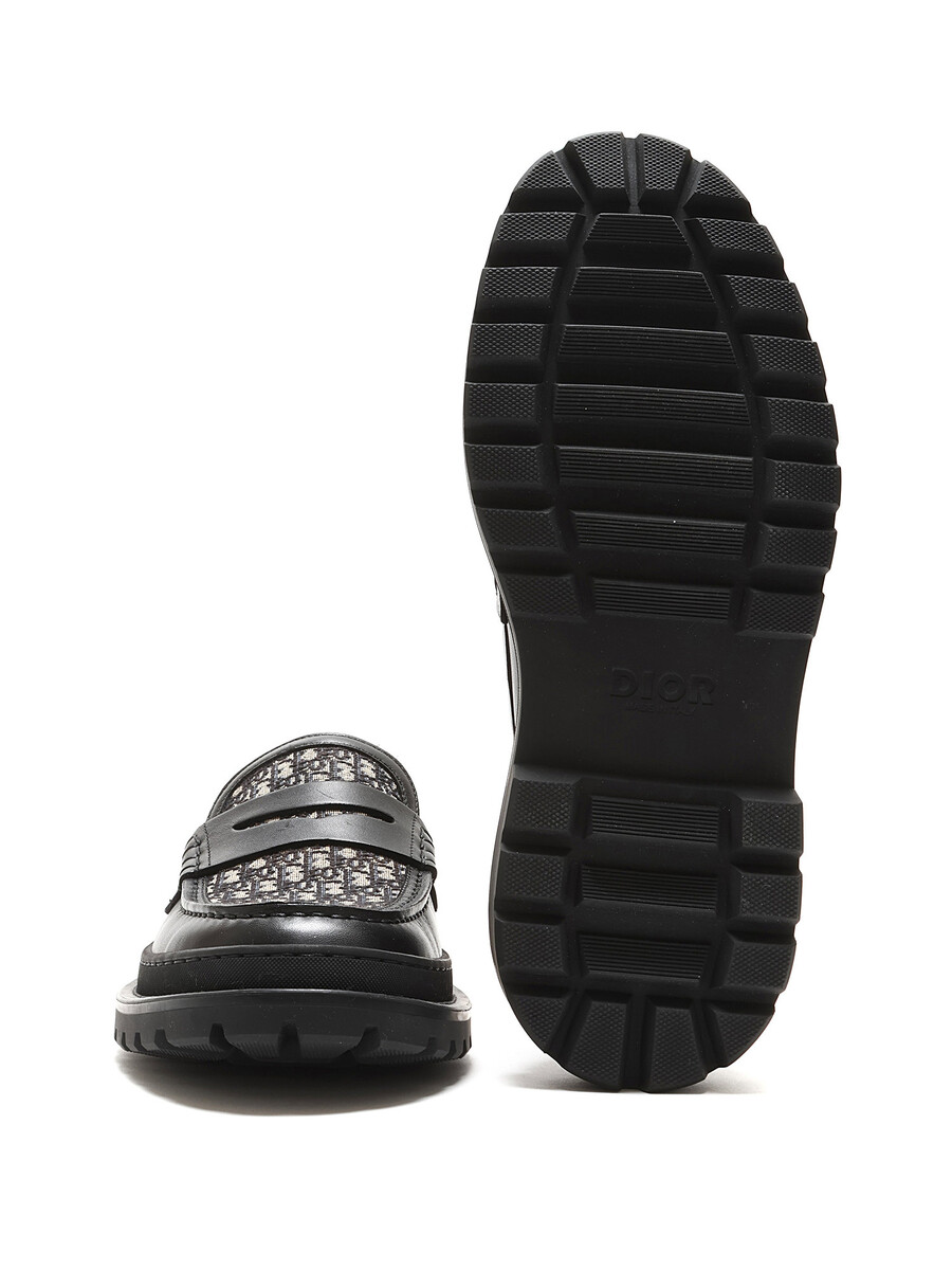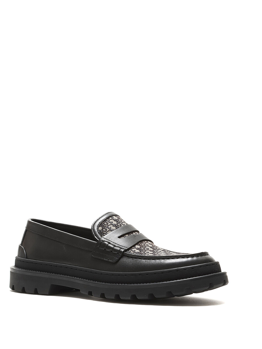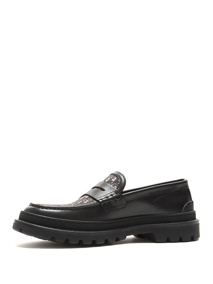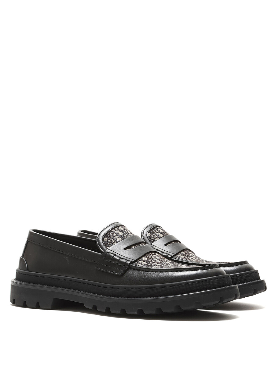 Mocassins en cuir à enfiler avec motif logo monogramme en noir. Bout rond. Semelle crantée en caoutchouc.