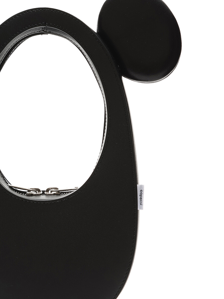 Sac Swipe en cuir noir avec détails emblématiques d'oreilles de Mickey Mouse. Fermeture zippée. Livré avec un dustbag.