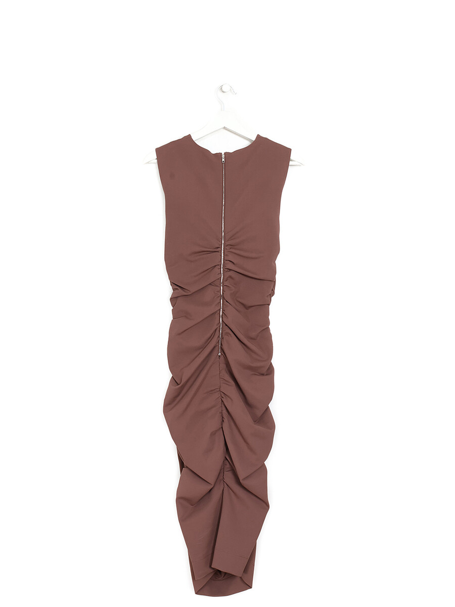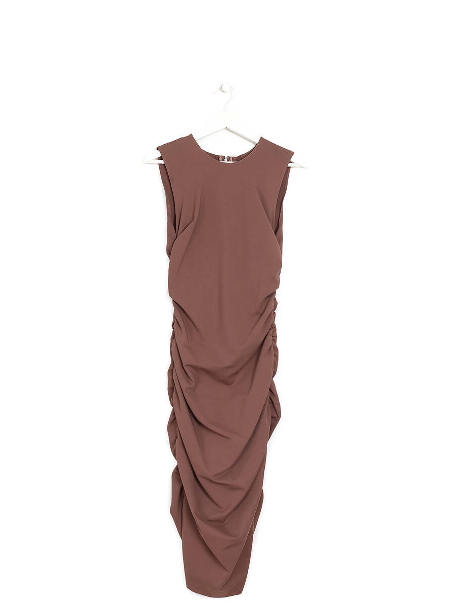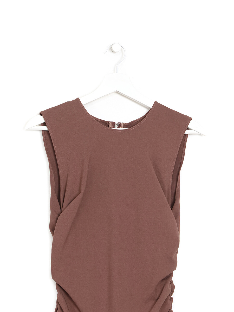 Robe sans manches avec détails de fronces sur les côtés. Fermeture éclair dans le dos. Encolure ronde. Silhouette ajustée.