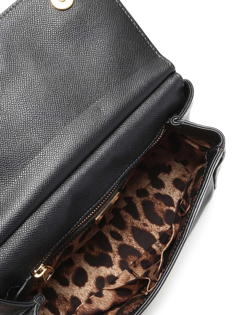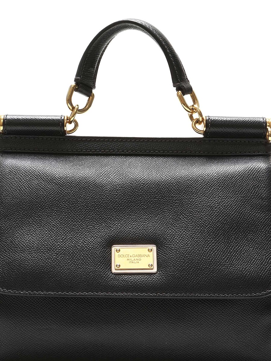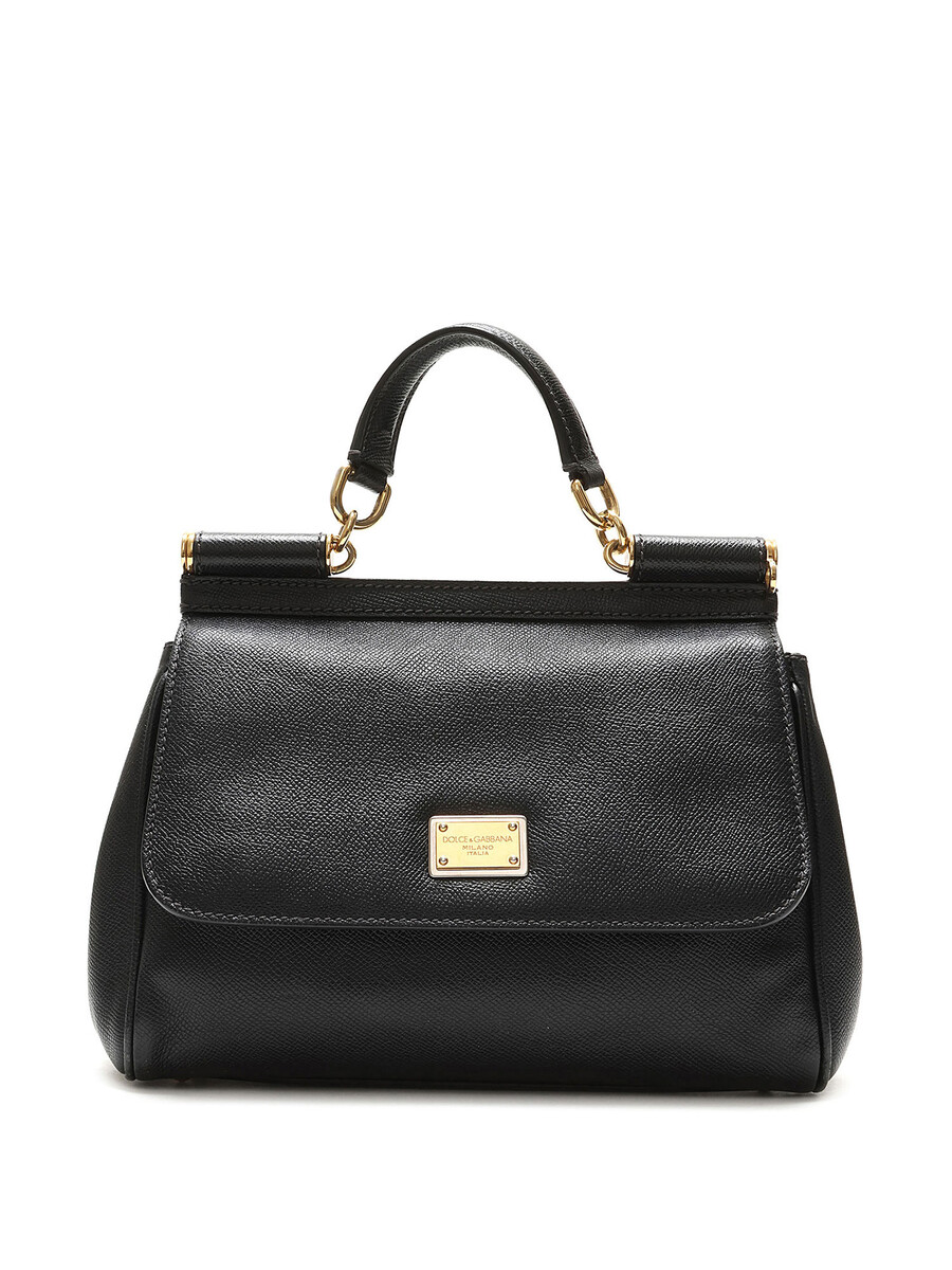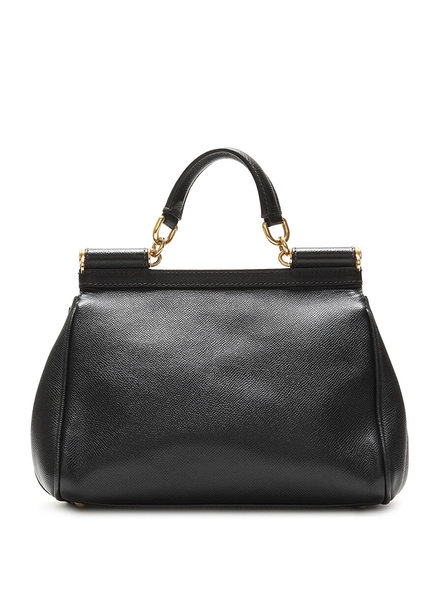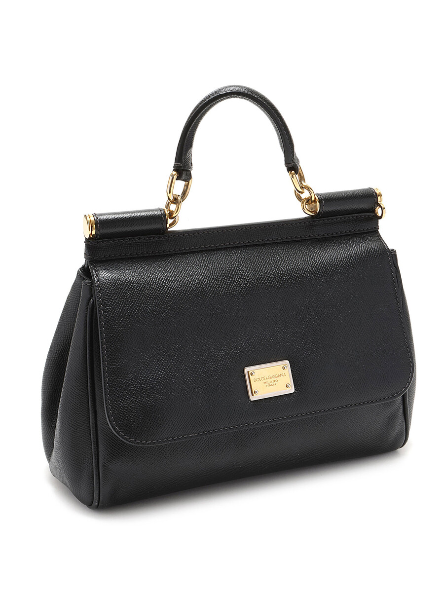 Sac à main en cuir Saffiano noir à design minimaliste. Fermeture magnétique à pression. Anse supérieure et bandoulière amovible. Ferrures dorées.