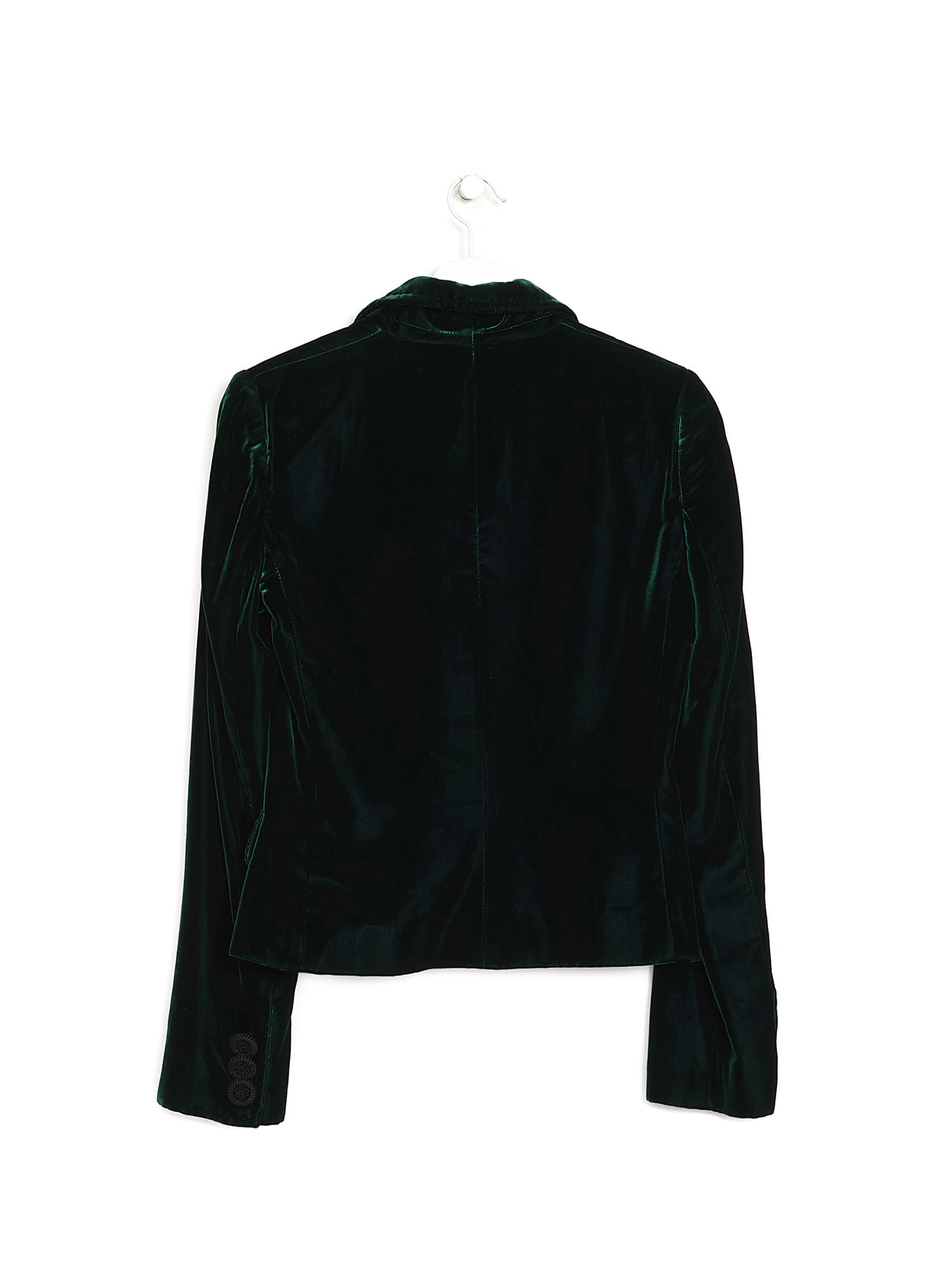 Veste à manches longues en velours vert. Boutonnage devant. Col chemise.