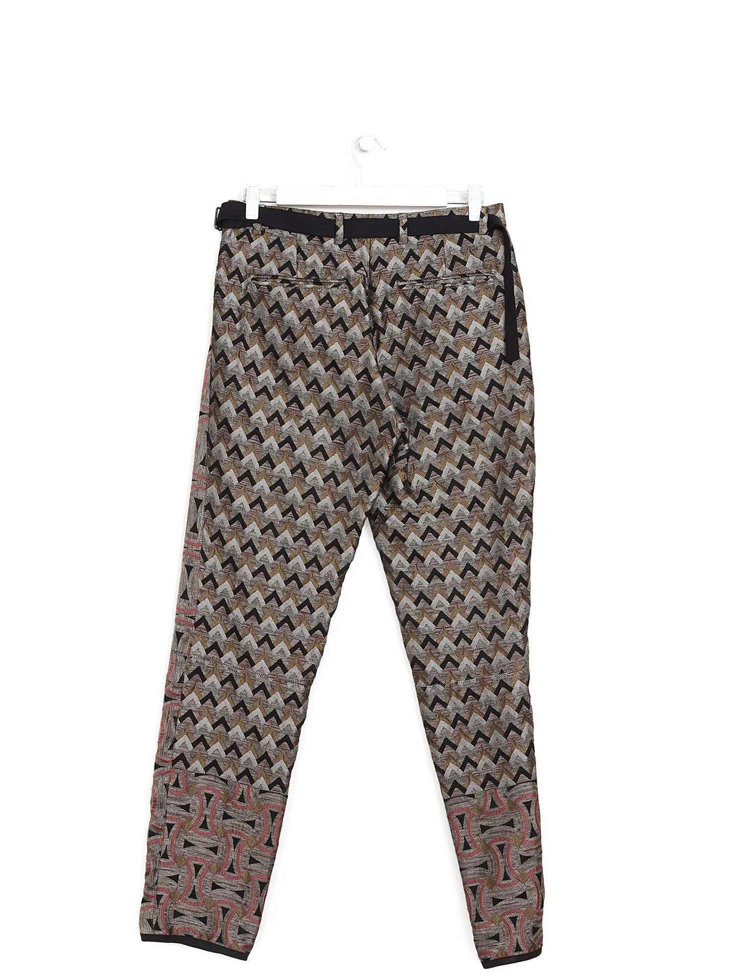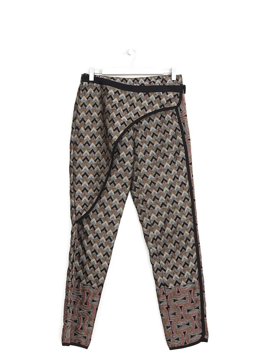 Pantalon à imprimé graphique abstrait dans une palette multicolore. Ceinture ajustable à la taille. Coupe décontractée mais bien ajustée.