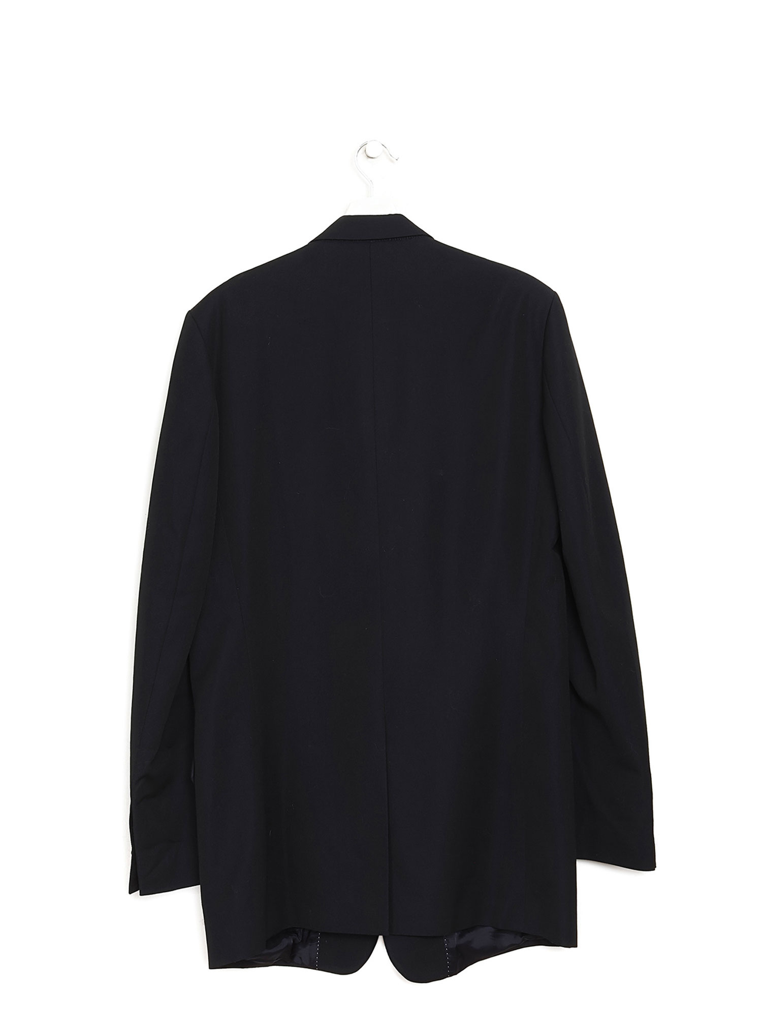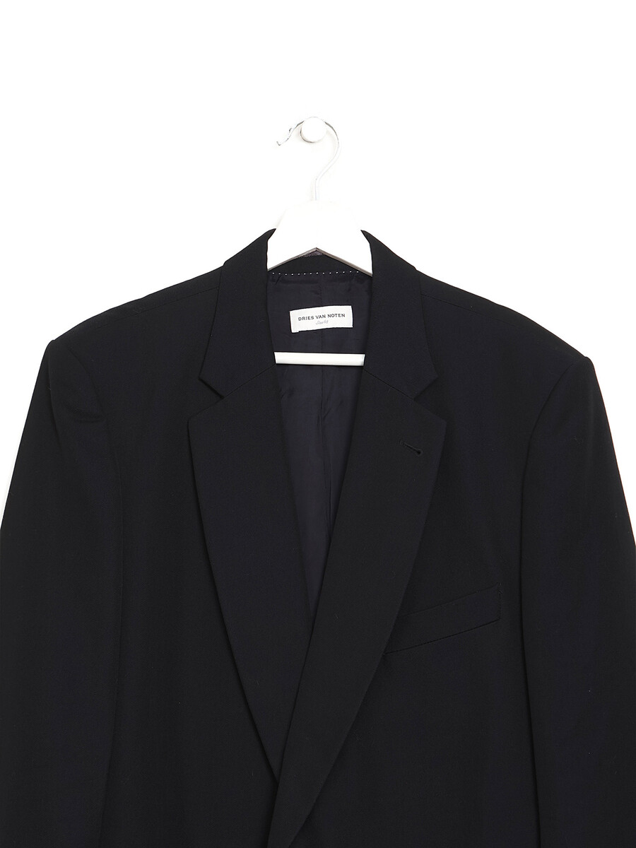 Veston noir à manches longues avec col à entailles, fermeture à boutons, et poches passepoilées. Parfait pour un style raffiné et intemporel.