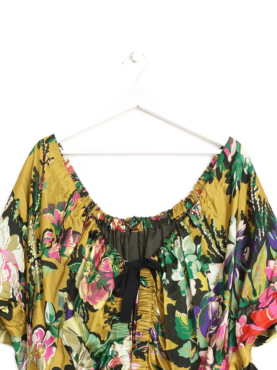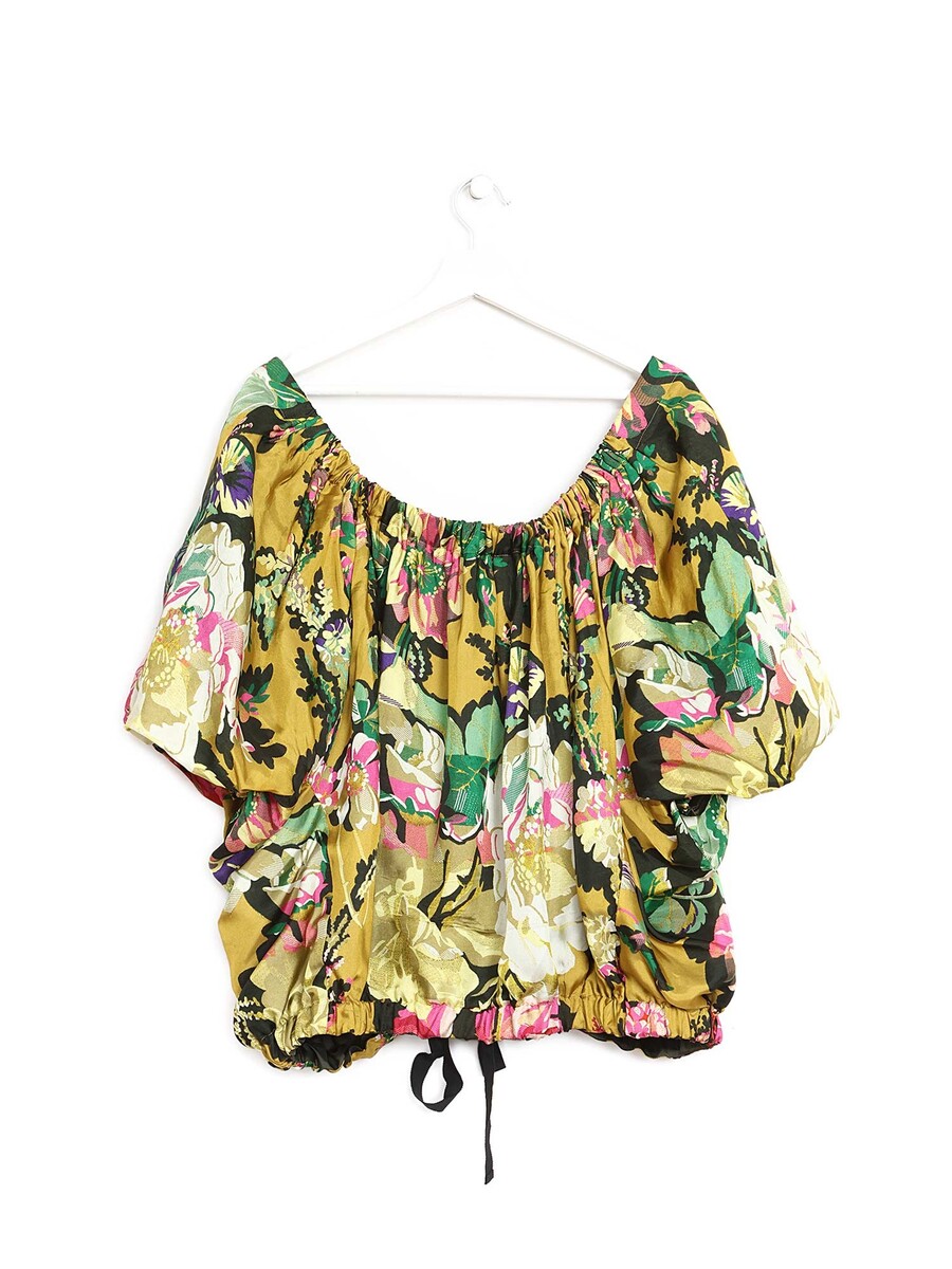 Haut surdimensionné avec un imprimé floral expressif en couleurs vibrantes. Coupe décontractée avec une encolure ronde. Léger et fluide.