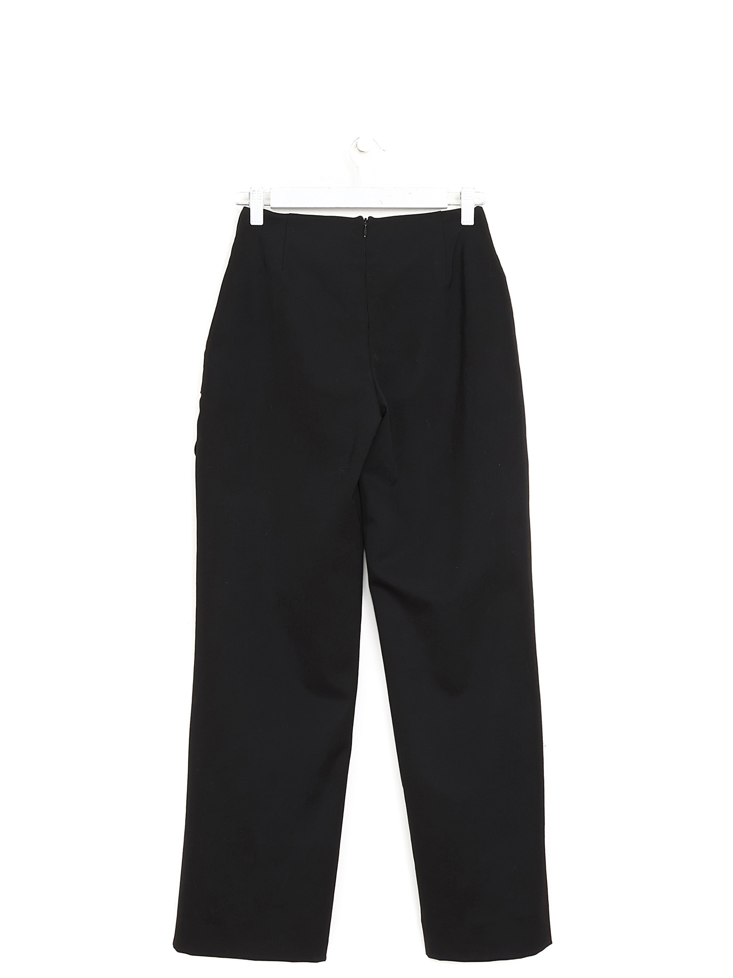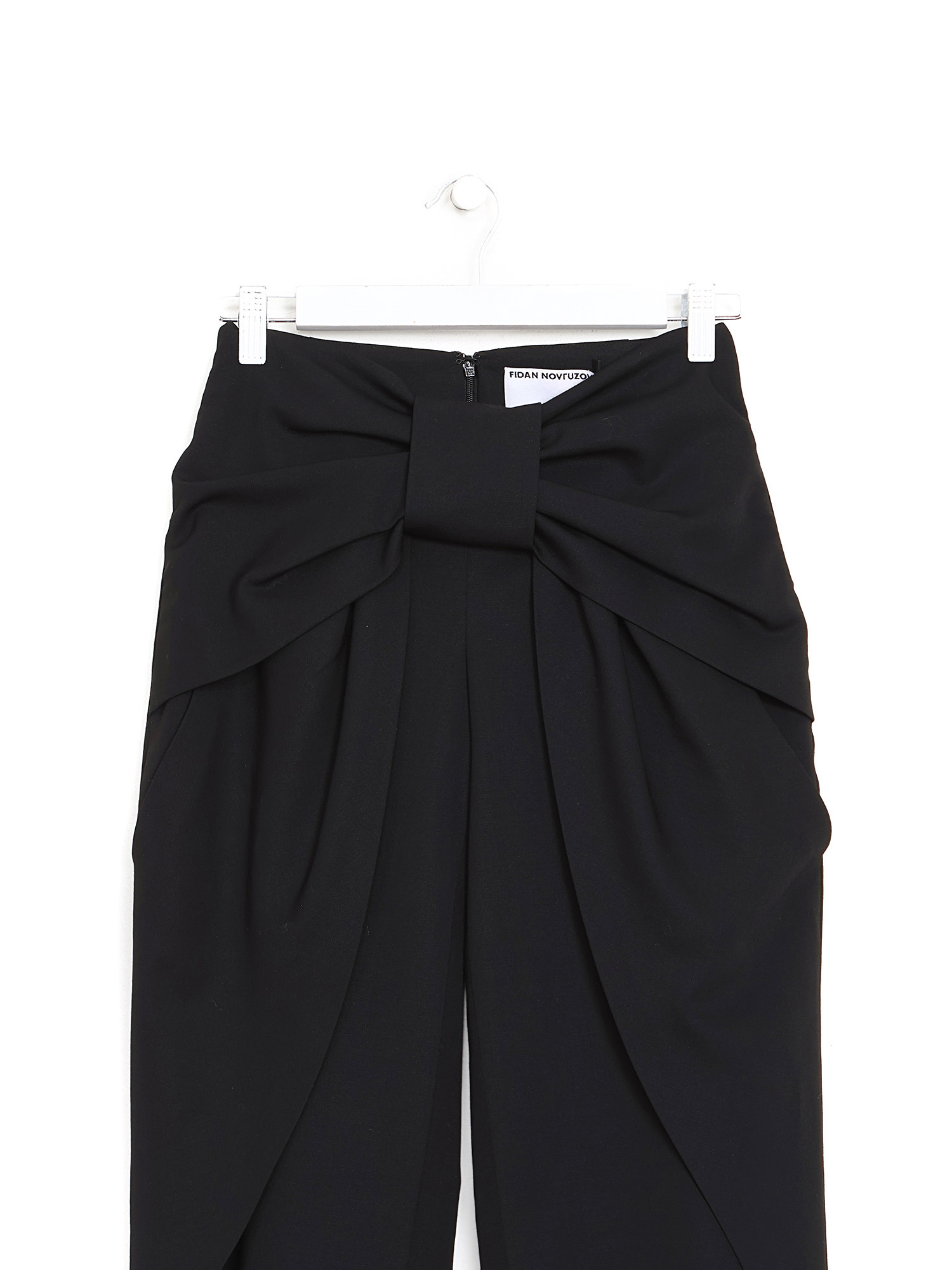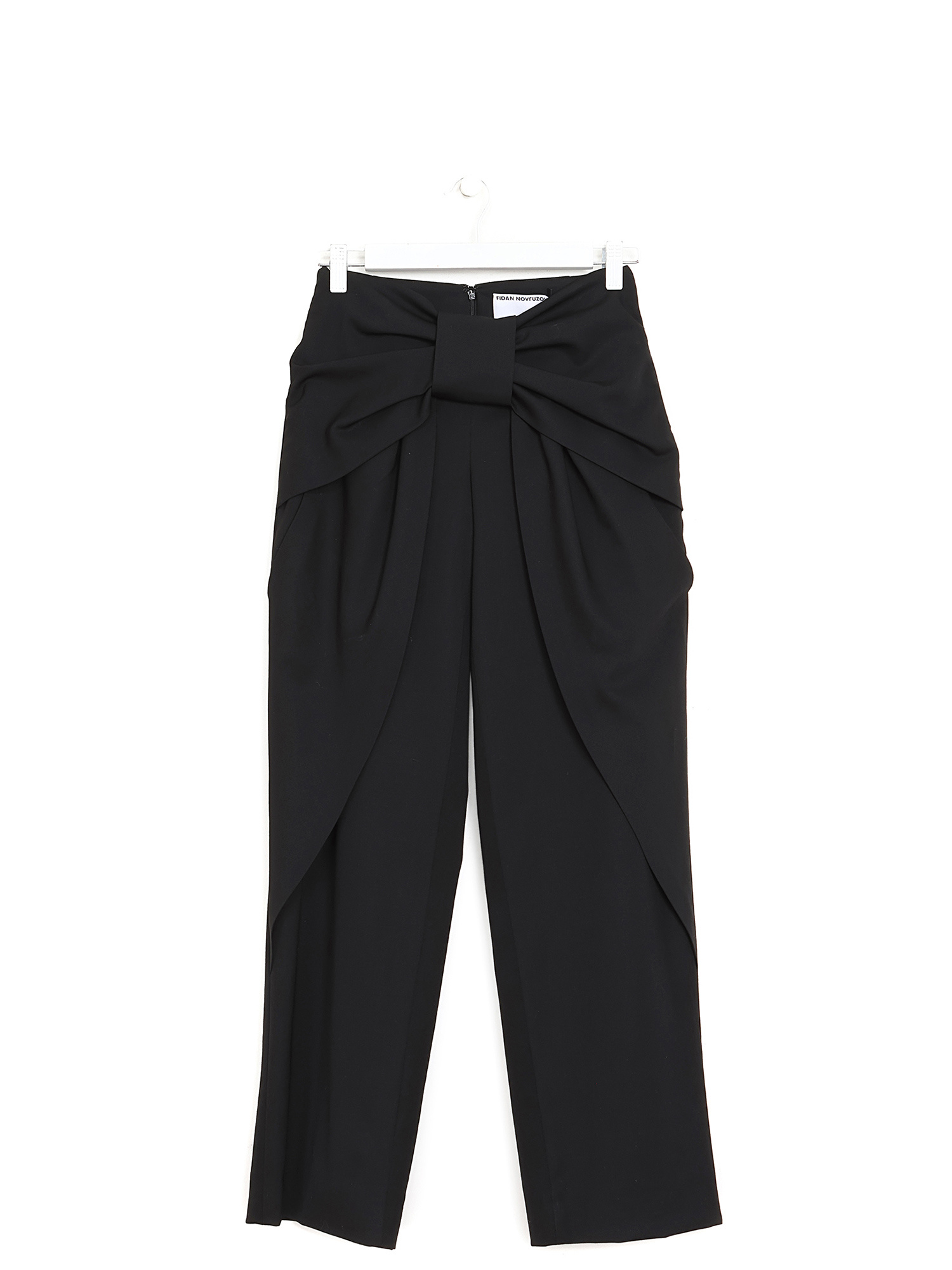 Pantalon taille haute à coupe slim. Fermeture à glissière devant. Détail nœud à la taille.