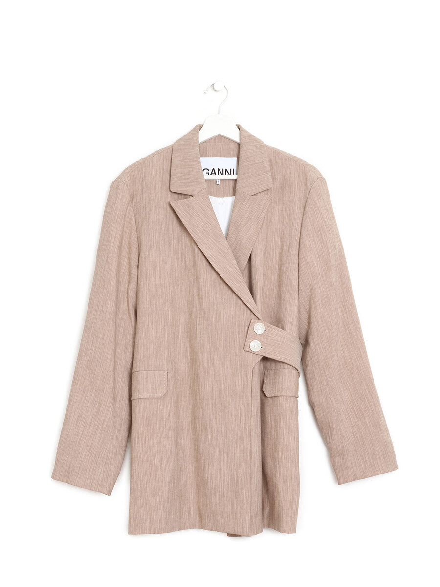 Blazer à manches longues ceinturé en mélange de viscose et polyester. Col à revers classique, fermeture à boutons et poches à rabat à l'avant.