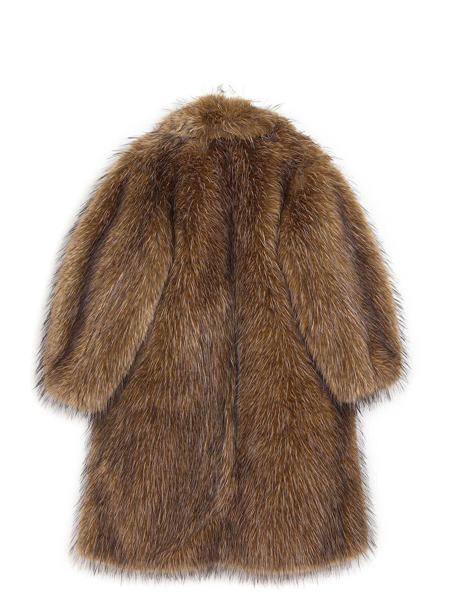 Manteau en fausse fourrure de couleur brune. Manches longues et coupe ample.