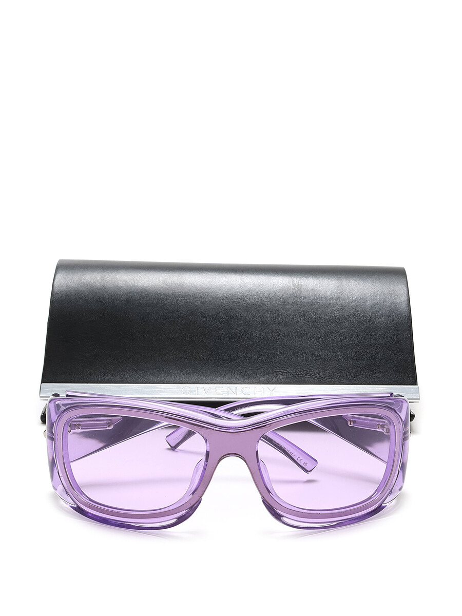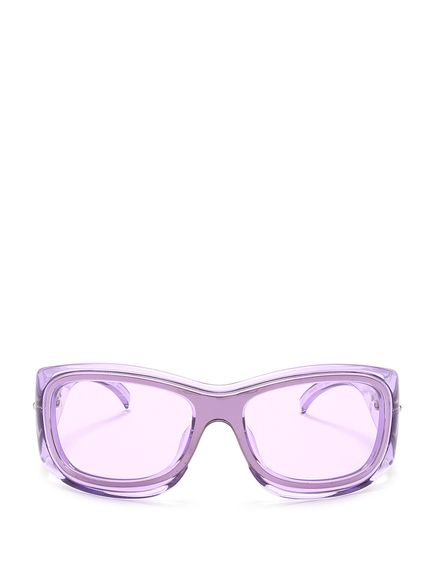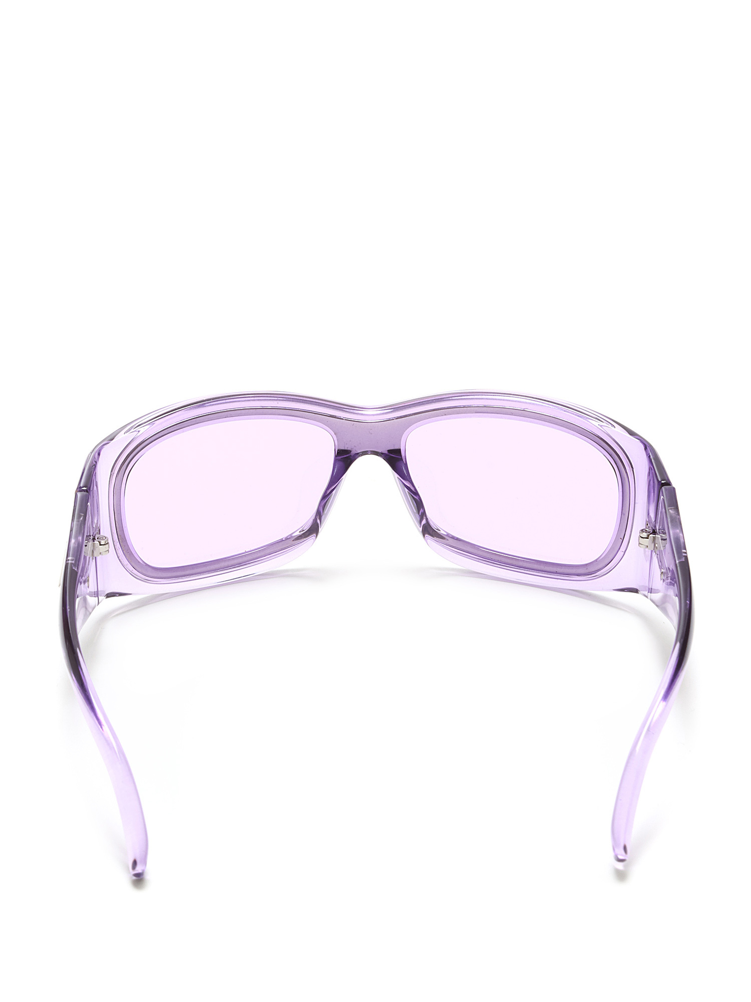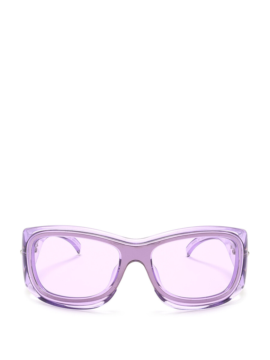 Lunettes de soleil en acétate violet avec détail de logo argenté sur les branches. Verres teintés. Avec étui.