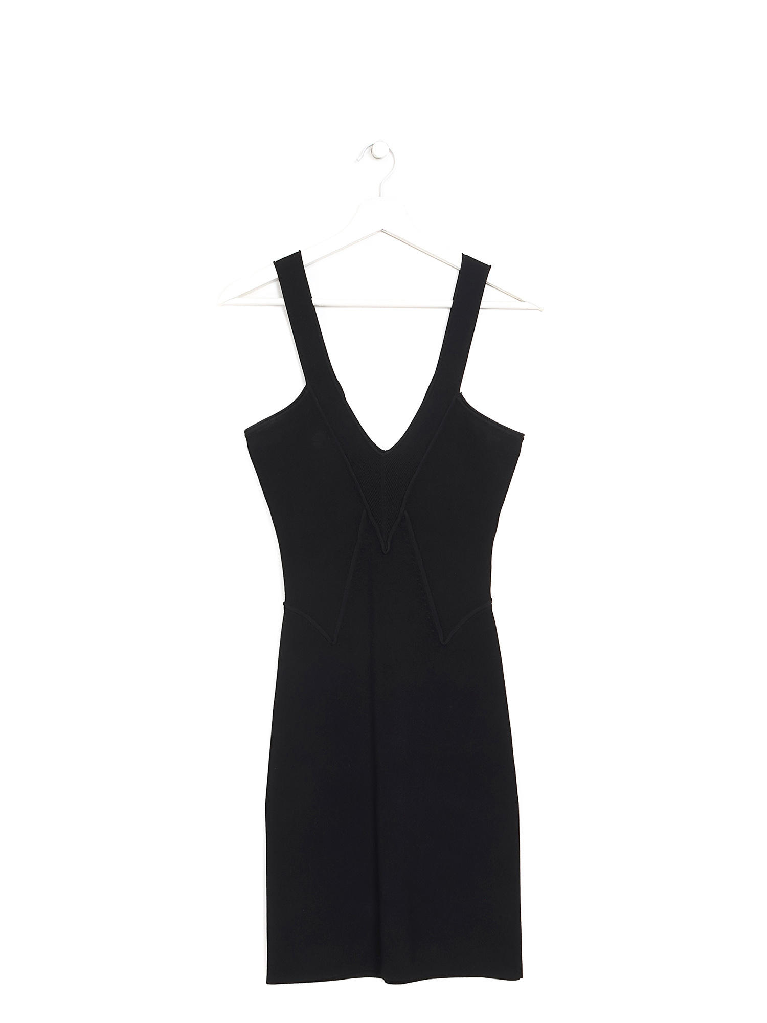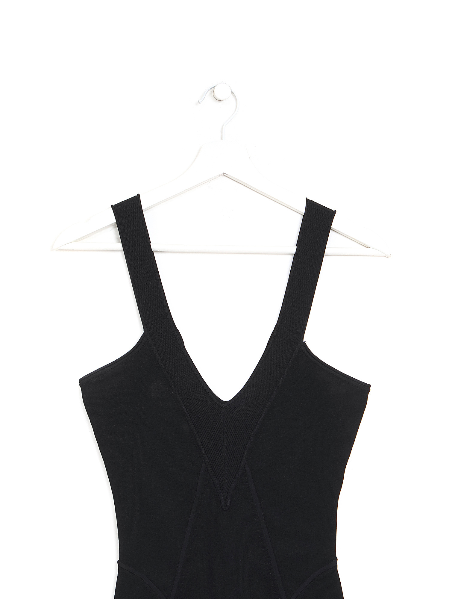Robe noire sans manches confectionnée avec un mélange luxueux de viscose et de polyester, offrant une silhouette élégante et épurée.