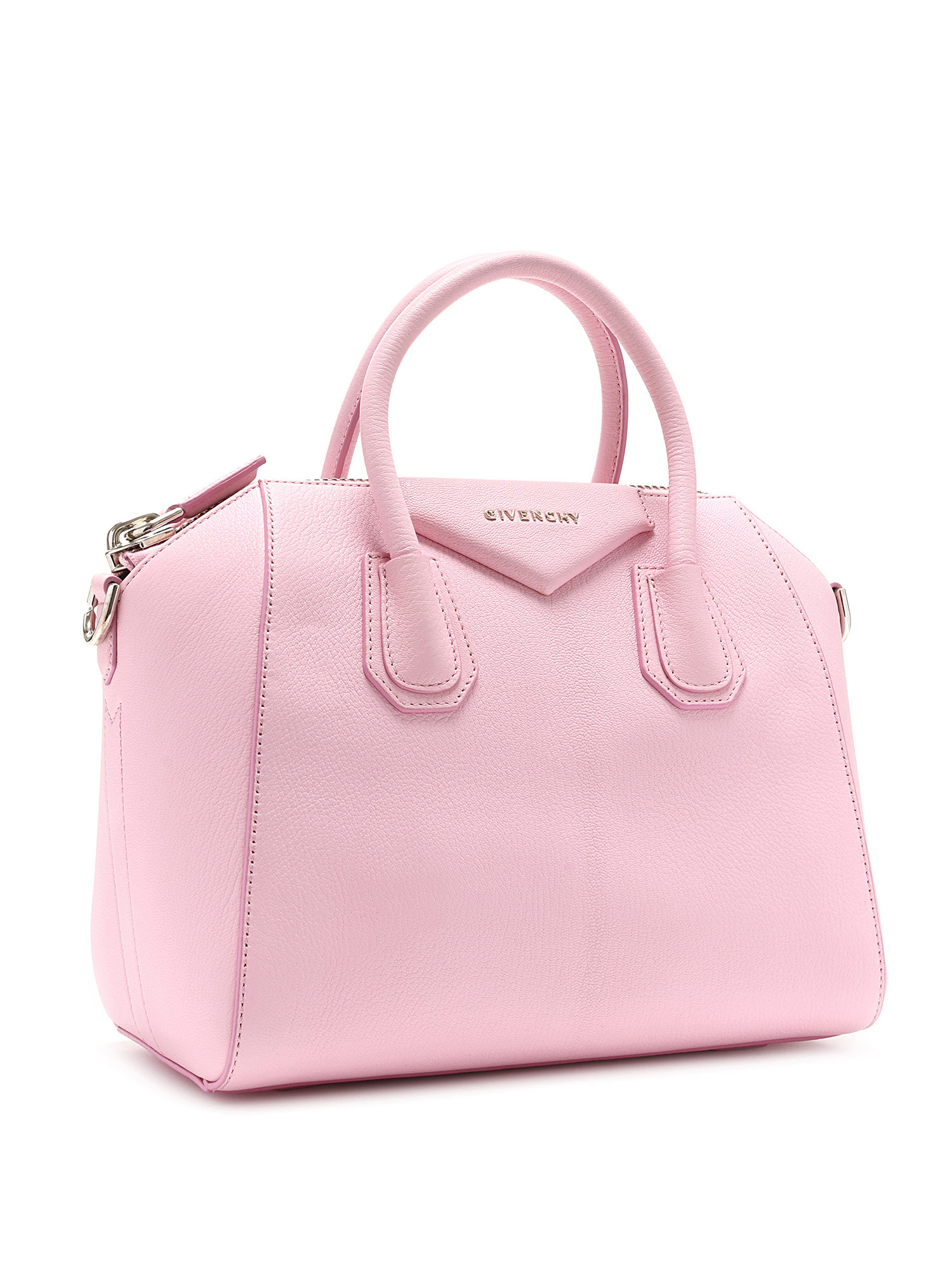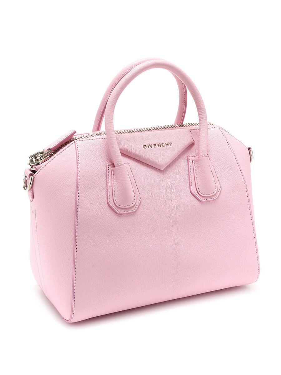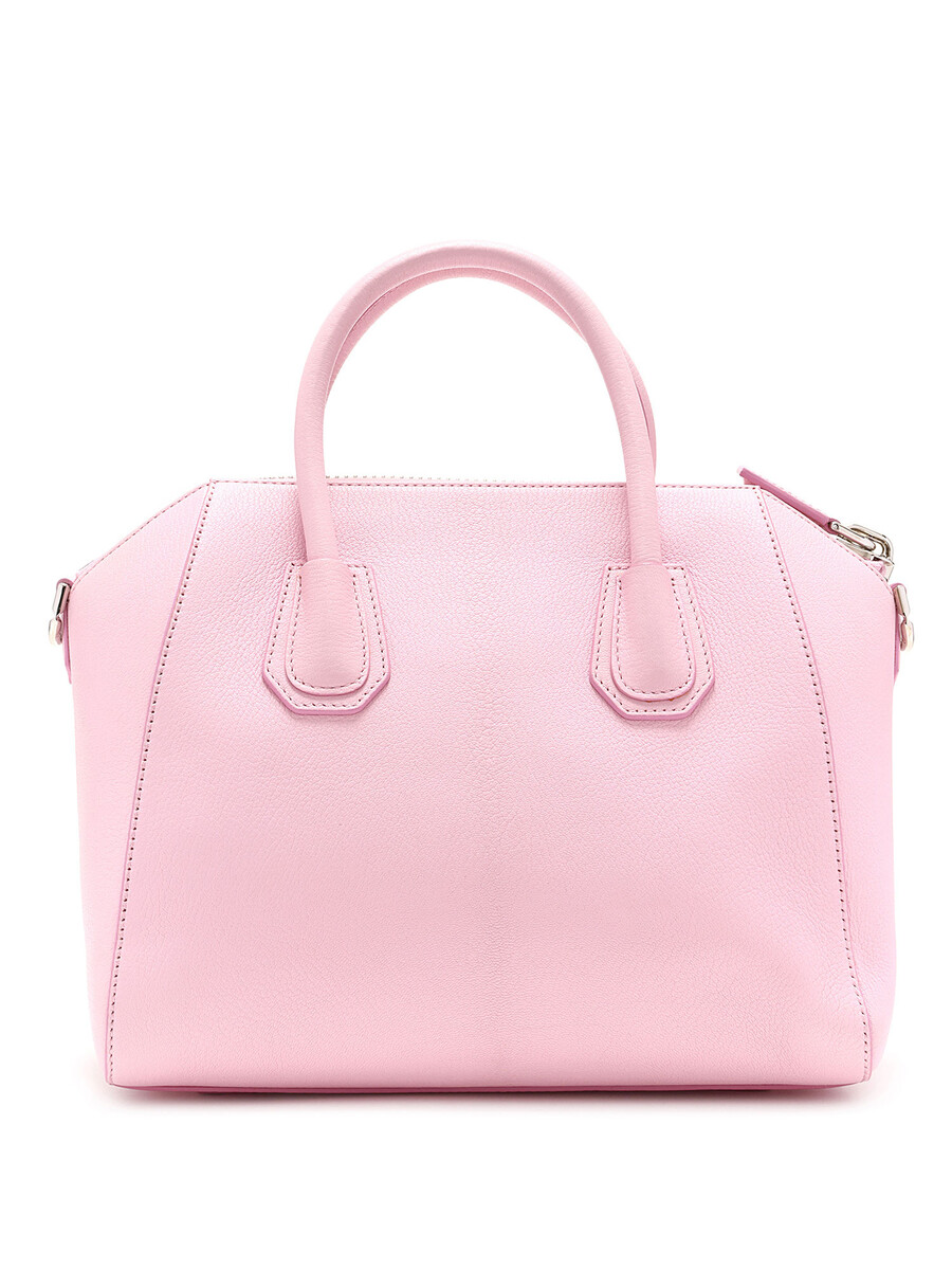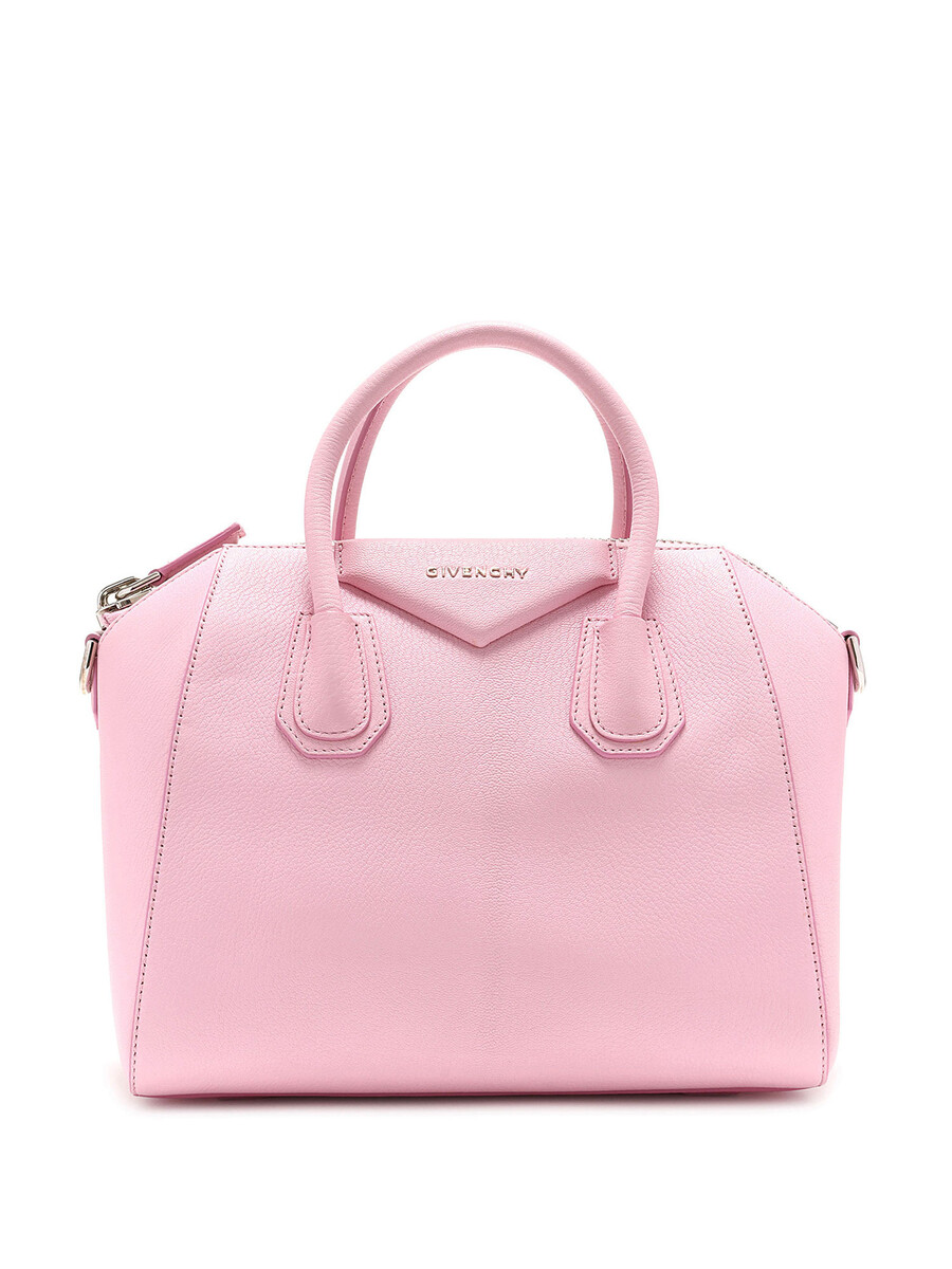 Sac à main en cuir rose vibrant. Logo Givenchy iconique en relief. Fermeture éclair sur le dessus. Compactes poignées au dessus et bandoulière amovible. Ferrures argentées et garnitures en cuir. Fournie avec son dust bag.