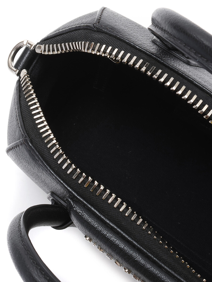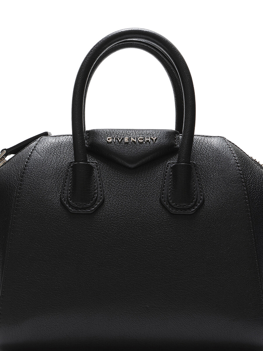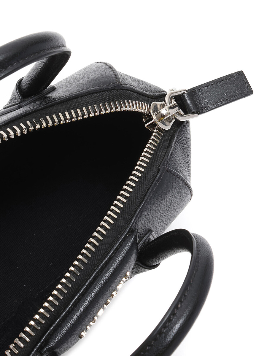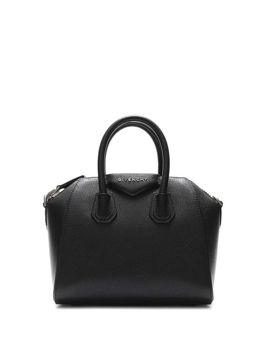 Sac à bandoulière structuré en cuir grainé noir. Fermeture à glissière. Double poignées supérieures et bandoulière ajustable. Ferrures argentées. Avec dust bag.