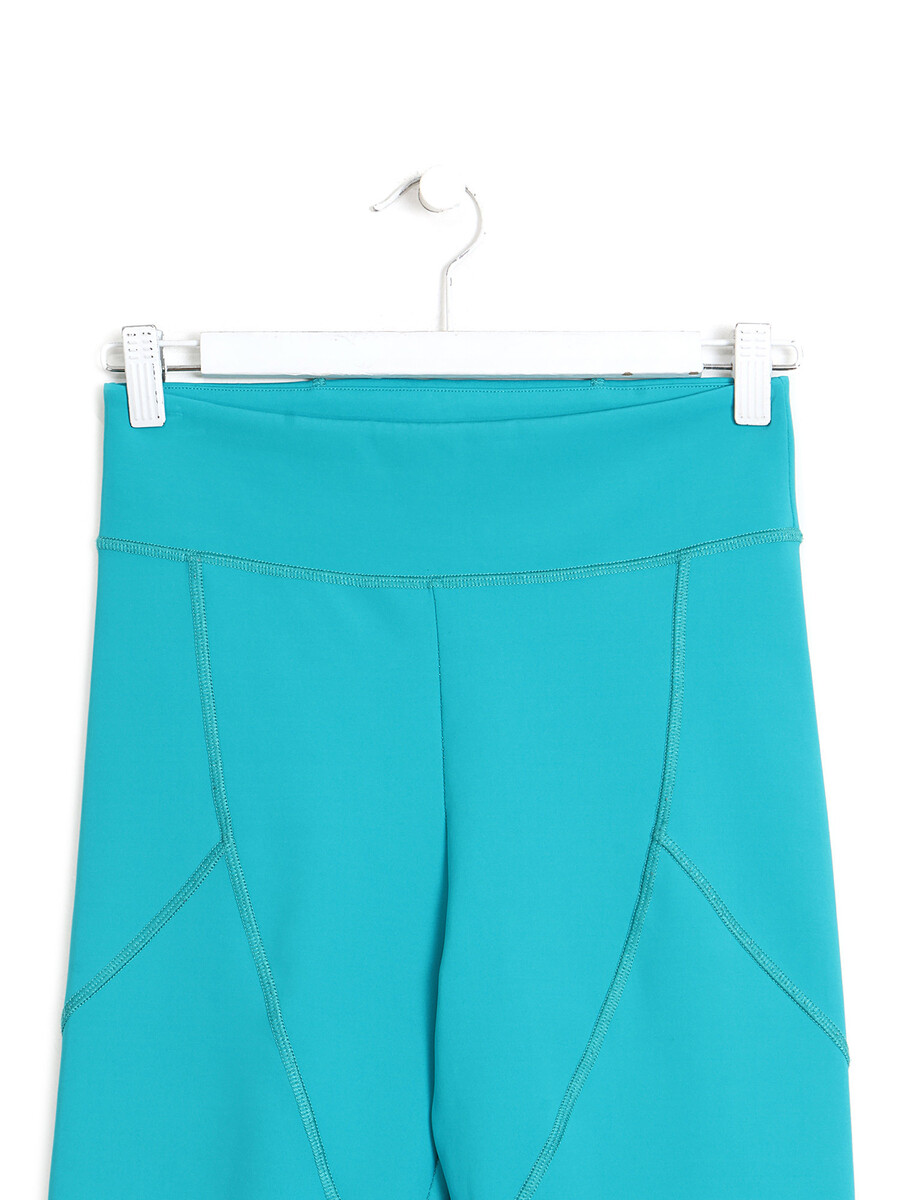 Leggings bleus aqua avec coutures tonales et détails en velours. Logo Fendi Roma sur la poche arrière.