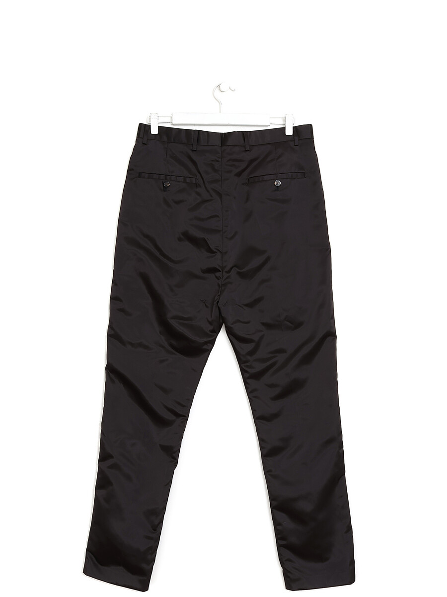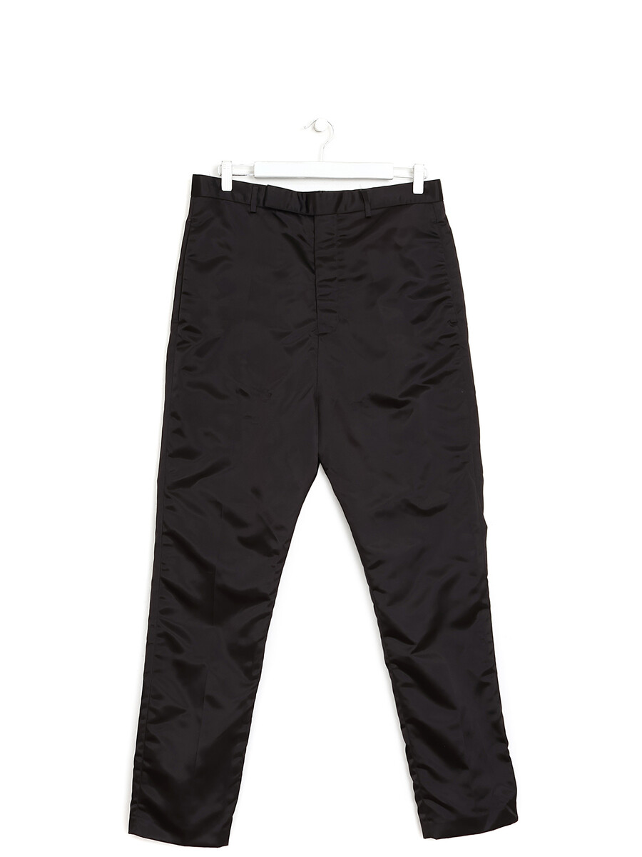 Pantalon en nylon noir avec une coupe jambe ajustée.