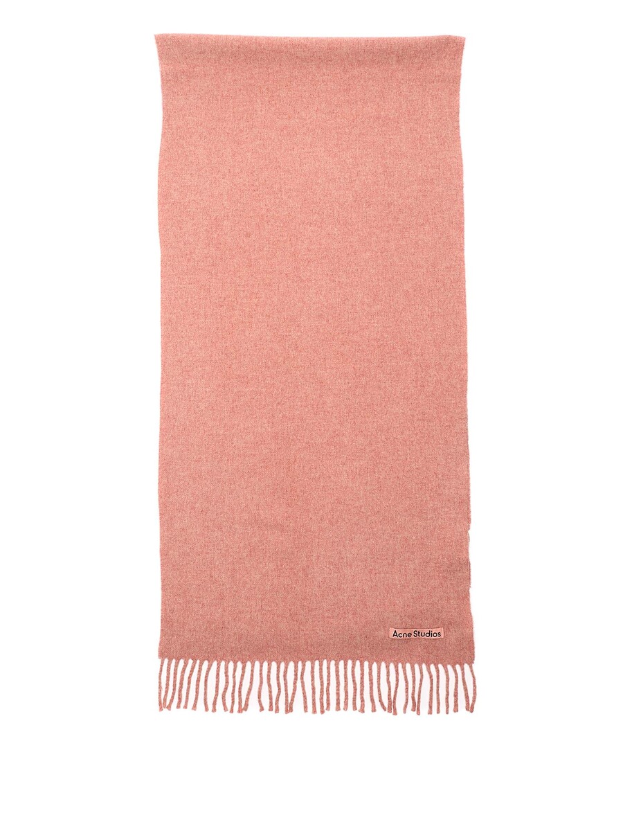 Écharpe douce en pure laine de couleur rose poussiéreux. Finition à franges.