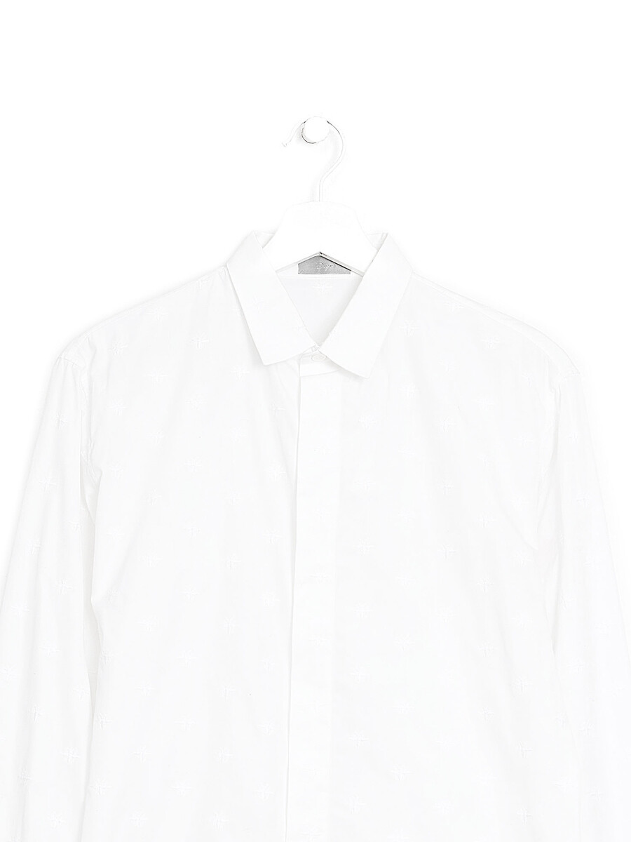 Chemise à manches longues en coton blanc avec motif brodé. Fermeture devant à boutons. Col classique.