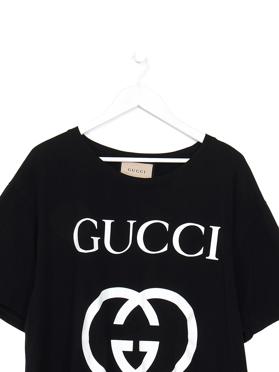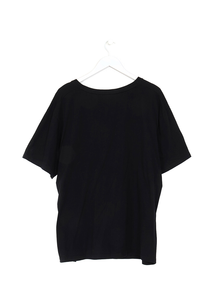 T-shirt noir à manches courtes avec logo imprimé en blanc sur la poitrine. Encolure ronde.