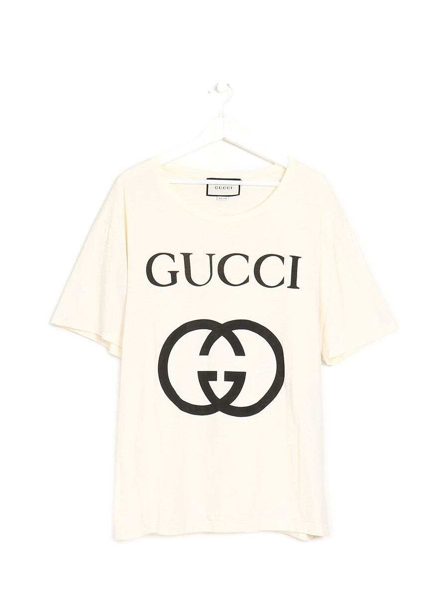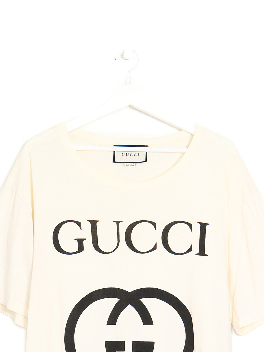 T-shirt à manches courtes blanc cassé avec logo en noir sur la poitrine. Col rond.