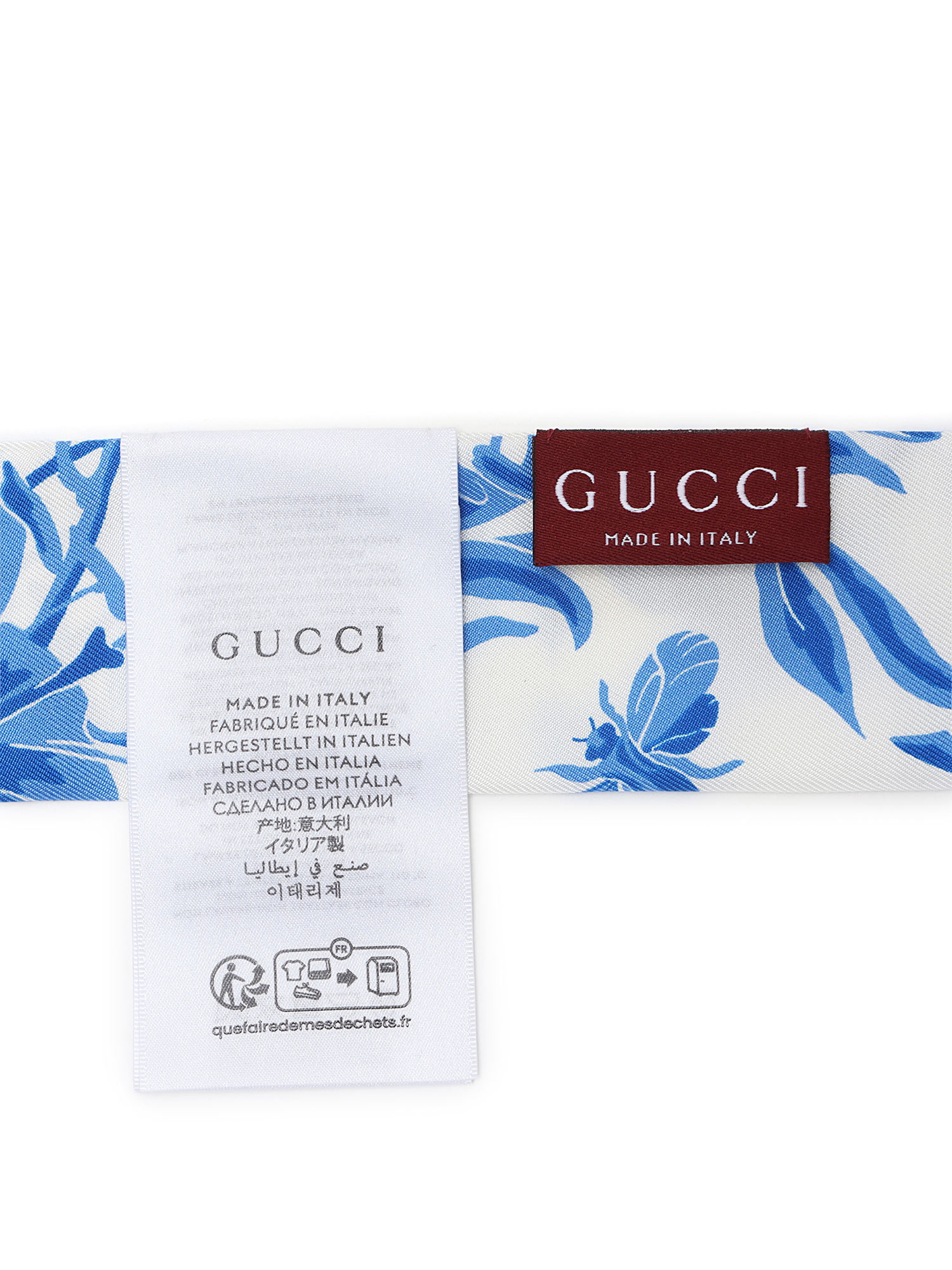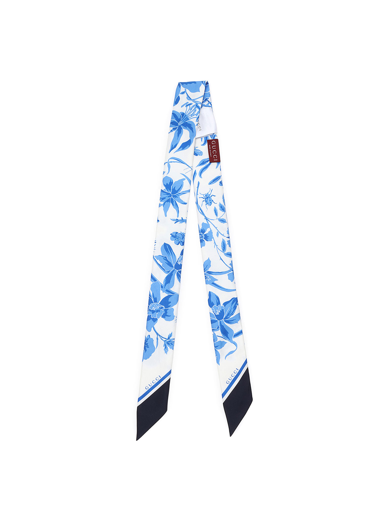 Twilly en soie à motif floral bleu et blanc. Avec boîte.