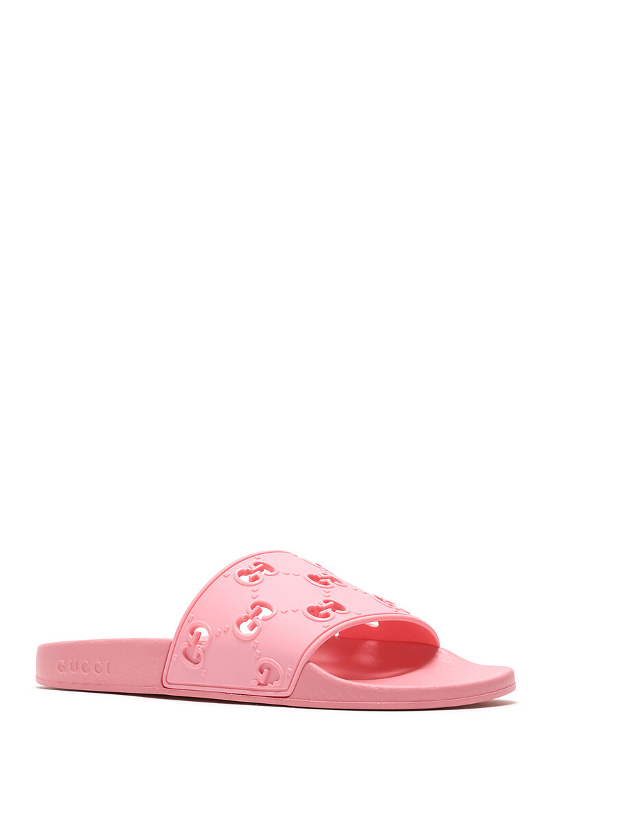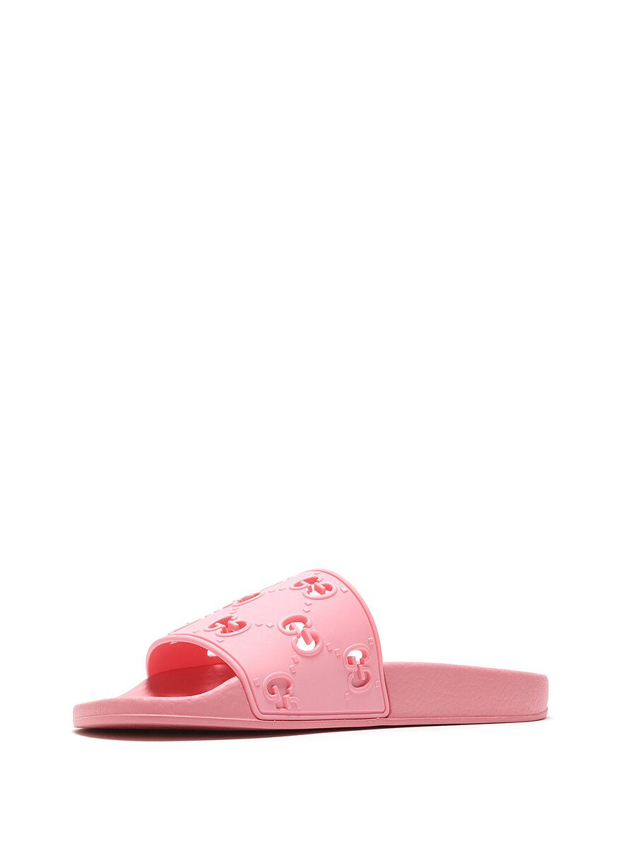 Sandales en caoutchouc roses à enfiler avec logo en relief. Bout ouvert. Semelle en caoutchouc. Avec boîte.