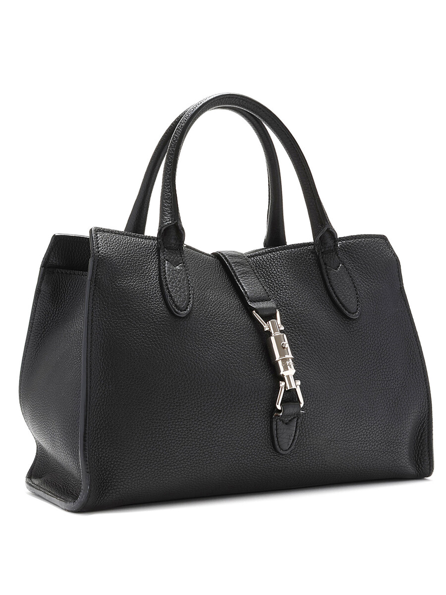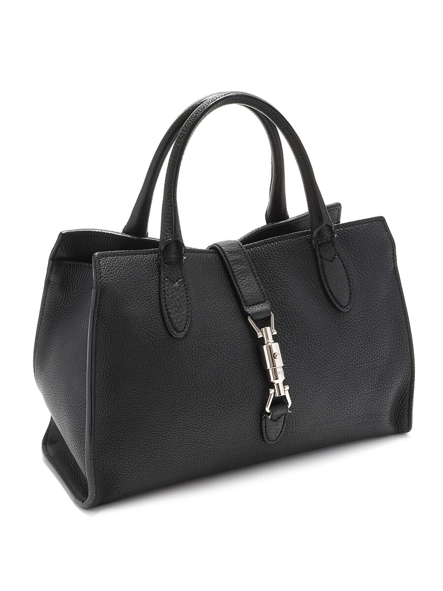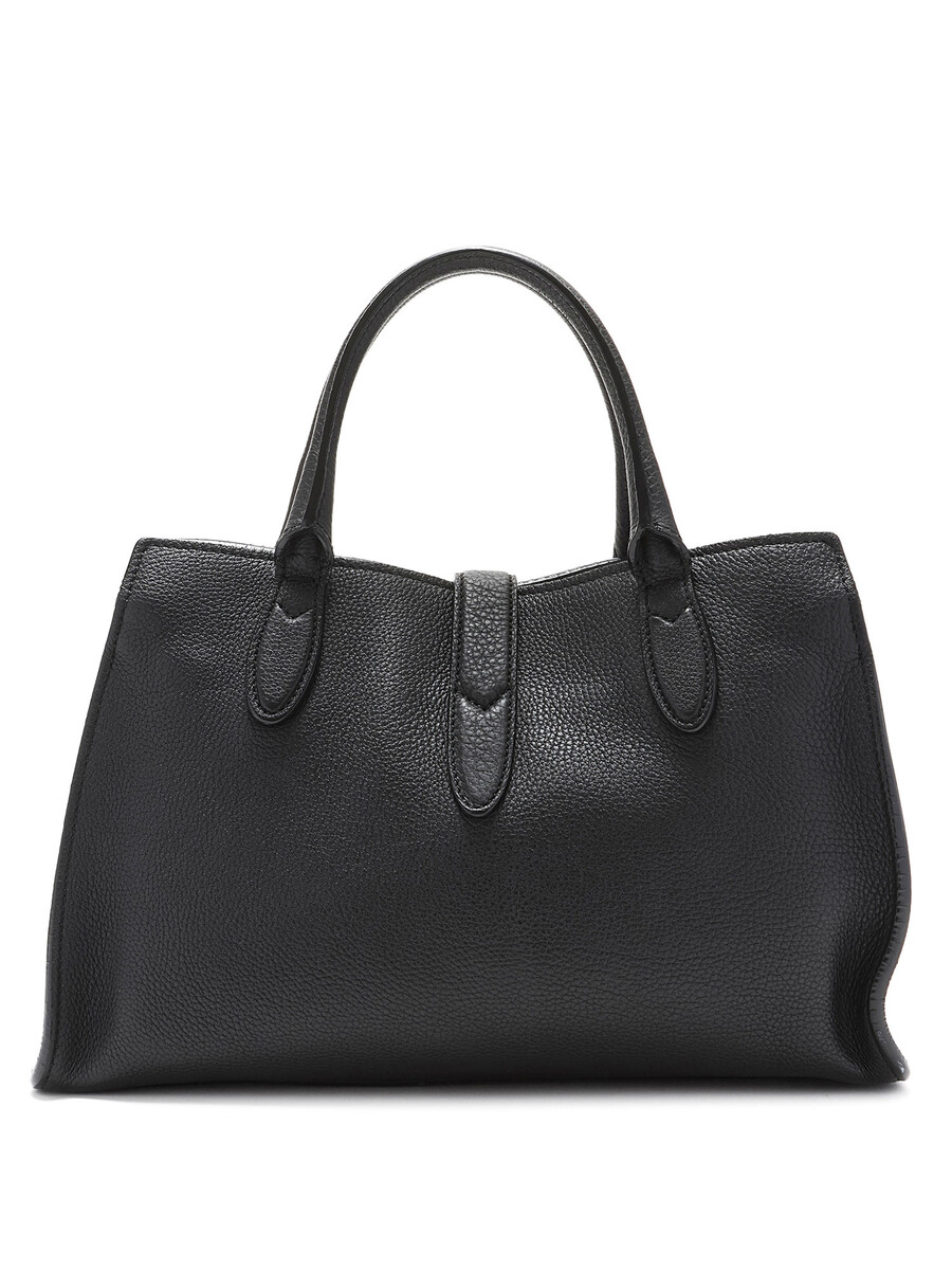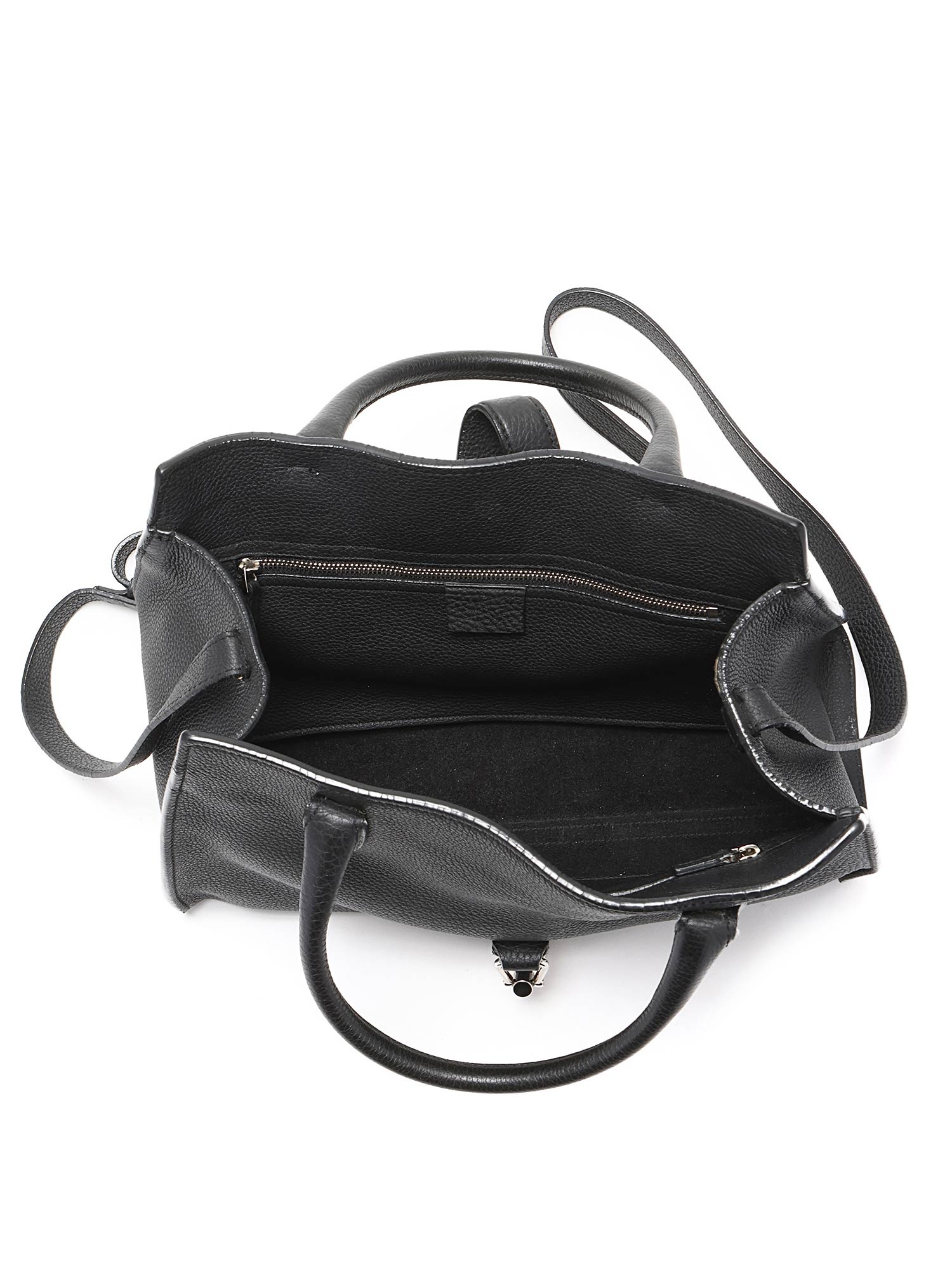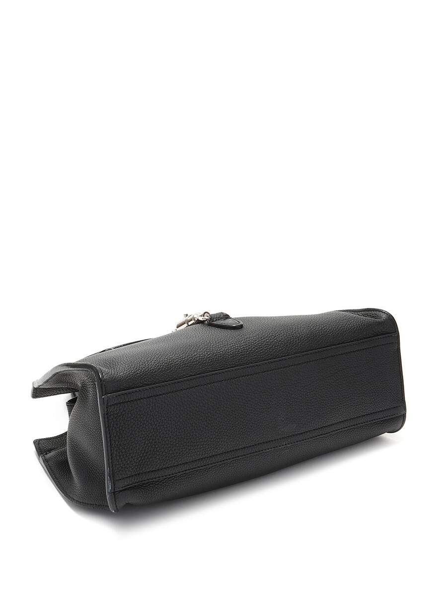 Sac à main en cuir grainé noir. Fermeture à glissière supérieure. Deux poignées supérieures en cuir roulé. Bandoulière amovible en cuir. Finitions en cuir noir. Quincaillerie argentée.