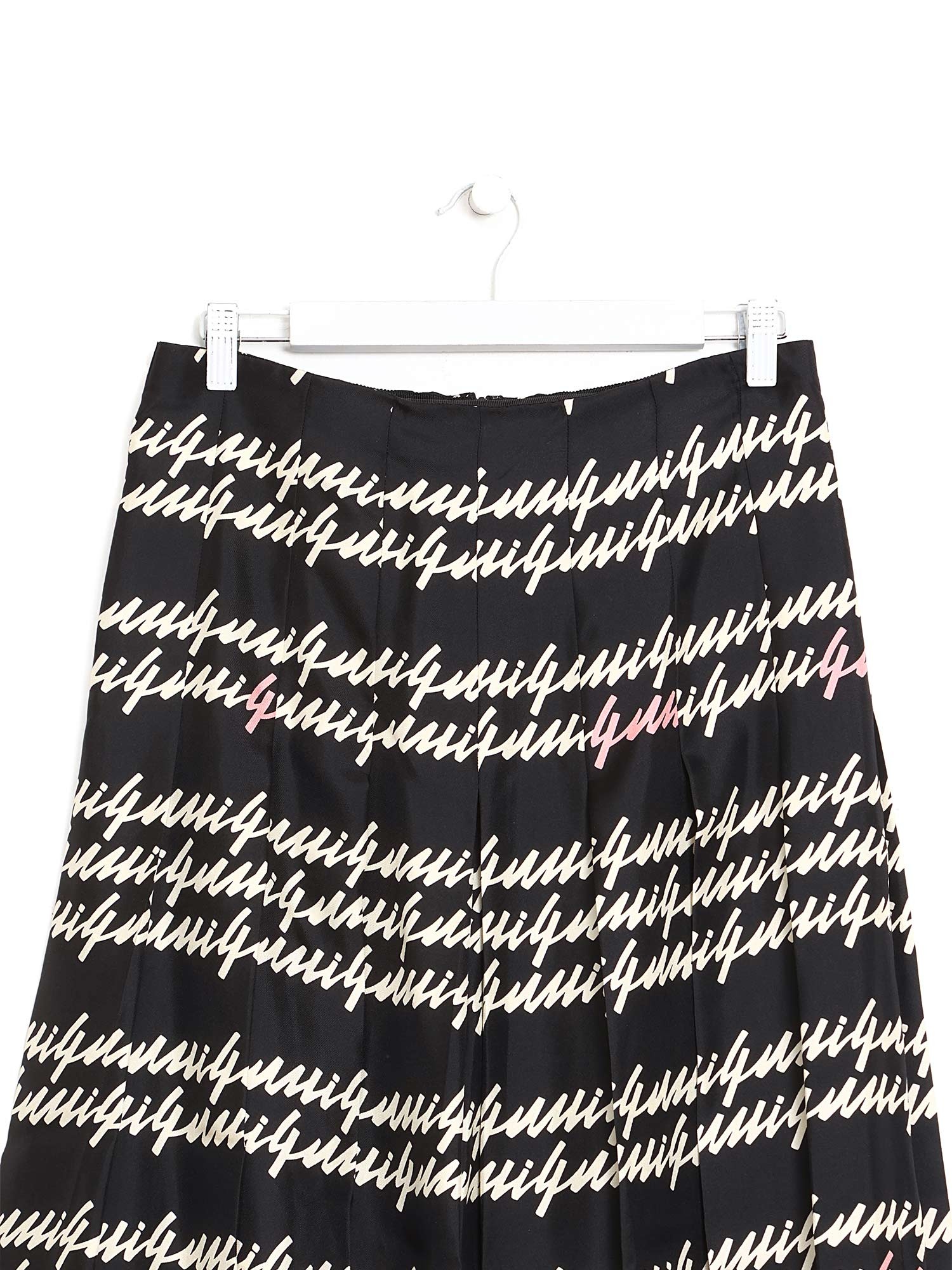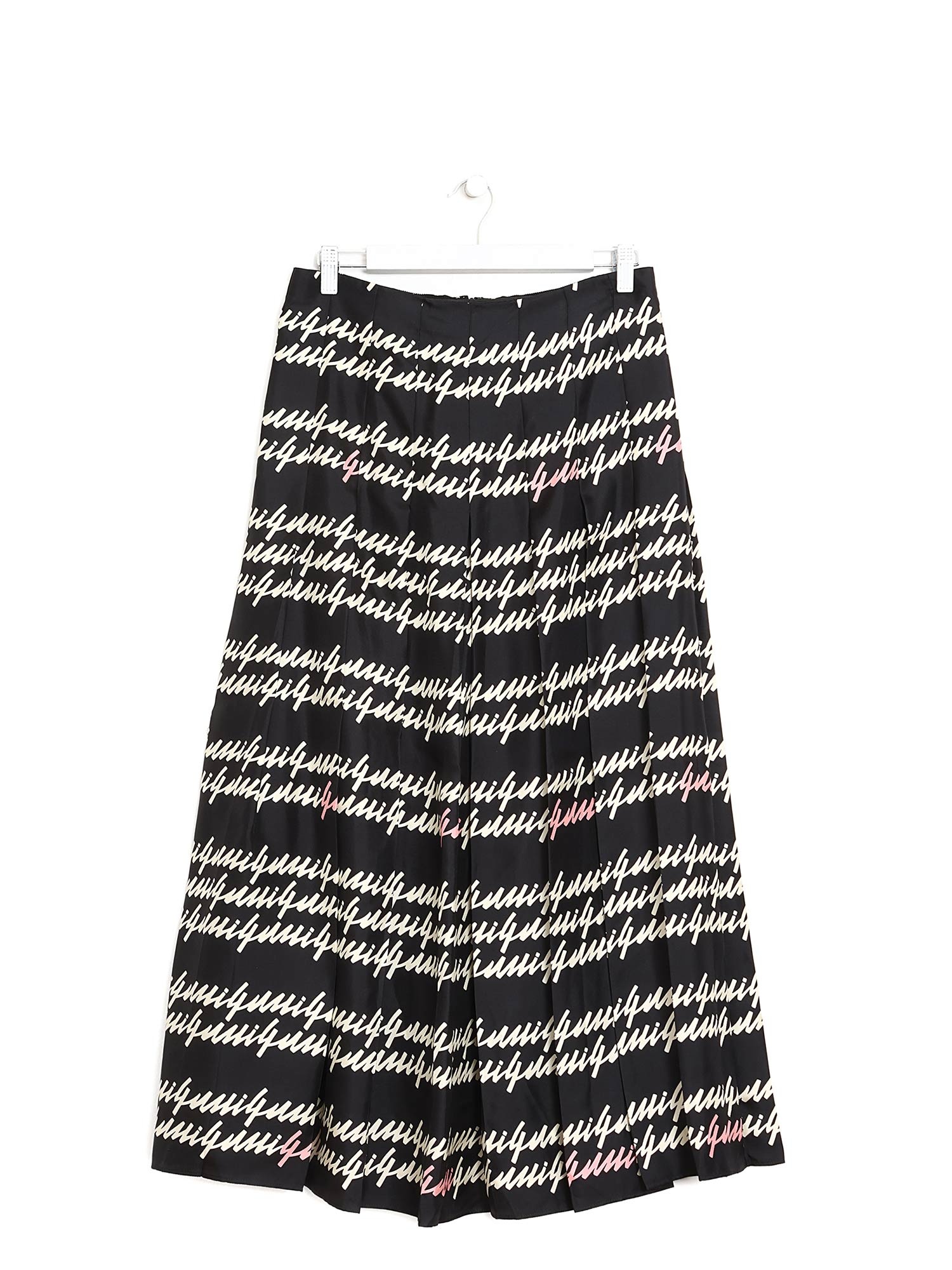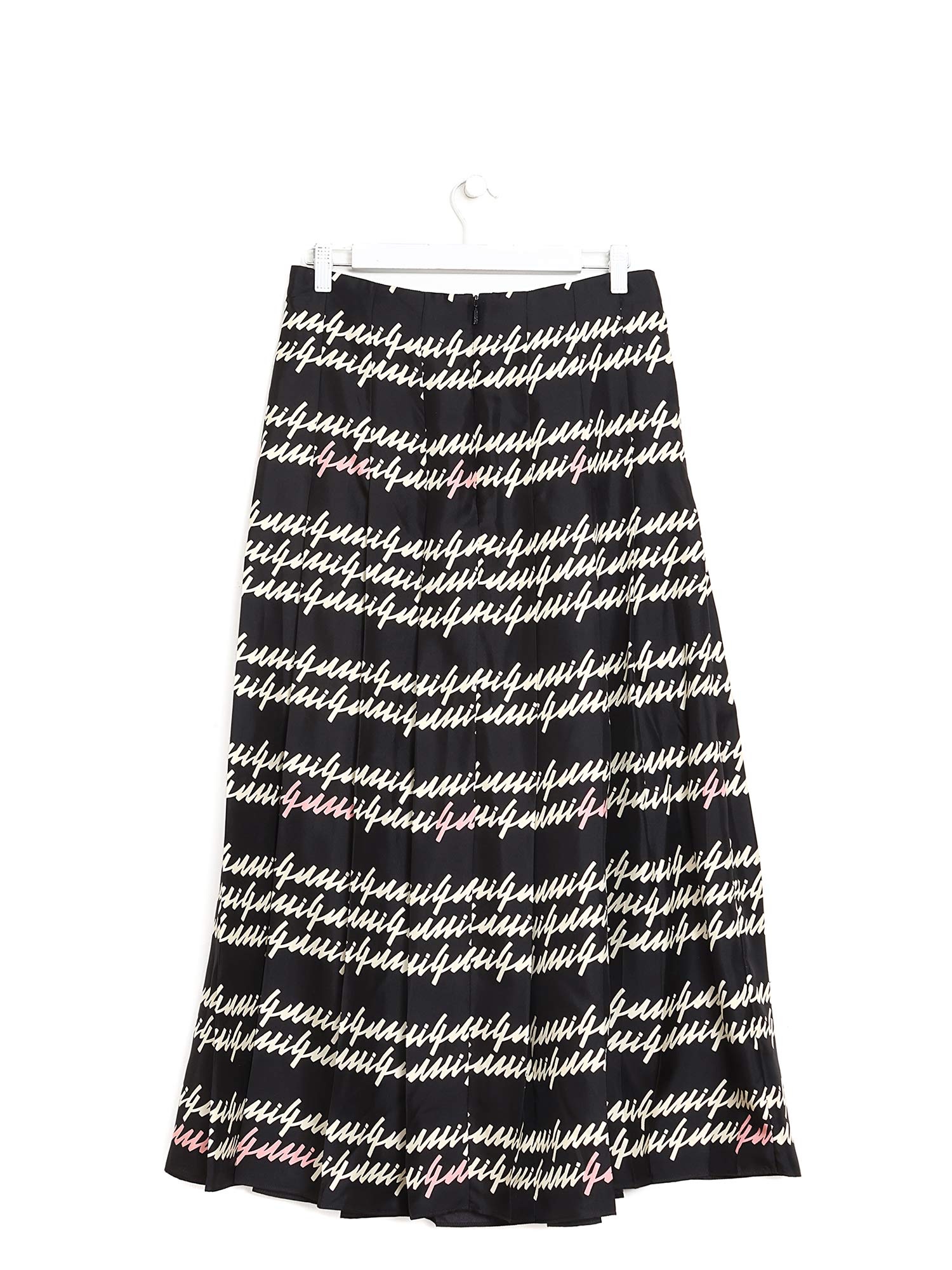 Jupe midi noire avec un imprimé graphique abstrait en blanc.