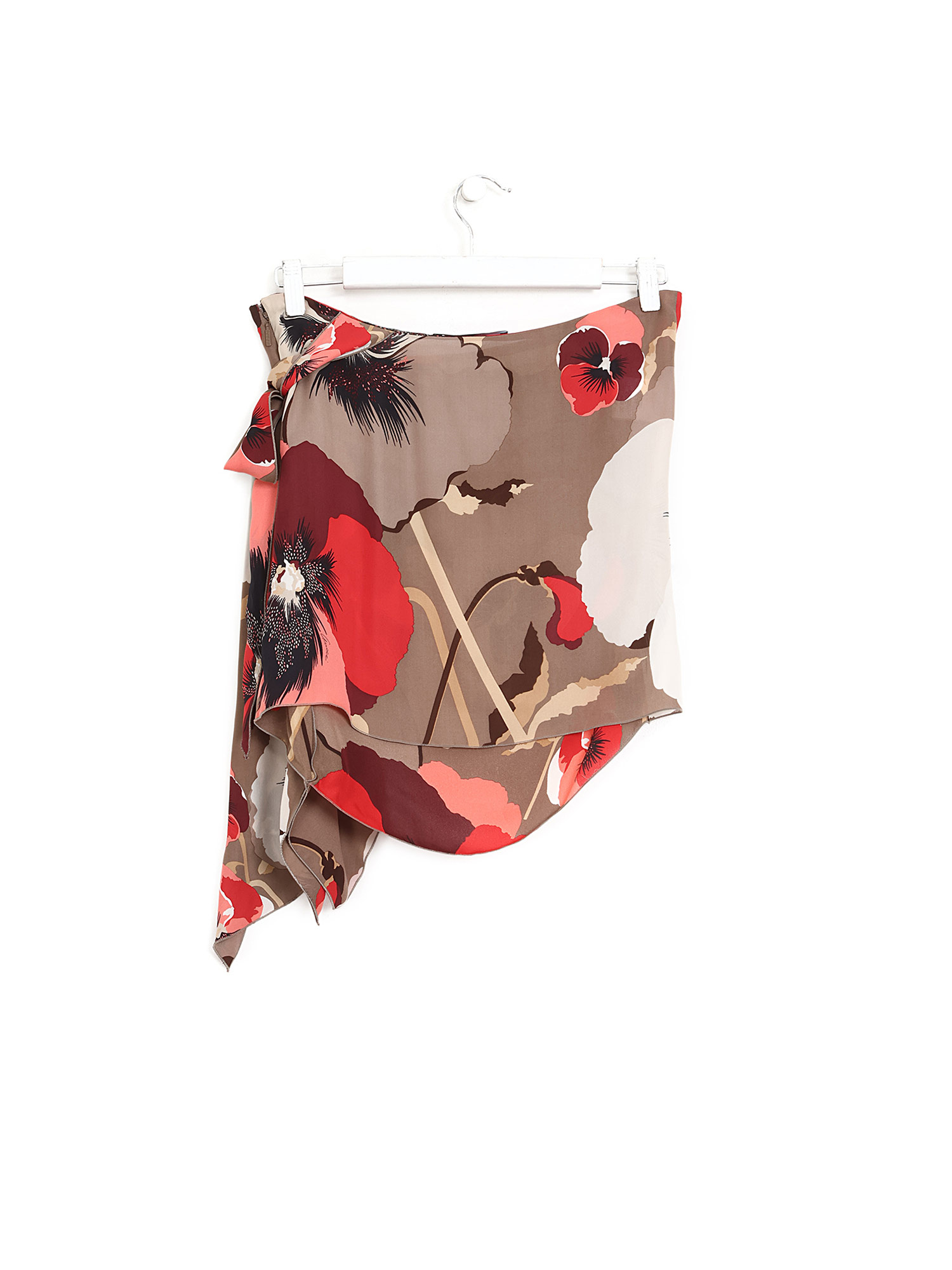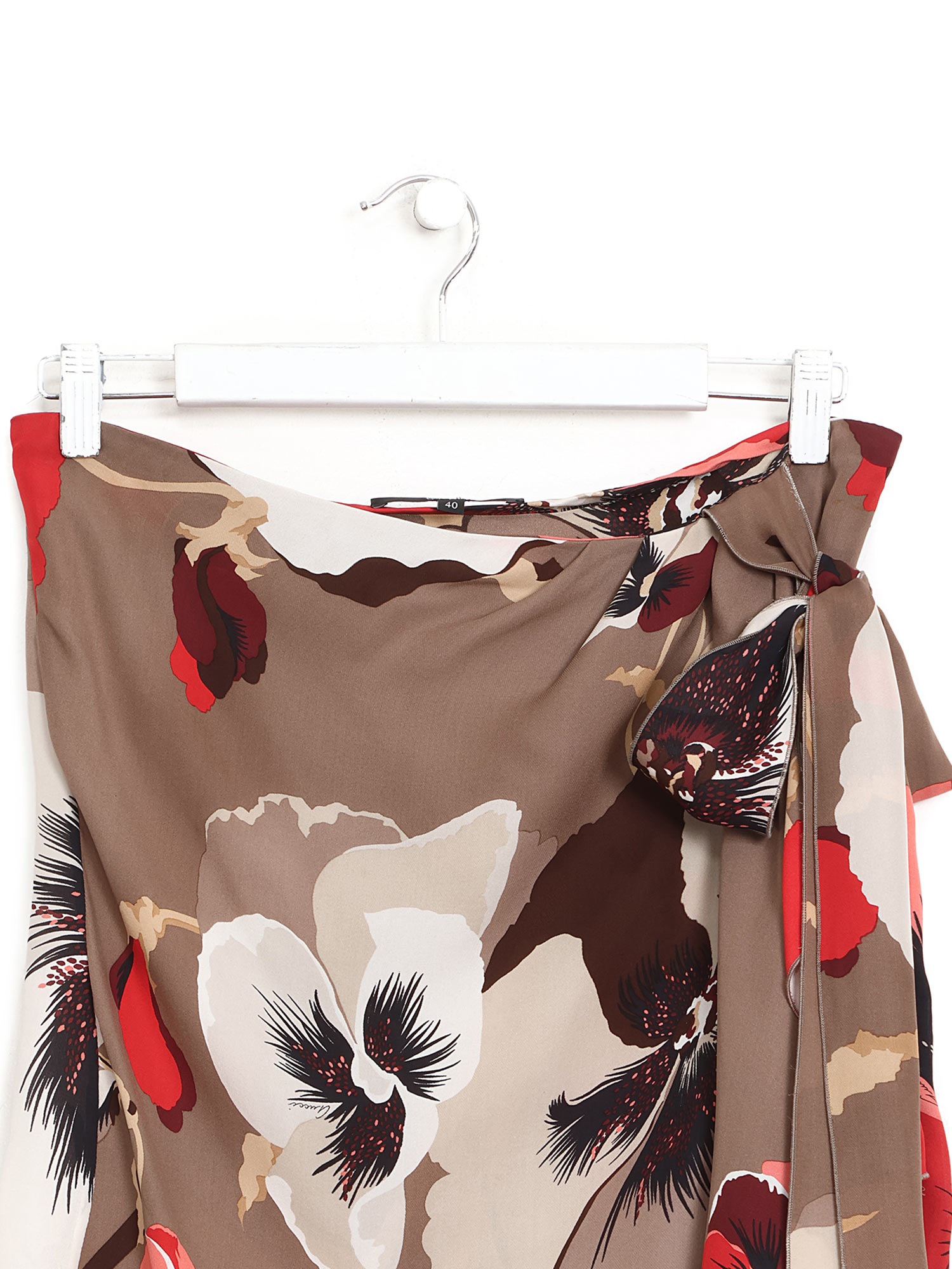 Haut sans bretelles à motif floral en soie avec bande à nouer. Fermeture à glissière au dos.