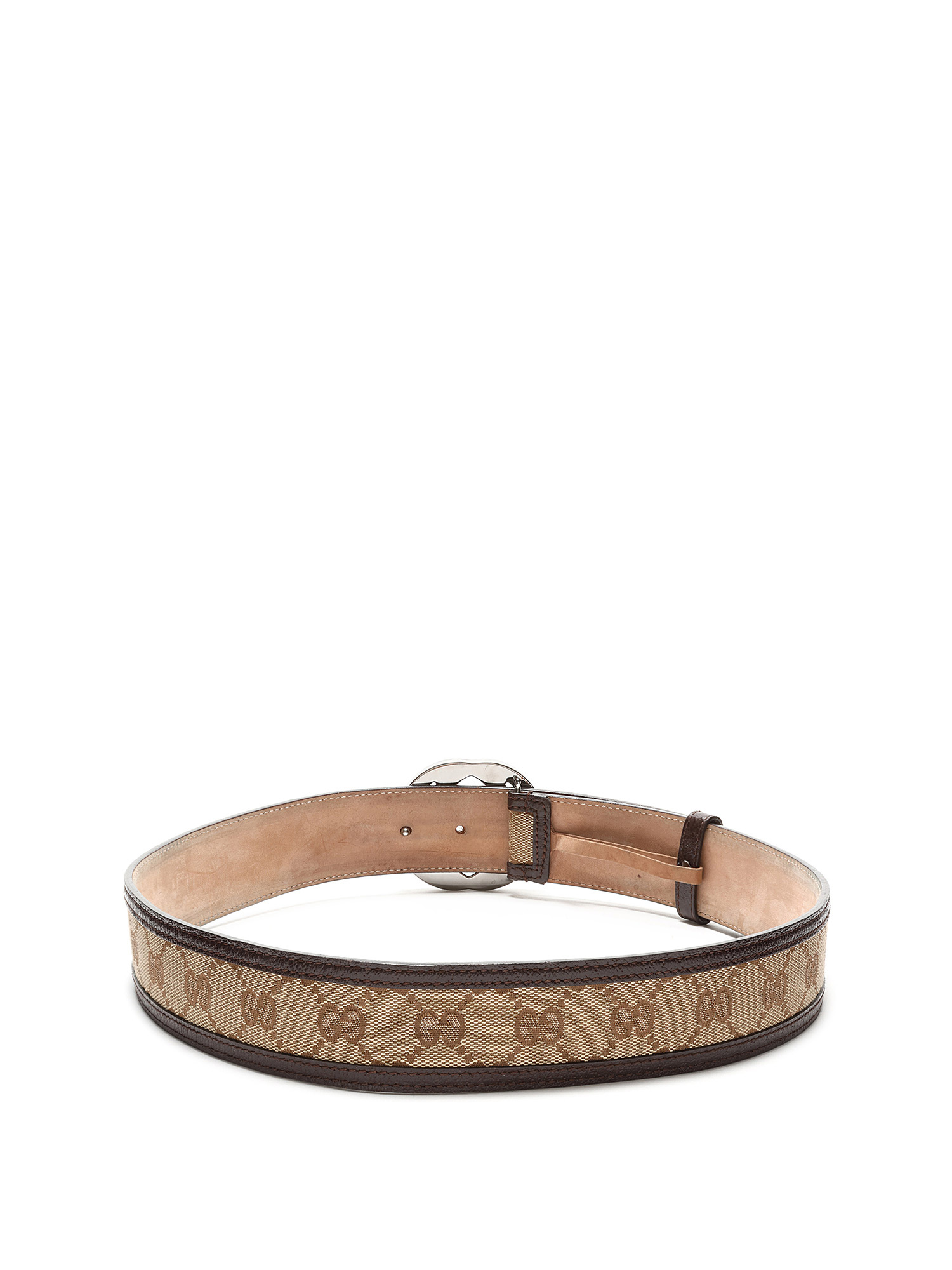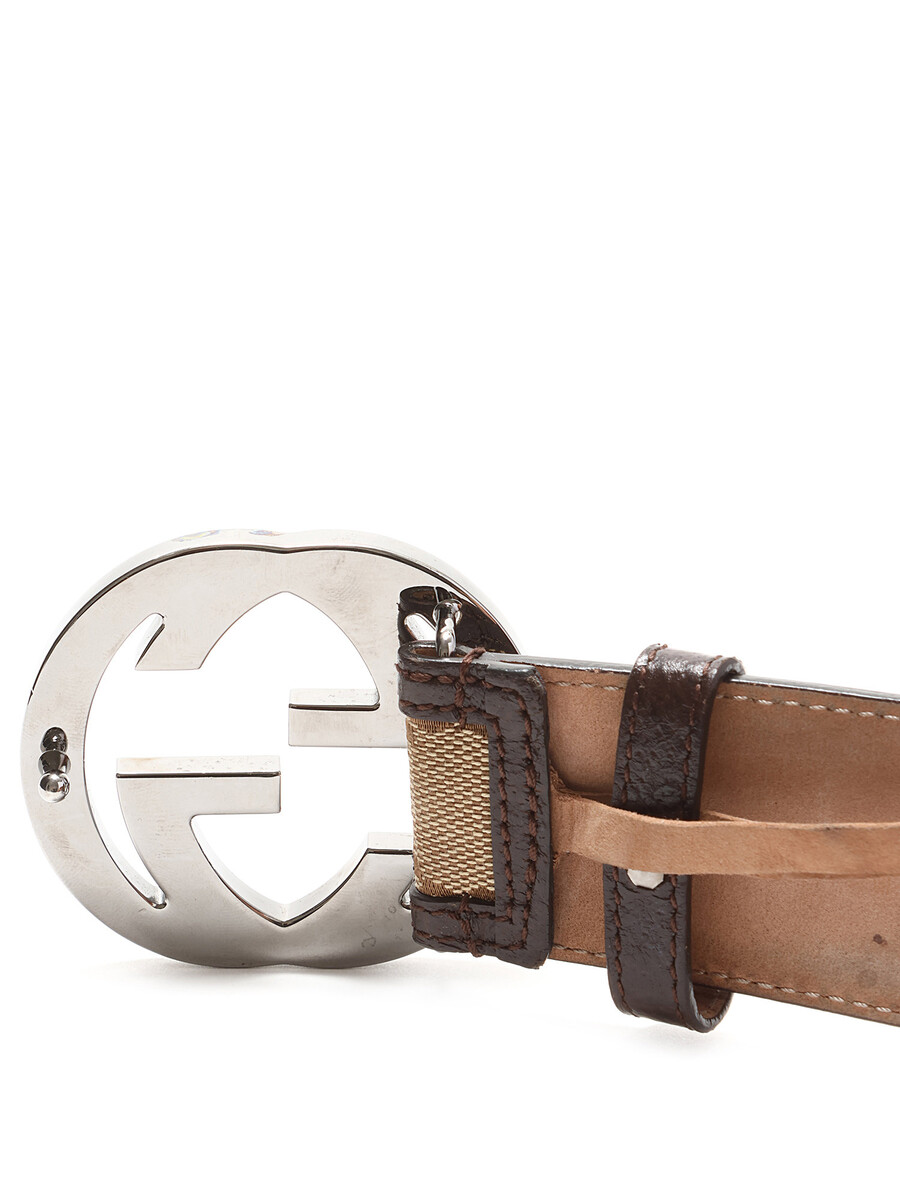 Ceinture emblématique en toile GG Supreme brune avec boucle Double G argentée. Détails en cuir.