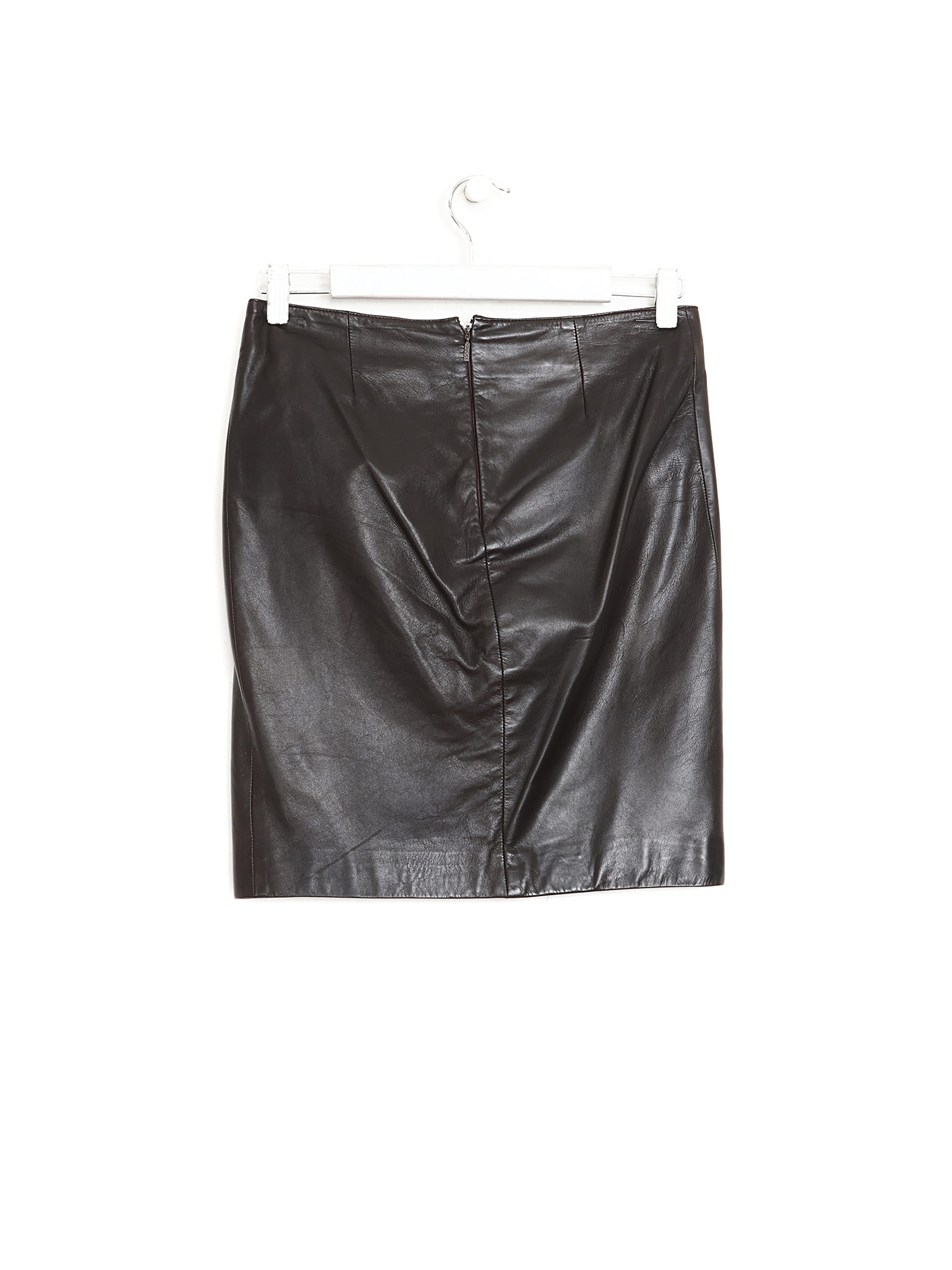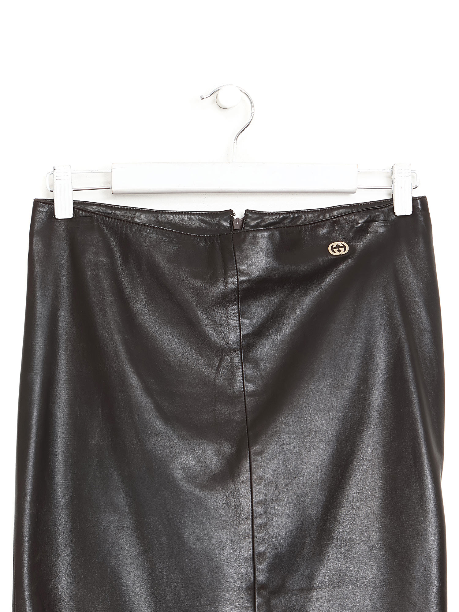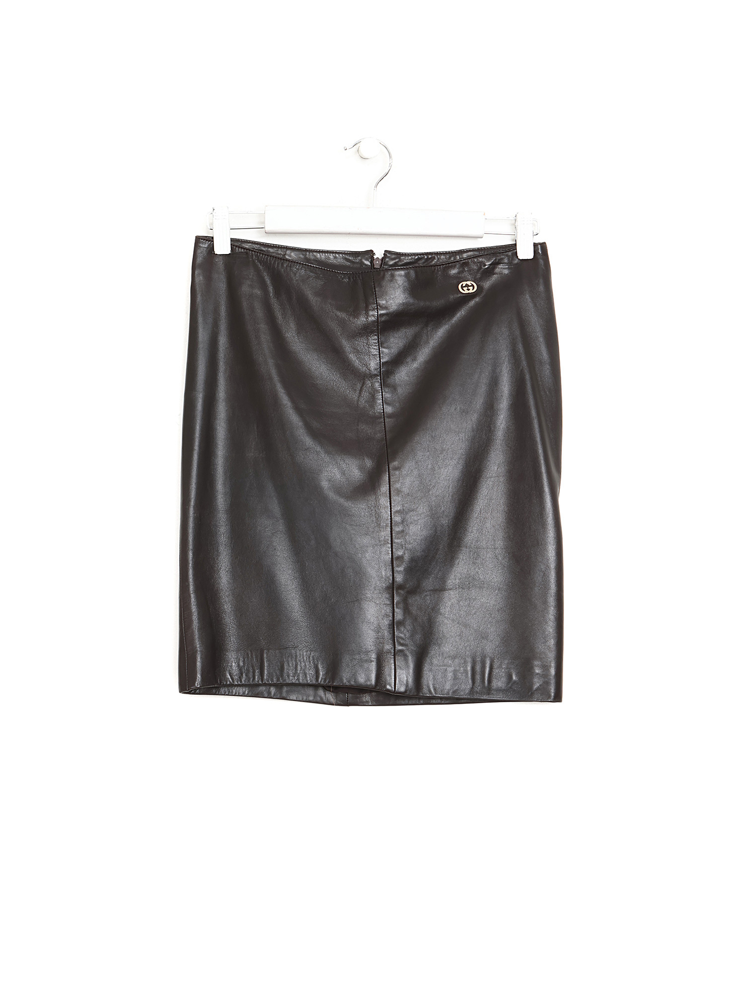 Jupe en cuir d'agneau noir avec plaque à logo.