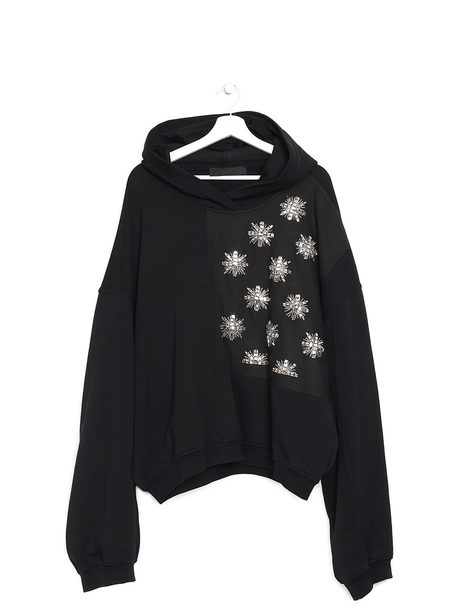 Chandail noir à manches longues avec broderies perlées en motif de flocons de neige. Coupe décontractée.