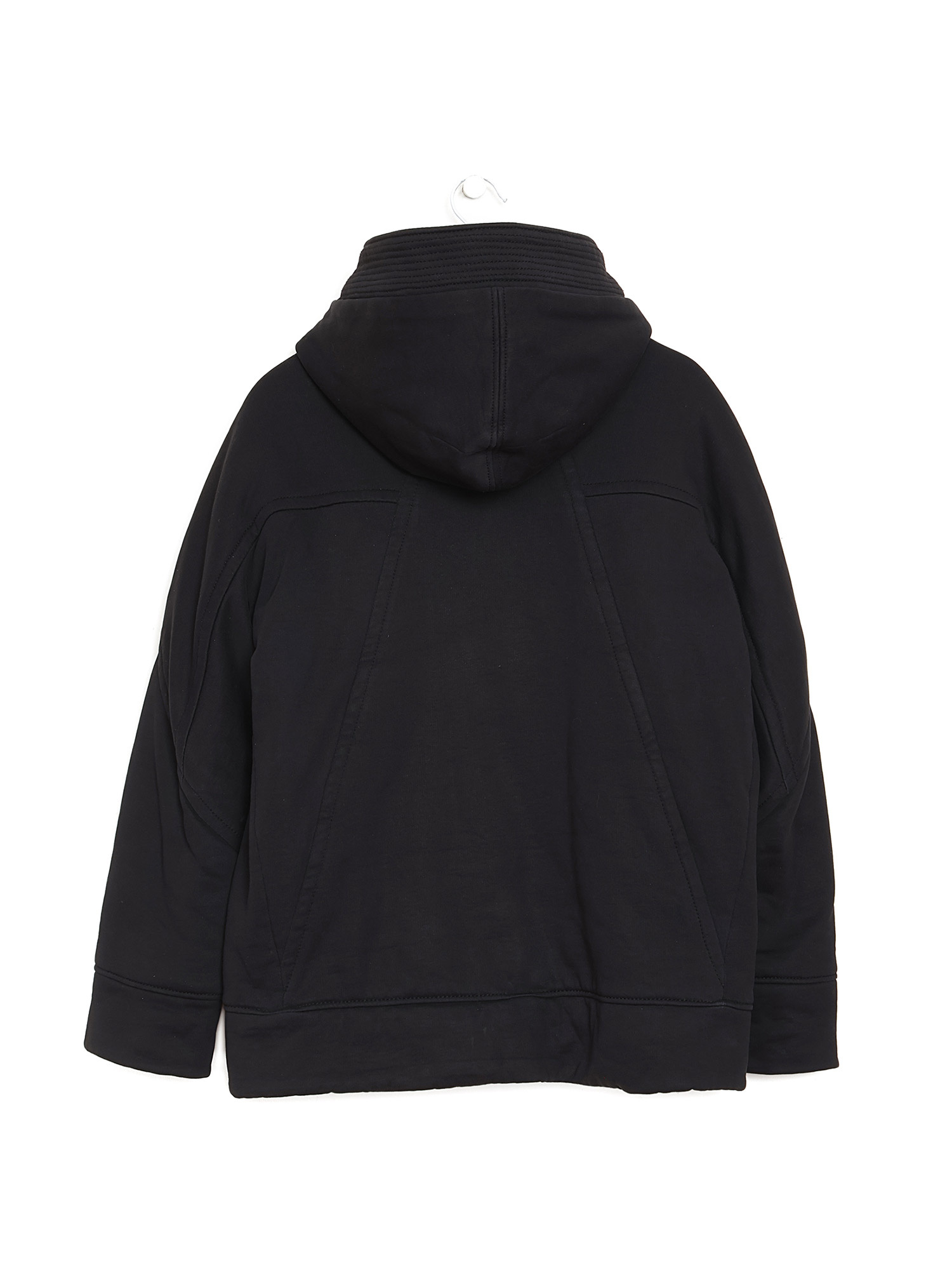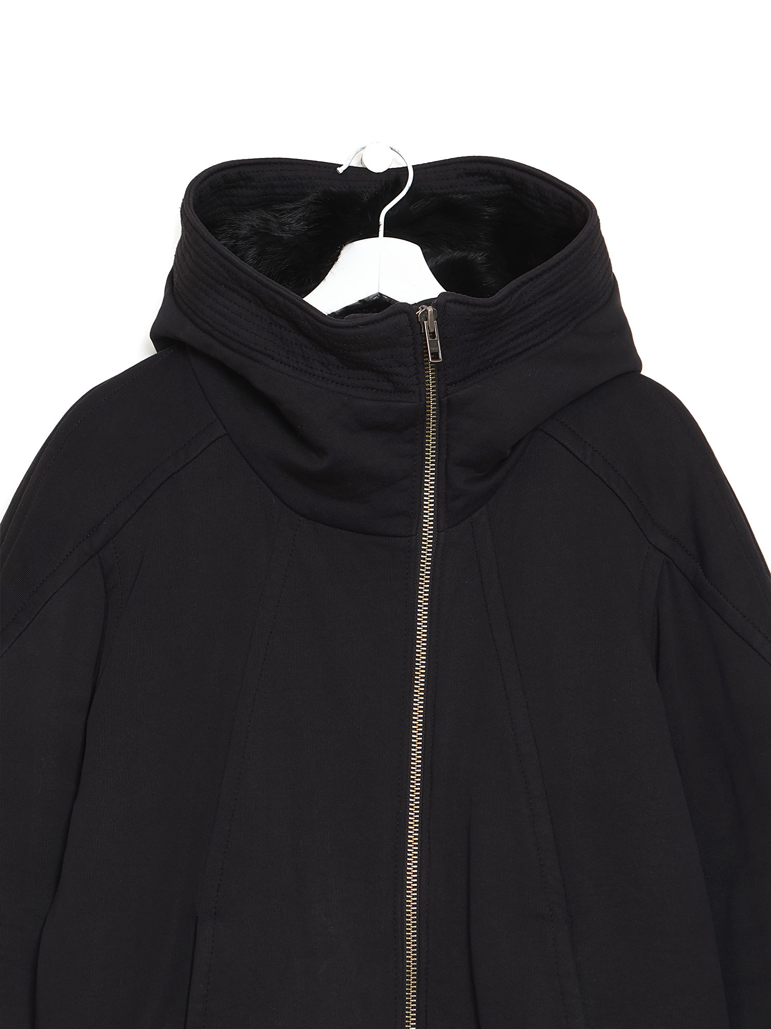 Veste à capuche en coton avec fermeture éclair à l'avant et col montant. Poches à rabat à l'avant. Garniture en fourrure de lapin.