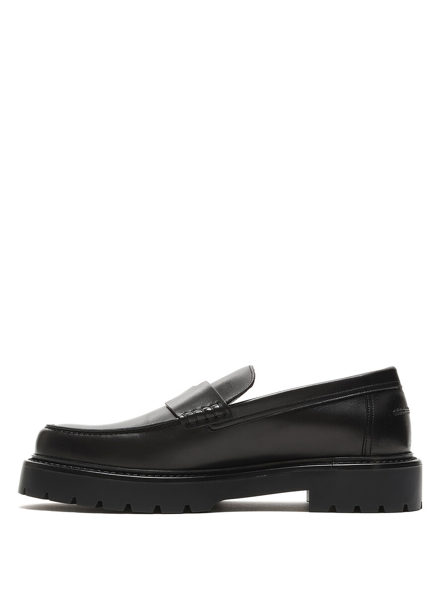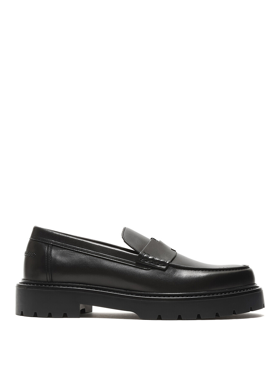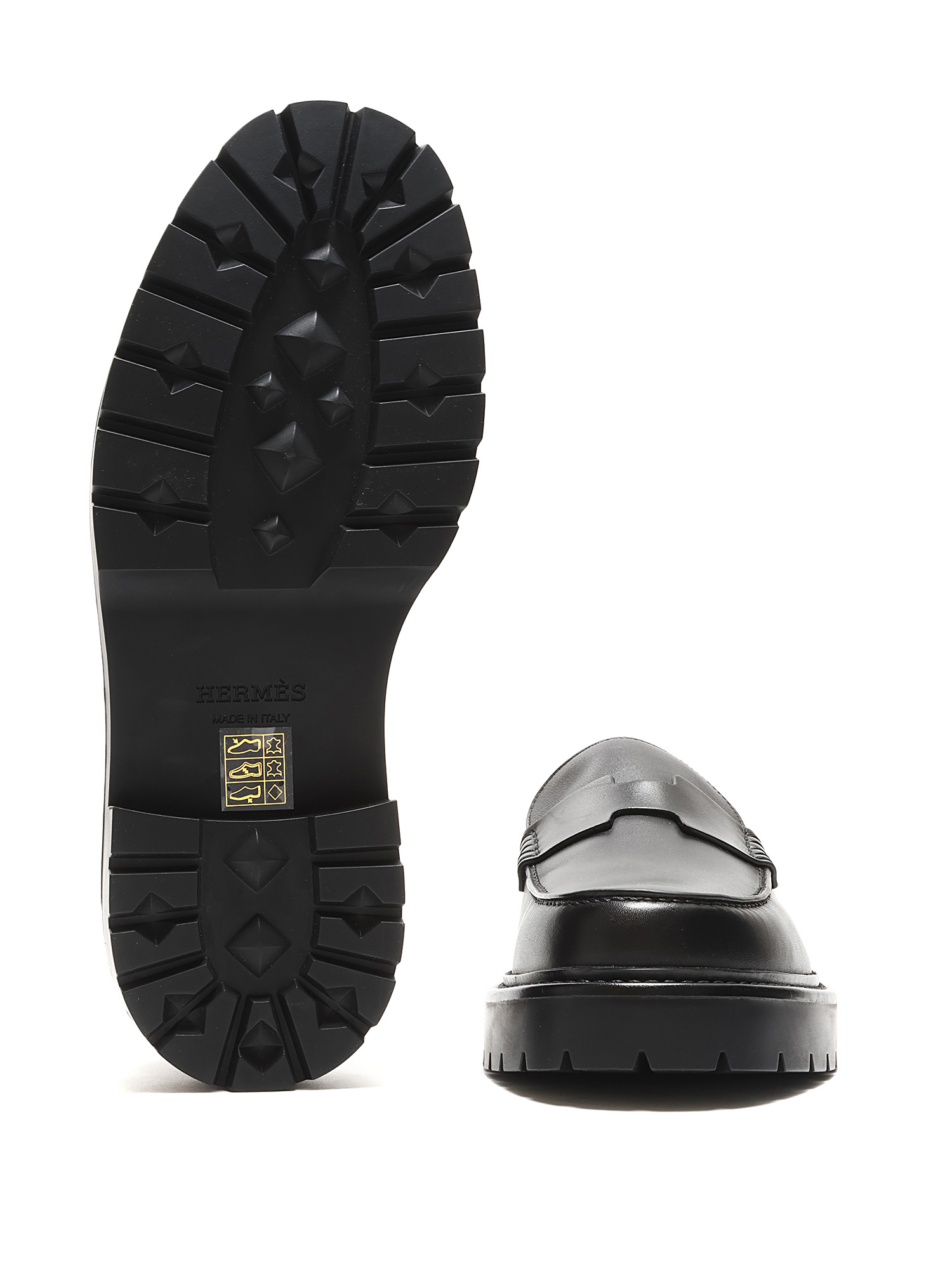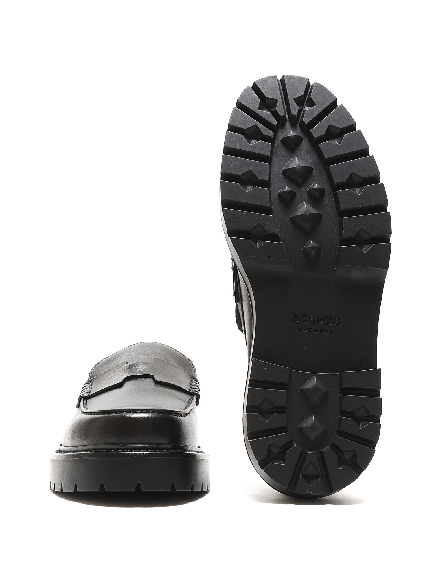 Mocassins en cuir noirs avec l'emblématique 'H' sur le cou-de-pied. Style à enfiler avec bout rond fermé. Semelle crantée en caoutchouc pour une meilleure adhérence. Livrés avec boîte.