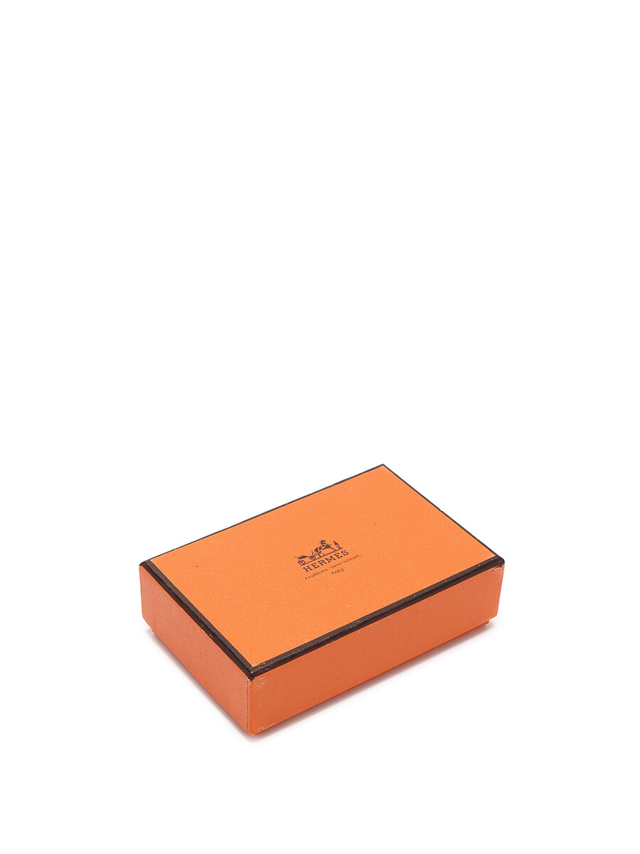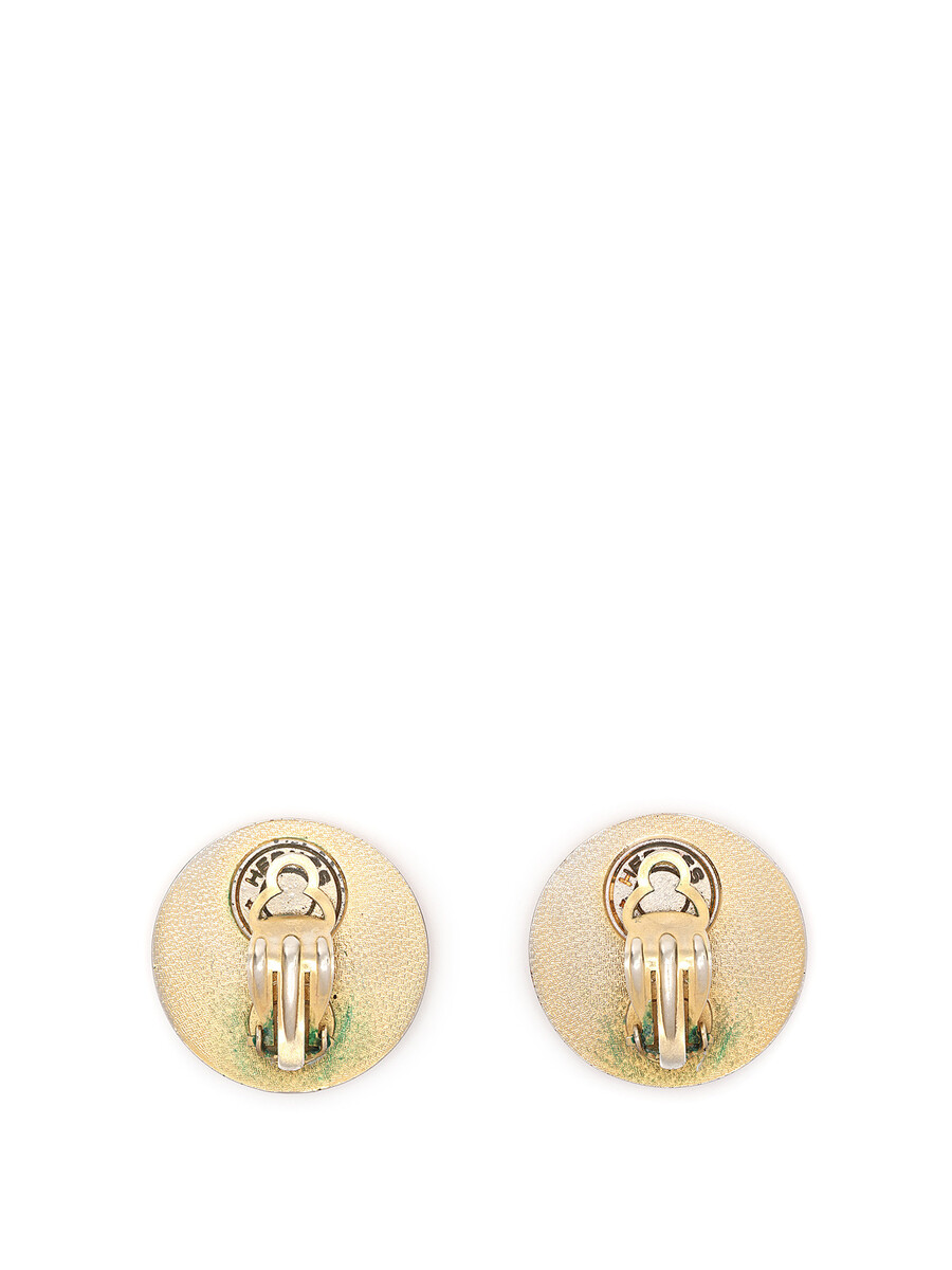 Boucles d'oreilles à clip en cuir rouge et métal doré, arborant le logo Hermès Paris.