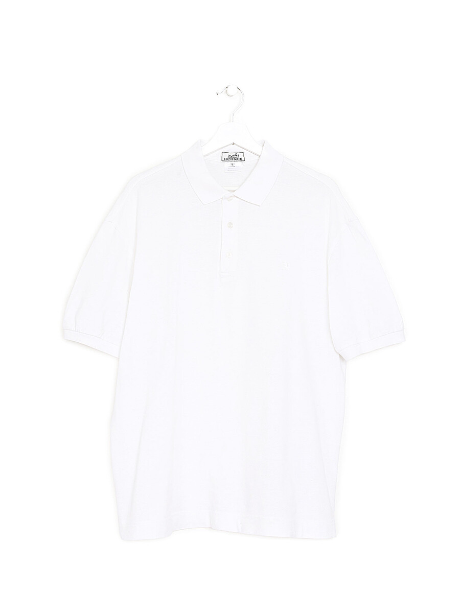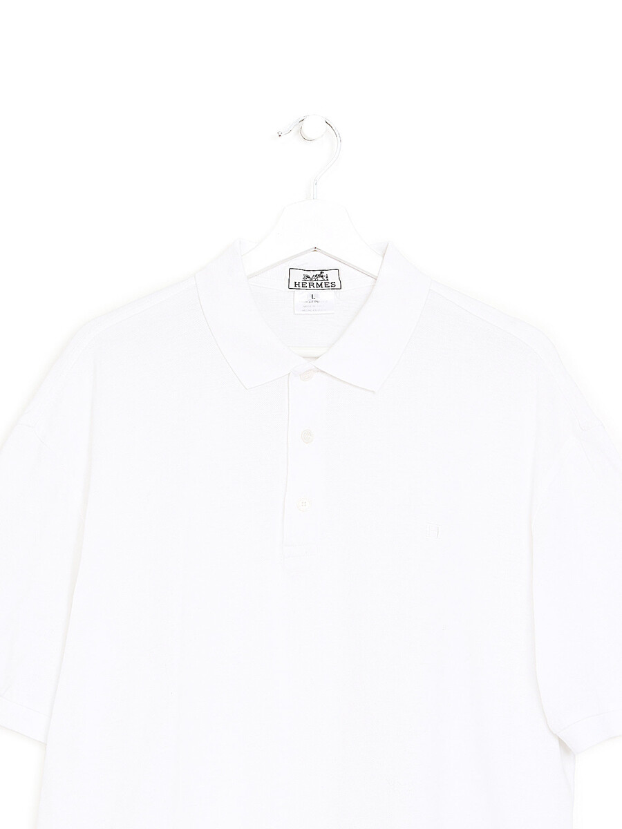 Polo à manches courtes en blanc avec col chemise et patte de boutonnage.