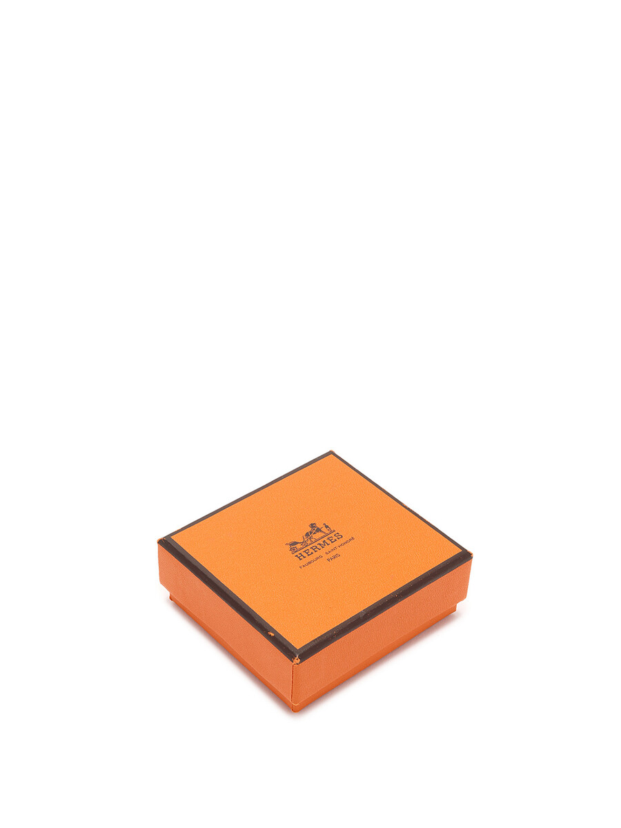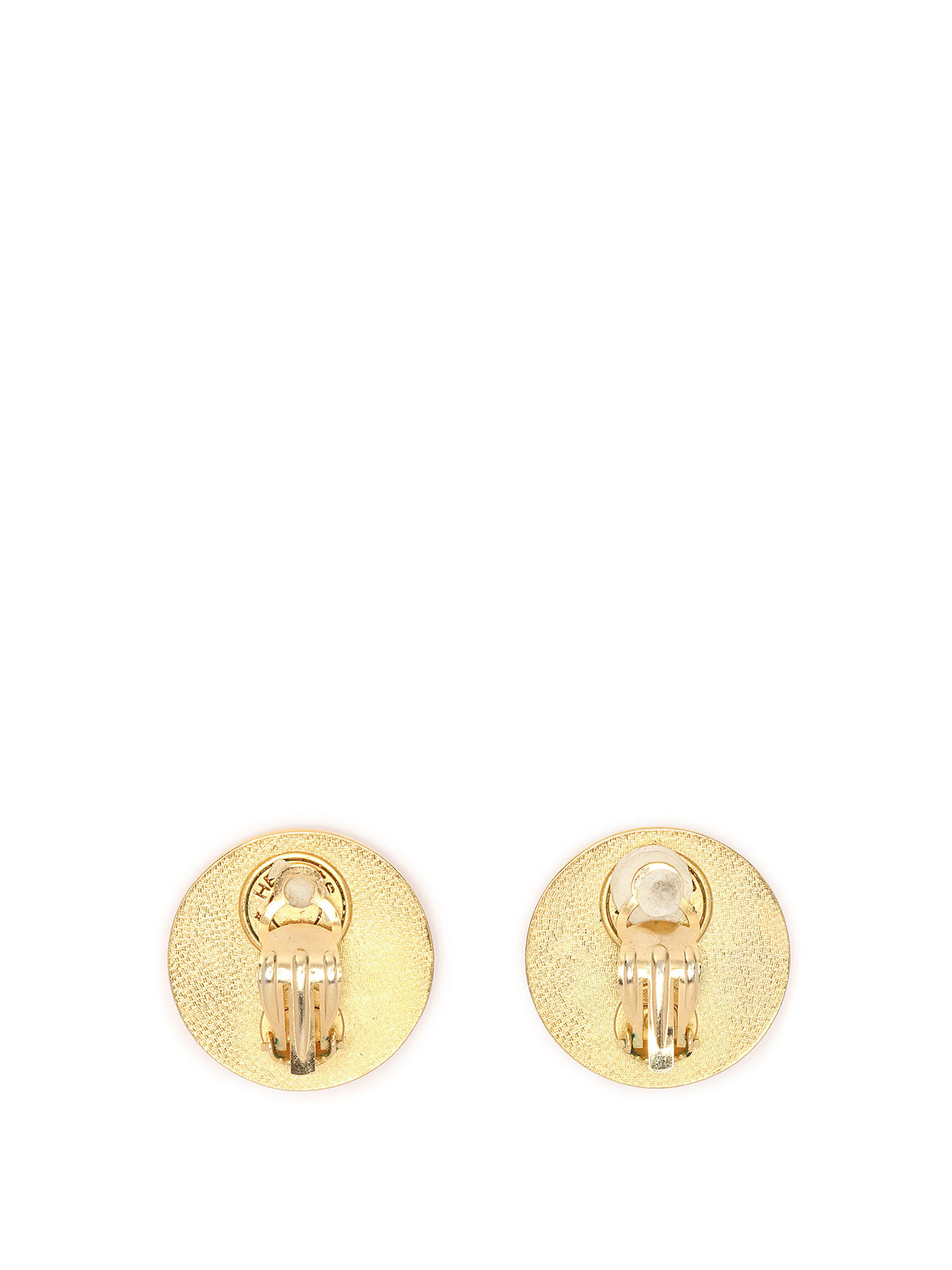 Boucles d'oreilles à clip avec motif à logo en cuir rose et métal doré. Design circulaire avec logo estampé. Avec boîte.