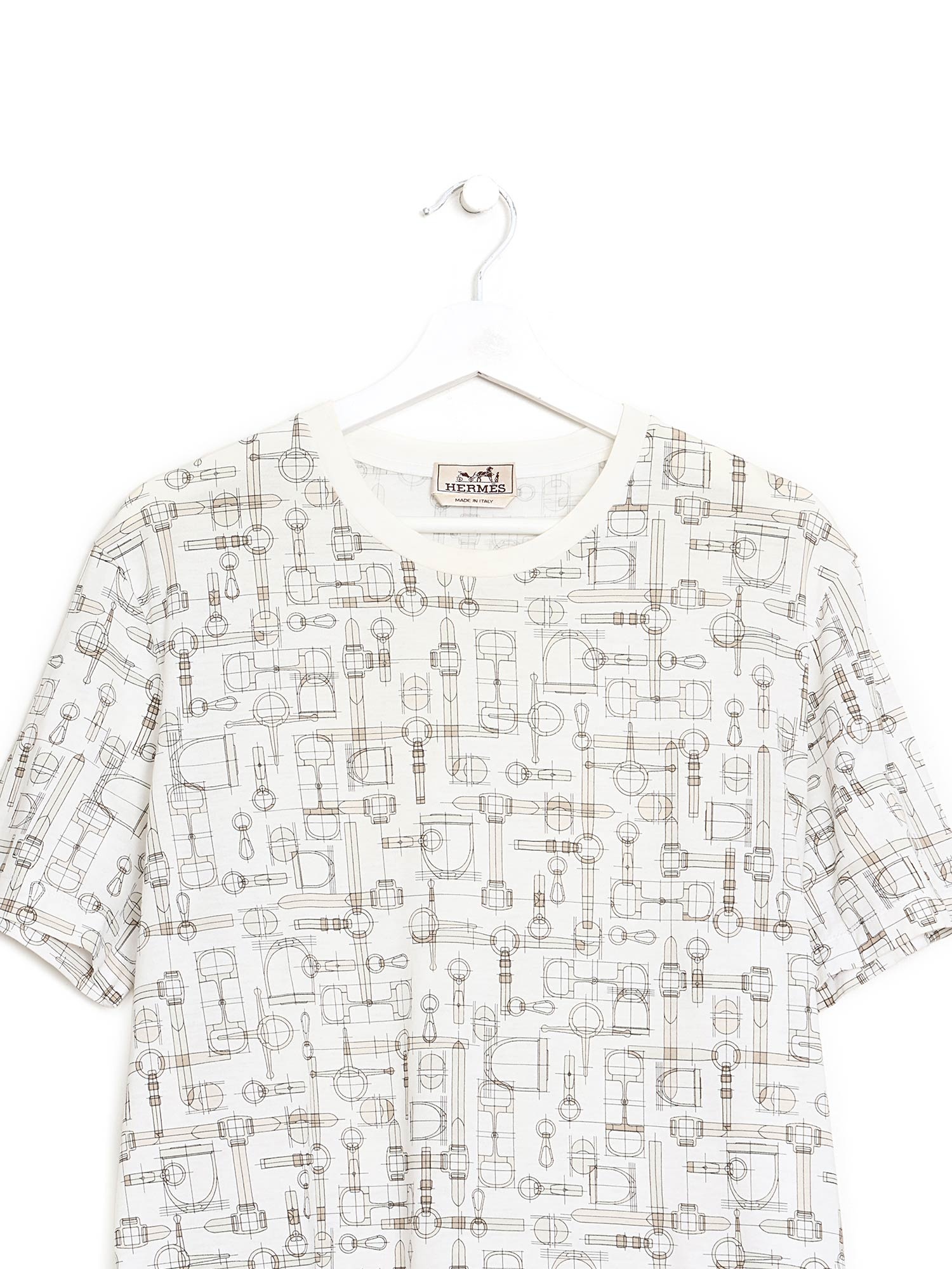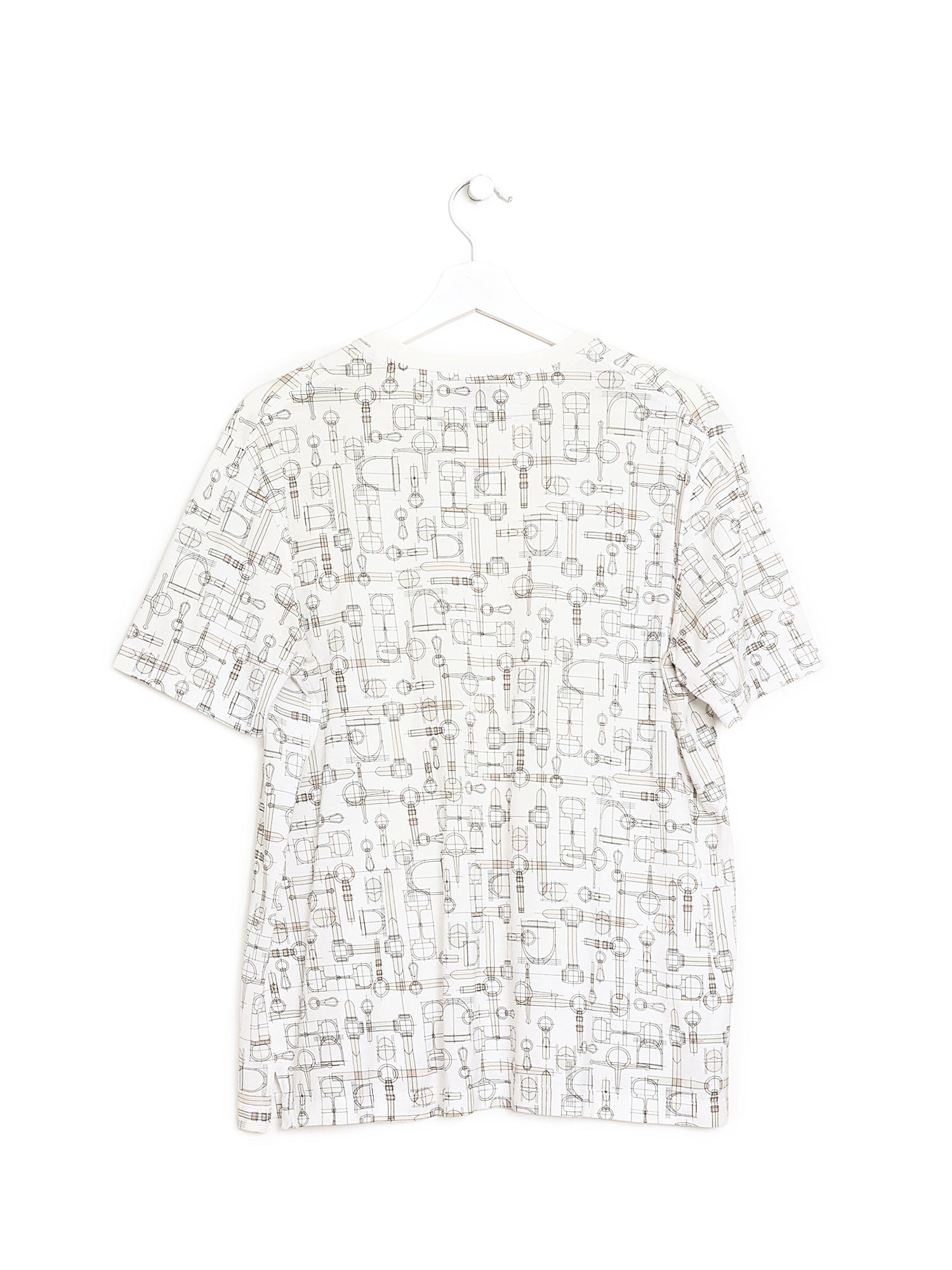 T-shirt à manches courtes avec imprimé graphique d'équipements équestres dans les tons de blanc et gris.